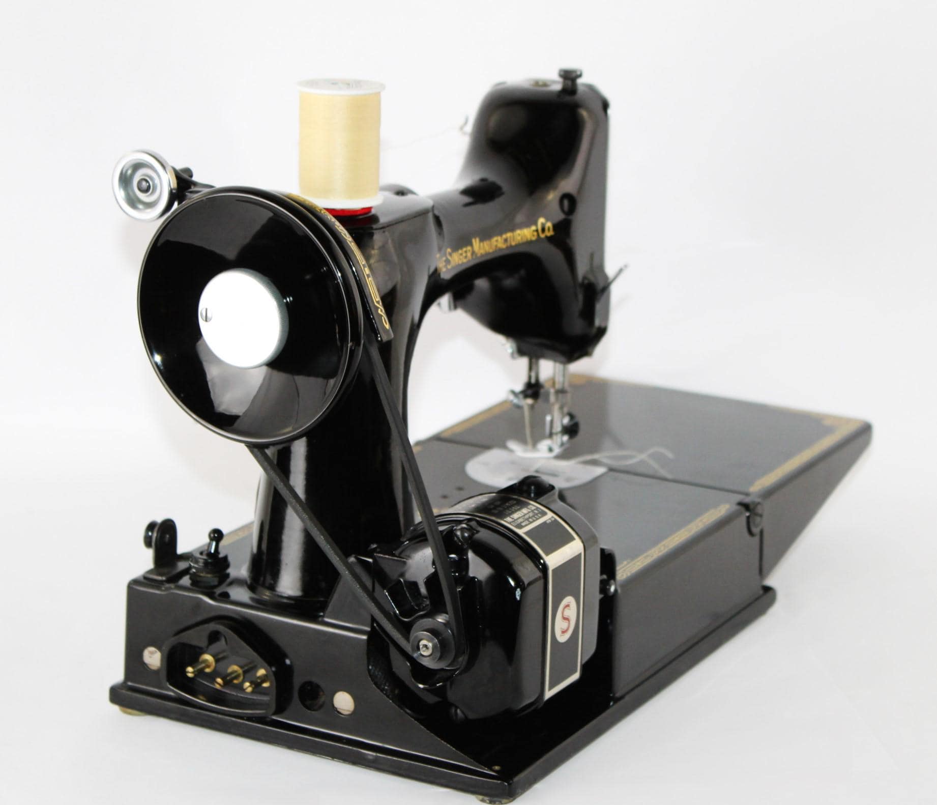 1952 Singer 221 Featherweight Sewing Machine with Carrying Case, cleaned, and serviced.