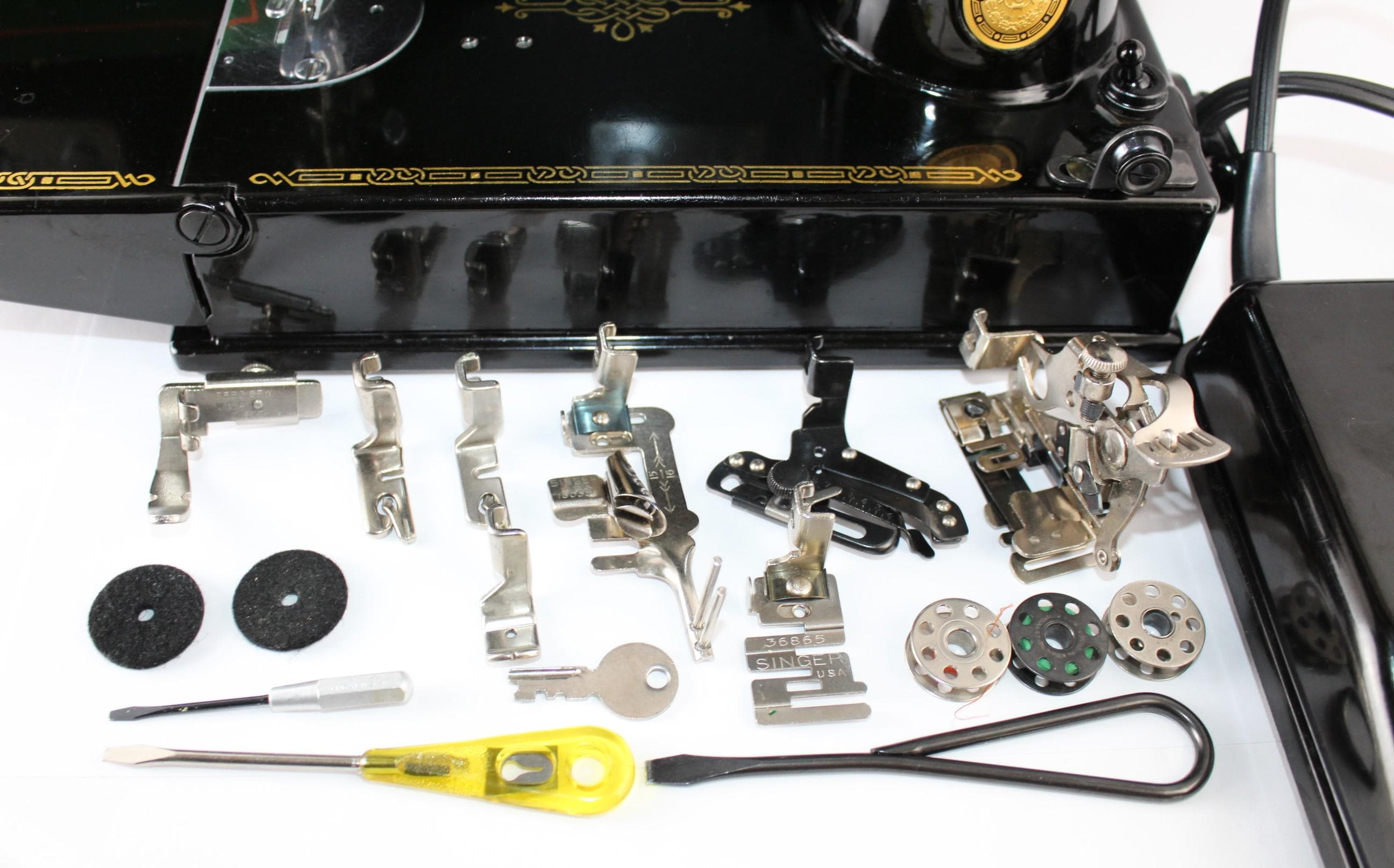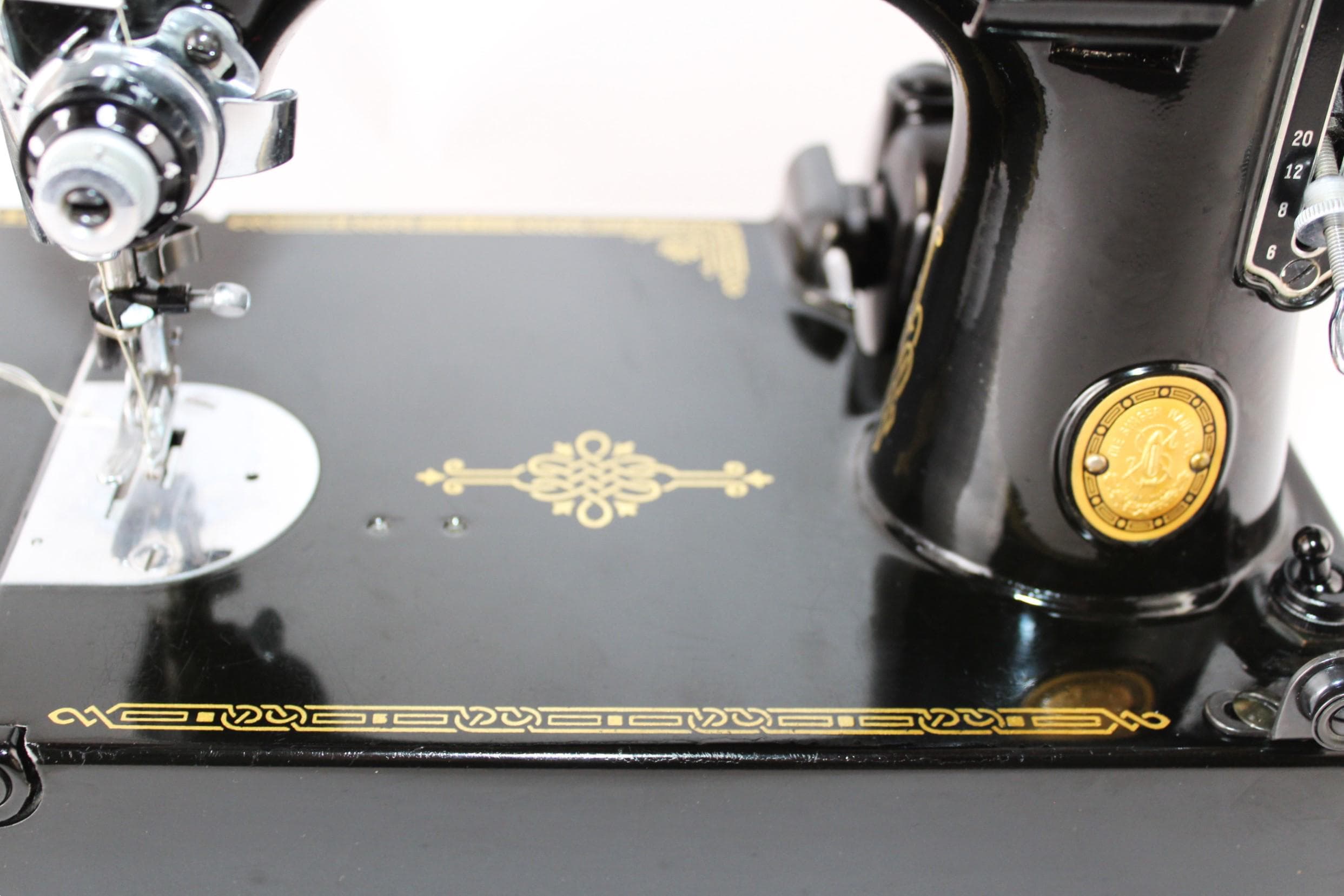 The machine finished in that classic deep gorgeous shiny Black featherweight paint, gold decals and chrome trim.