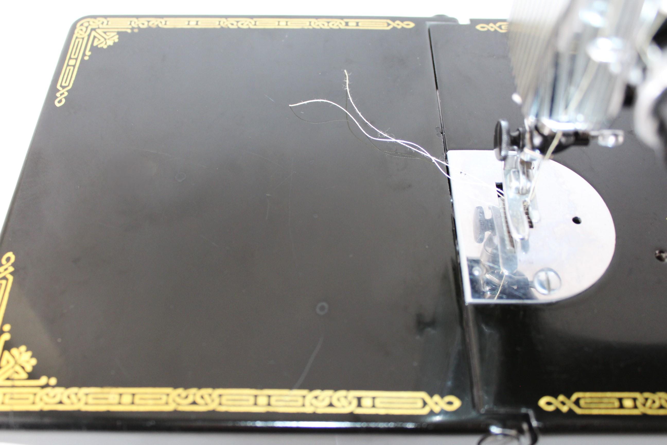 MACHINE: runs and operates smoothly, has light scuffs and scratches on sewing bed, flywheel has a couple paint chips on edge. Overall, above average condition.
