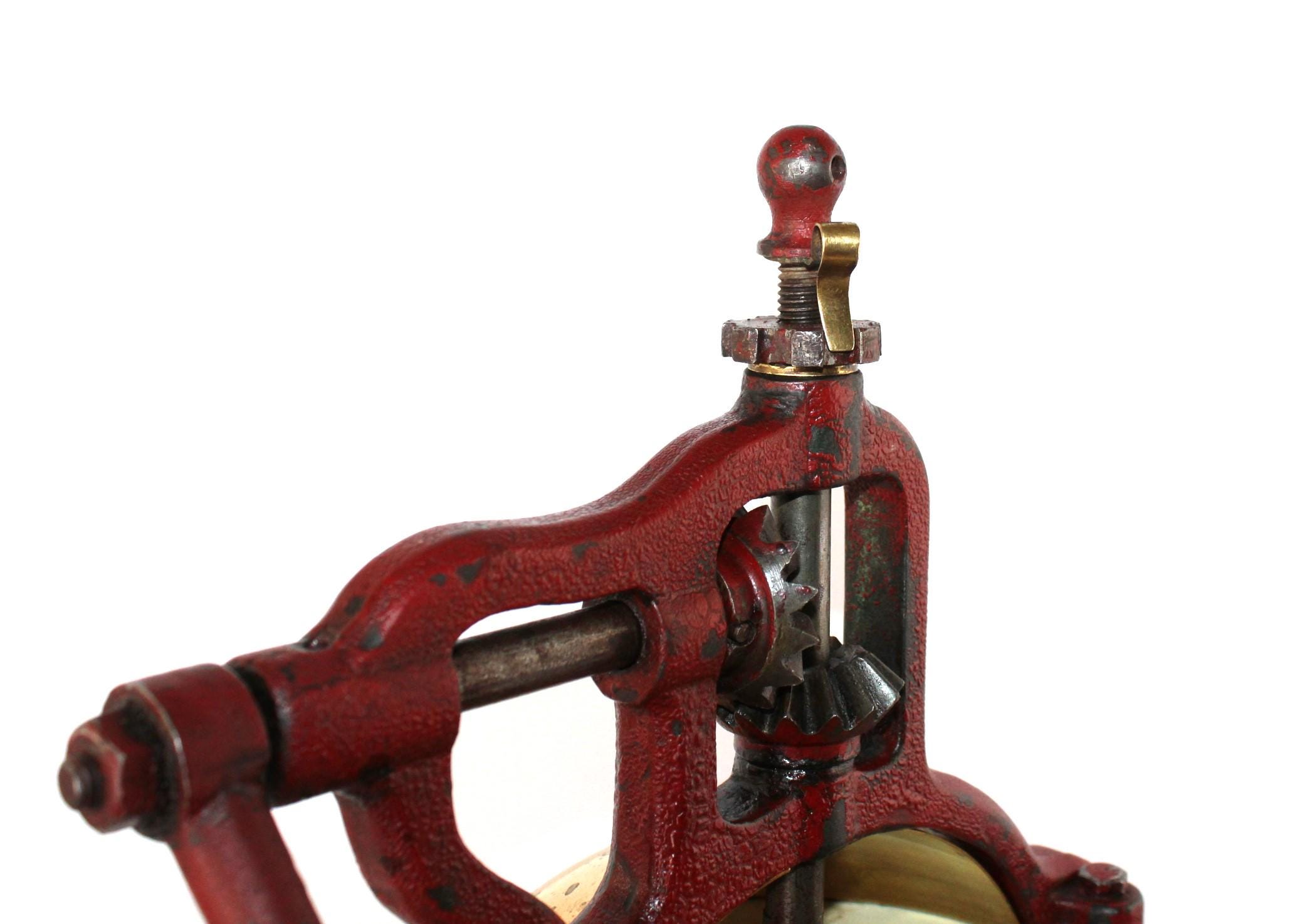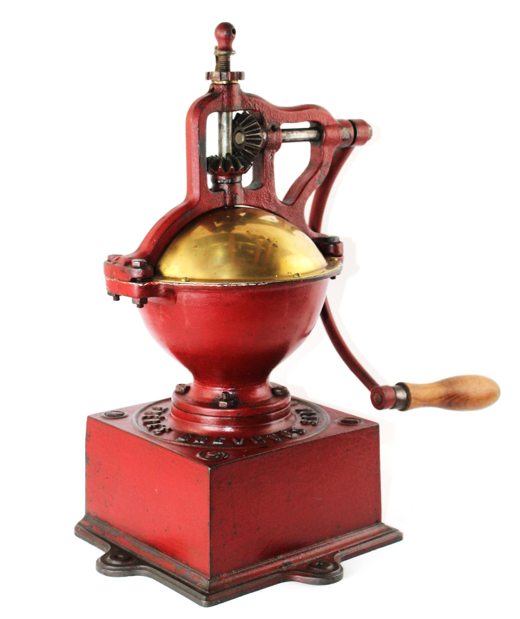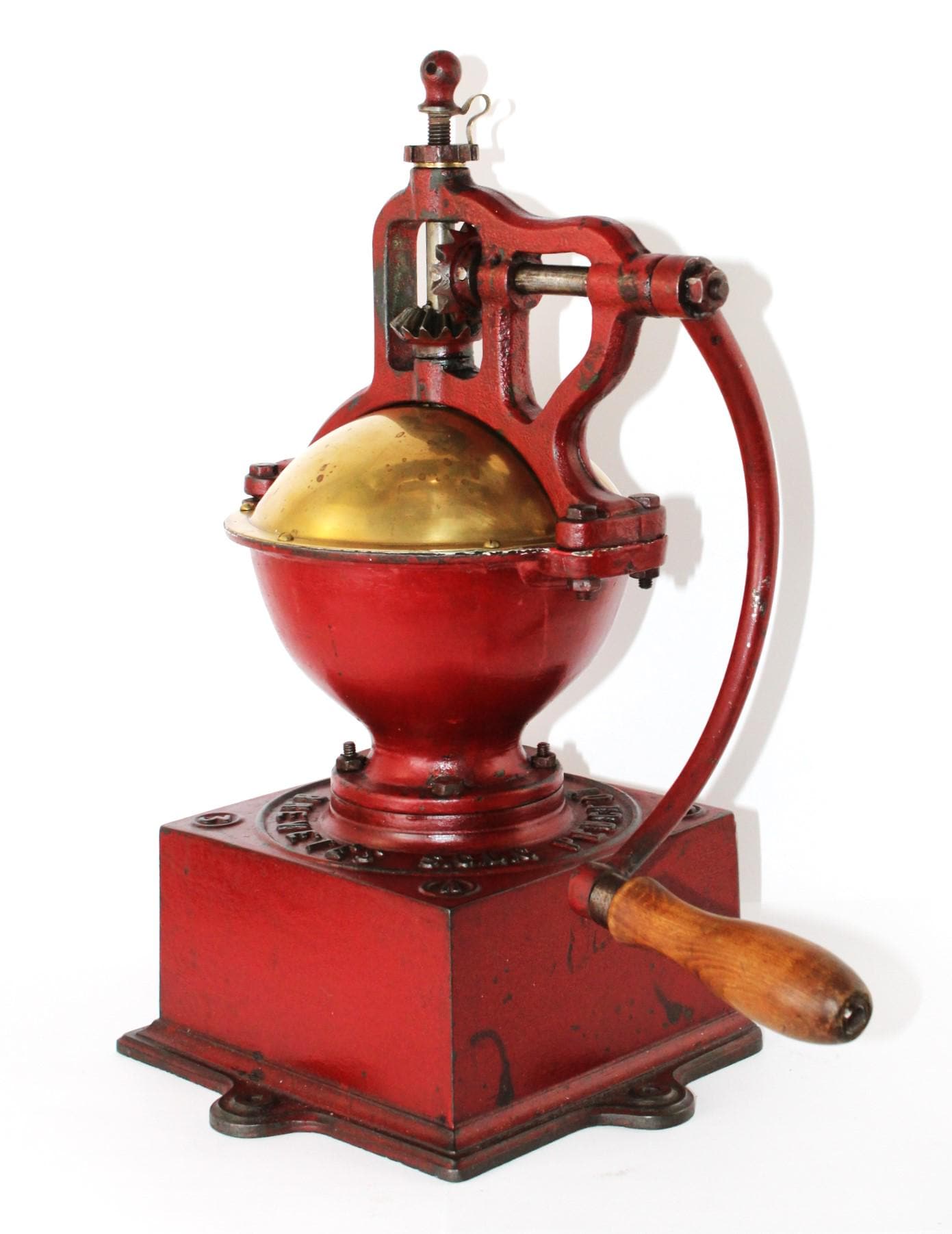 Condition: as shown, it is 135 years old and comes with scuffs. At some time, a replacement steel support was added to the base of the grinder.