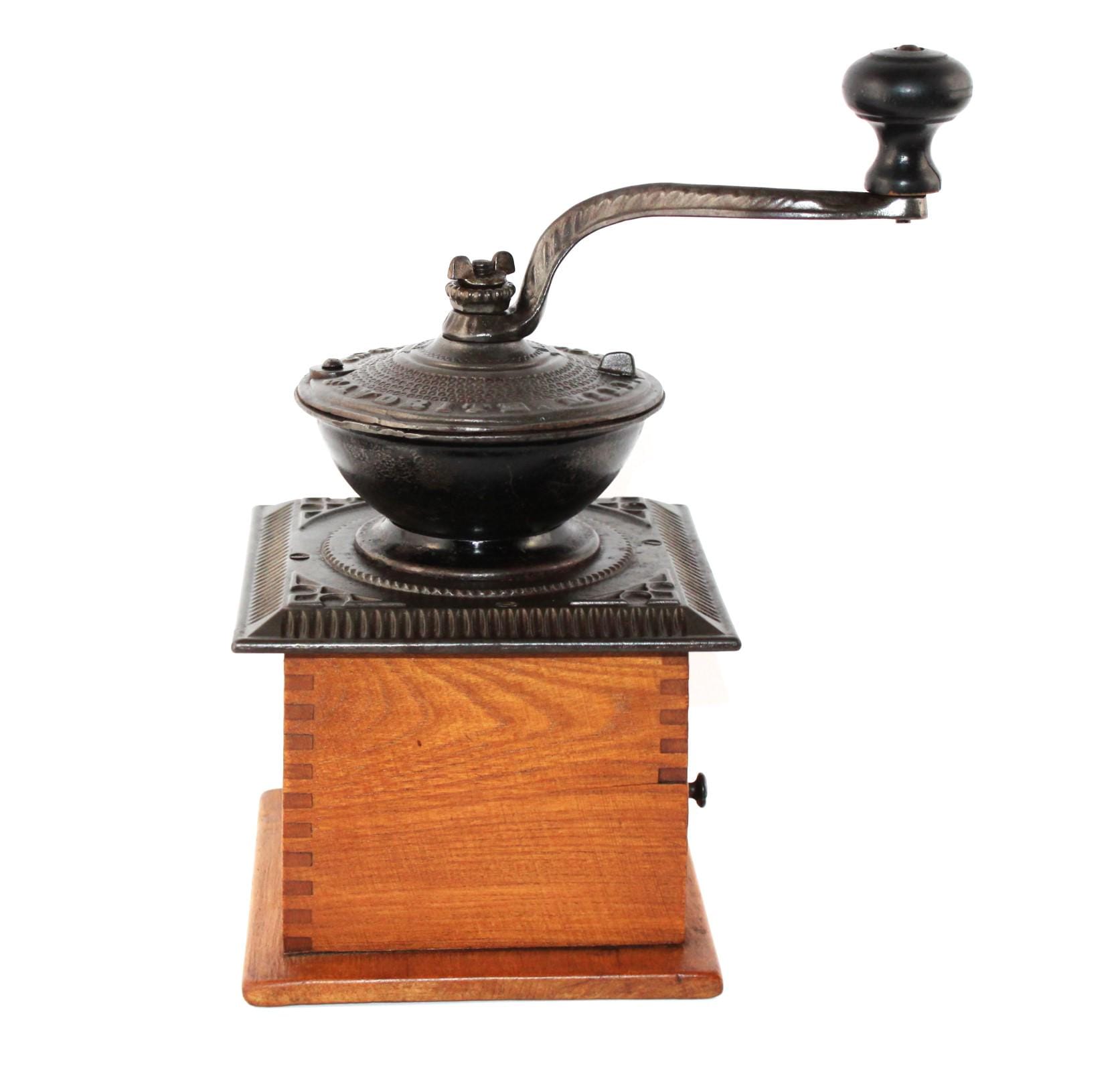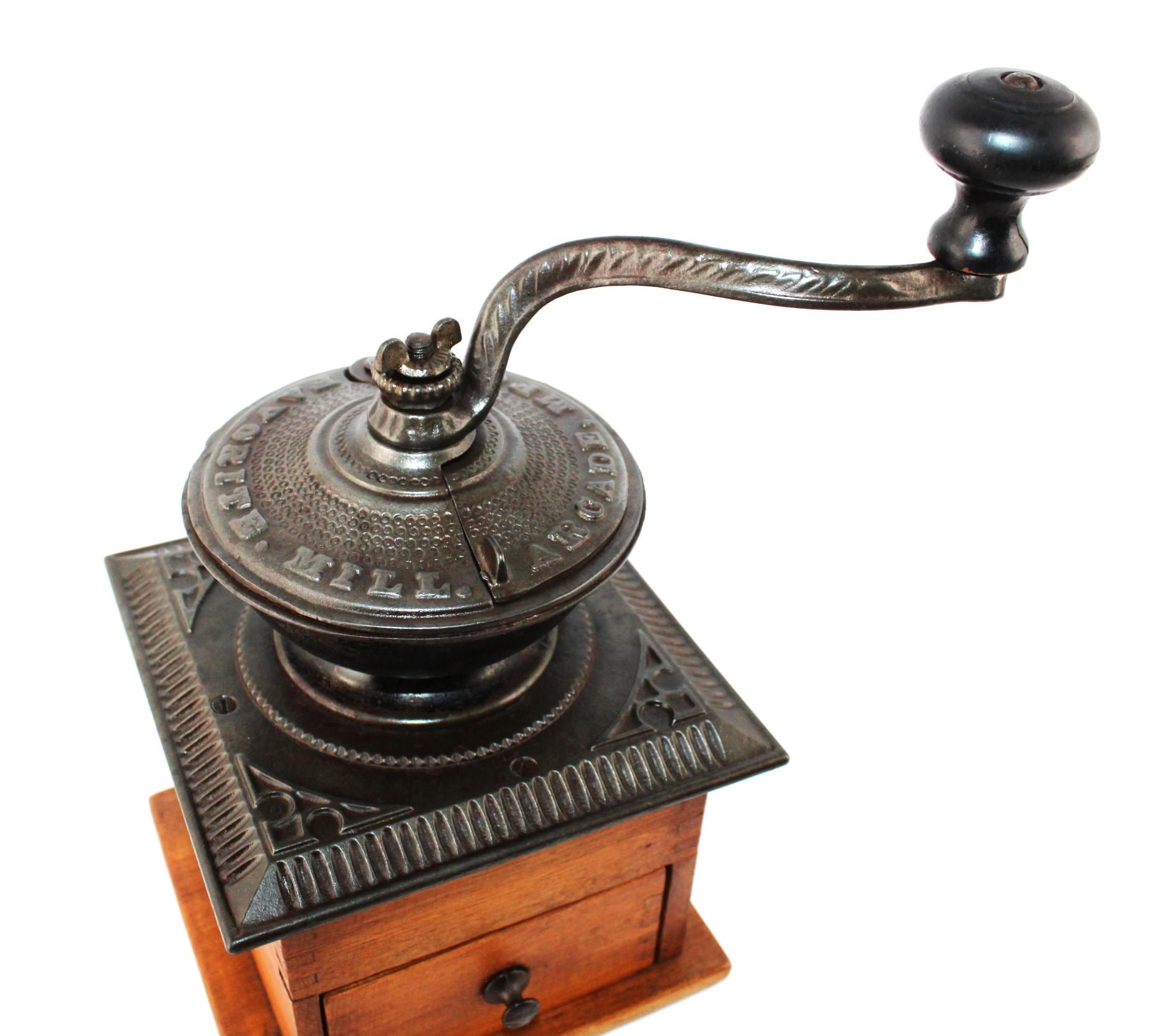 Wonderful 1890s box-style coffee bean grinder. This is the FAVORITE MILL
