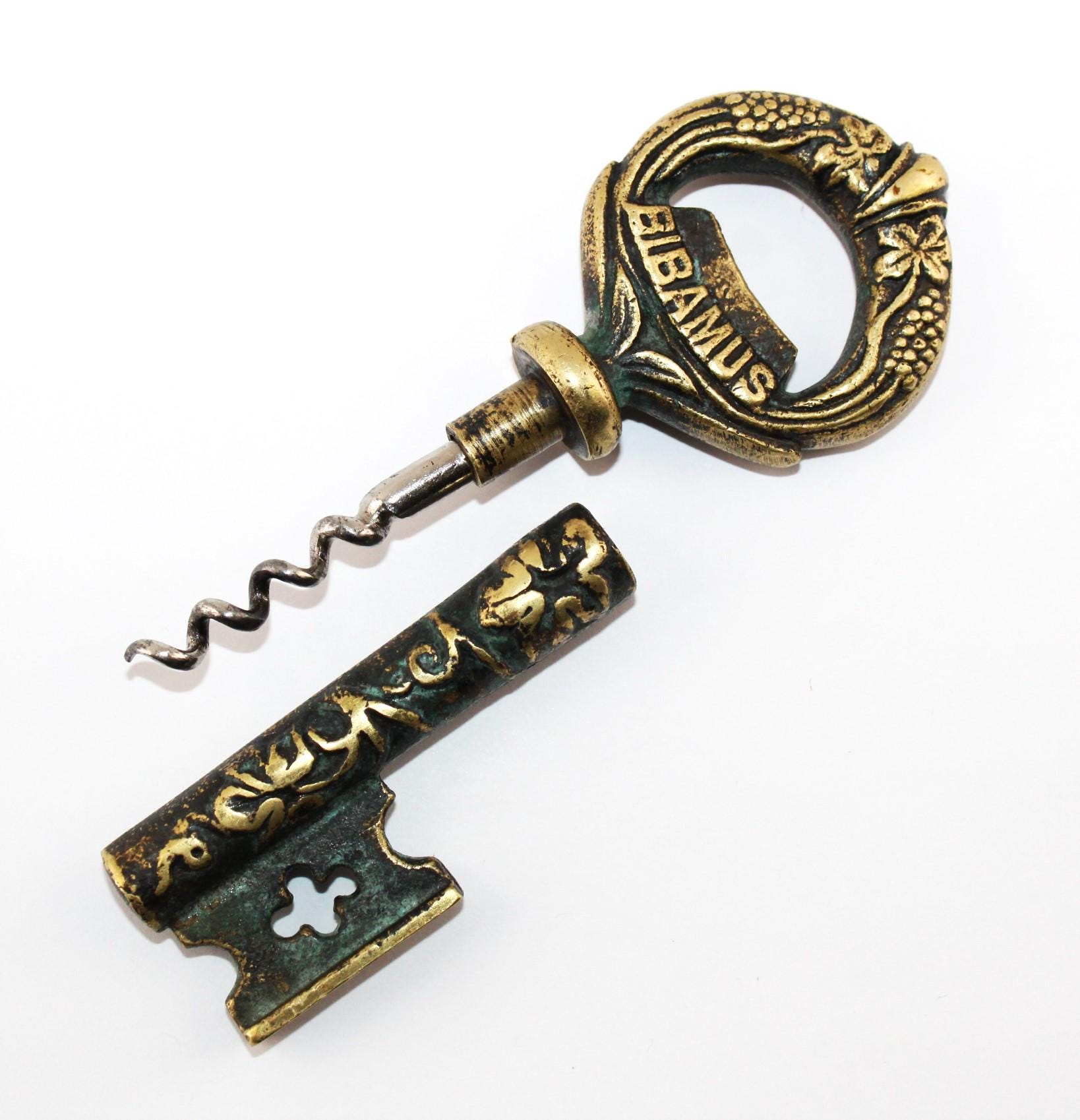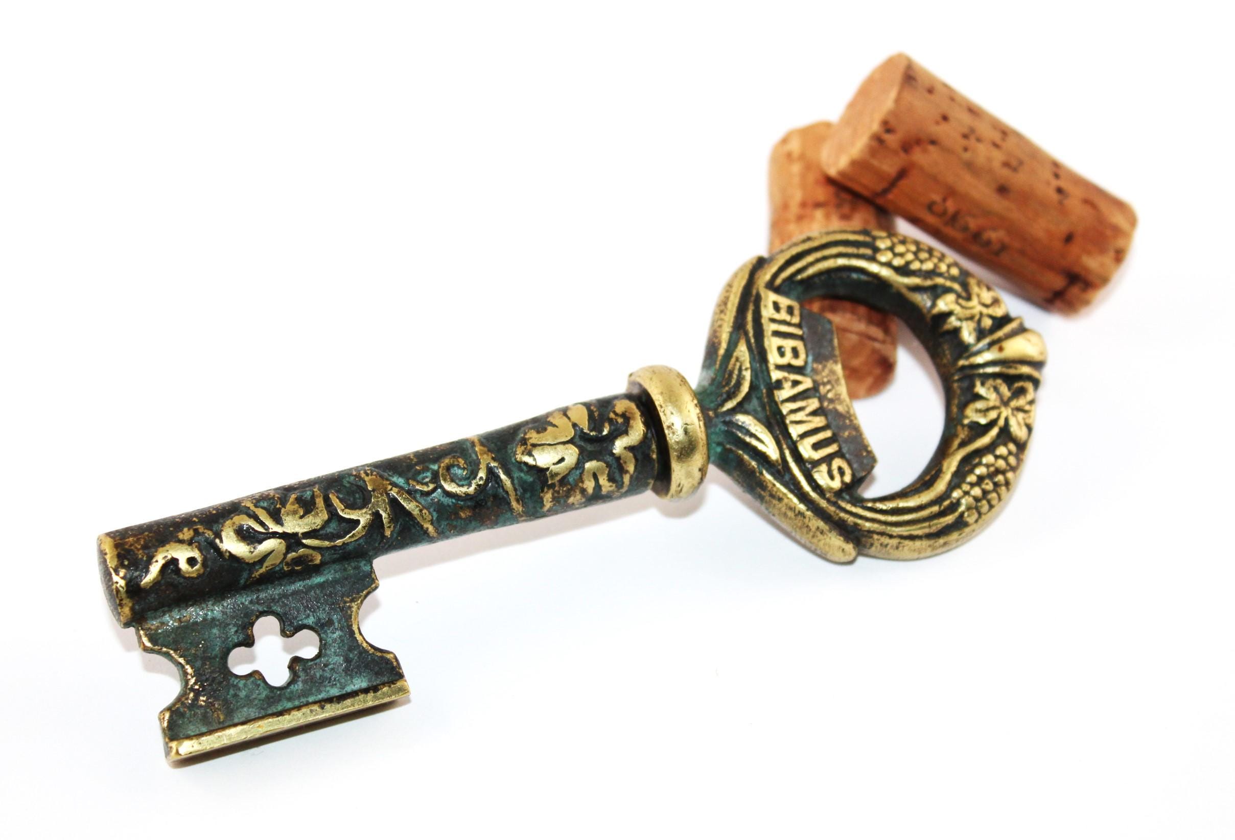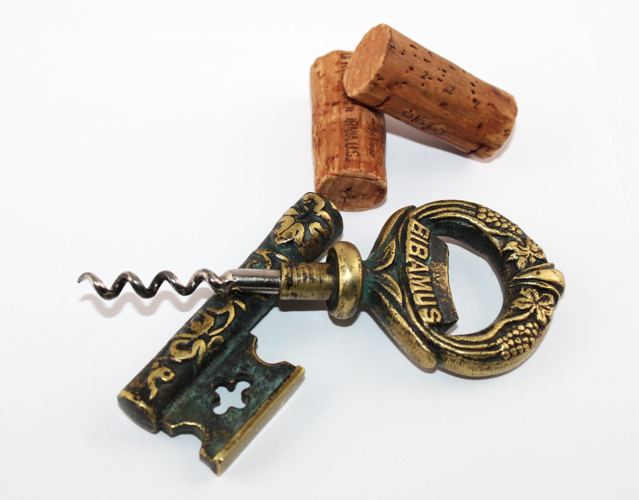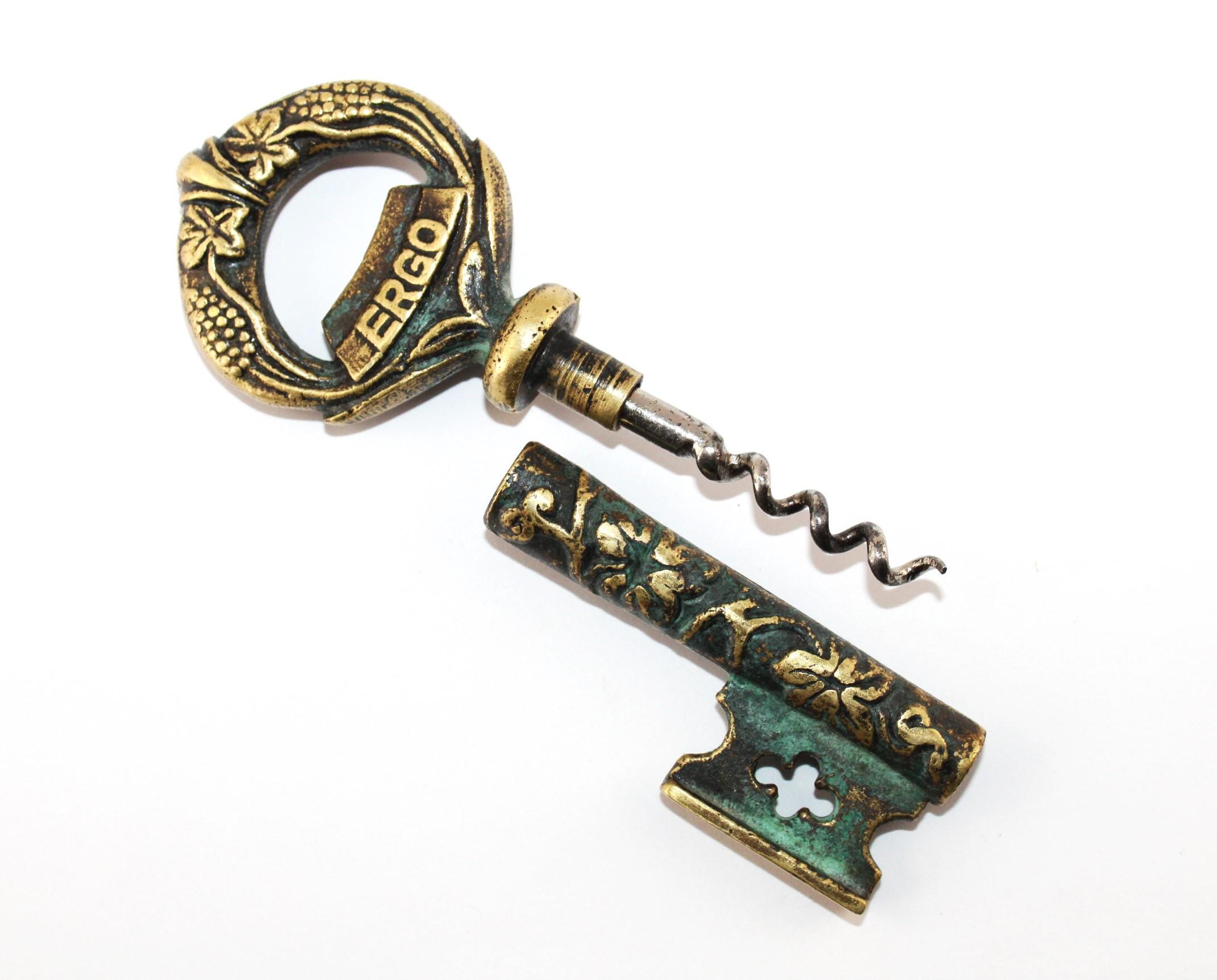 Vintage Italian Brass Key Corkscrew, Wine Bottle Opener