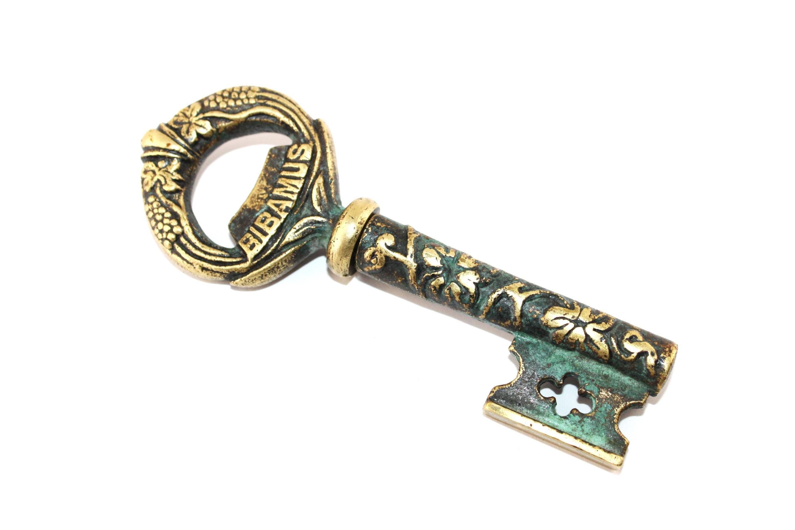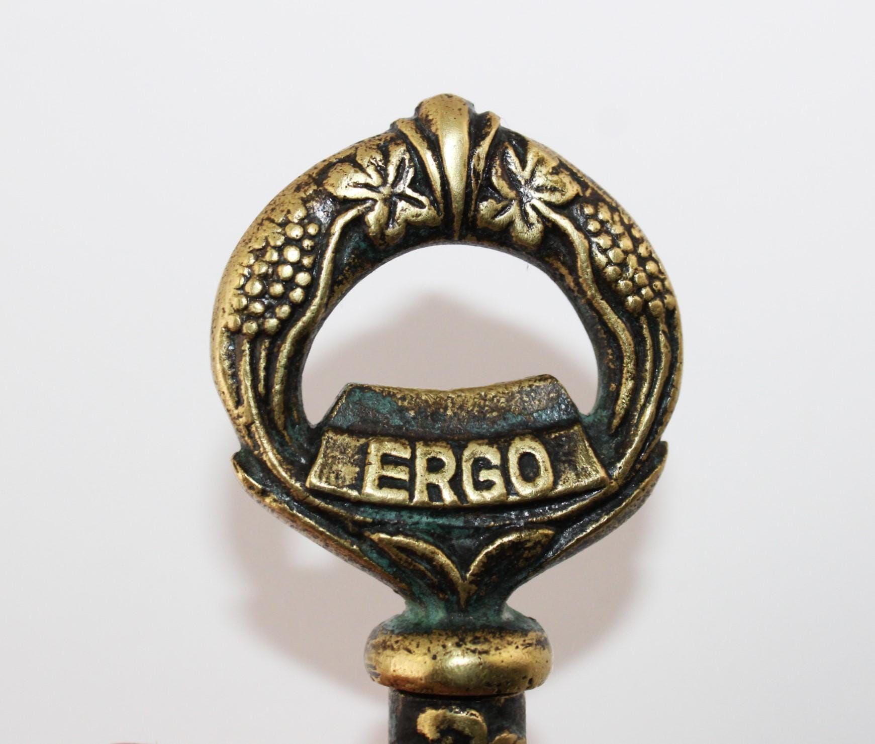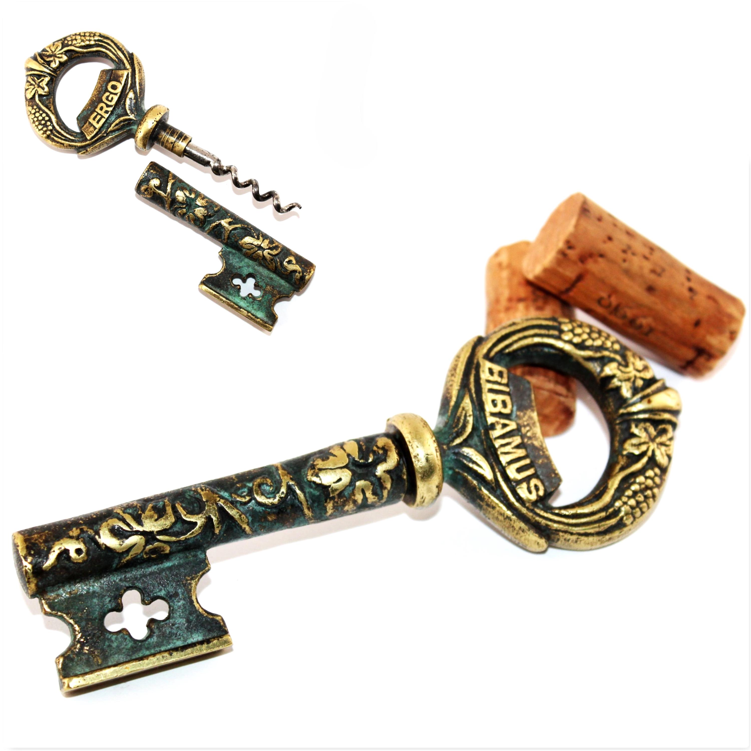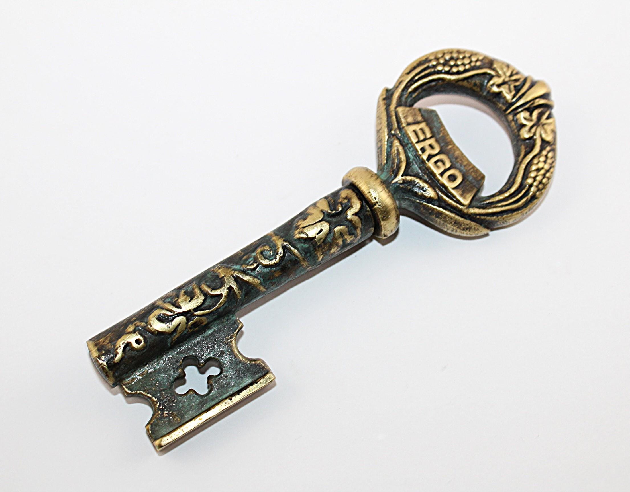 Vintage Italian Brass Key Corkscrew, Wine Bottle Opener