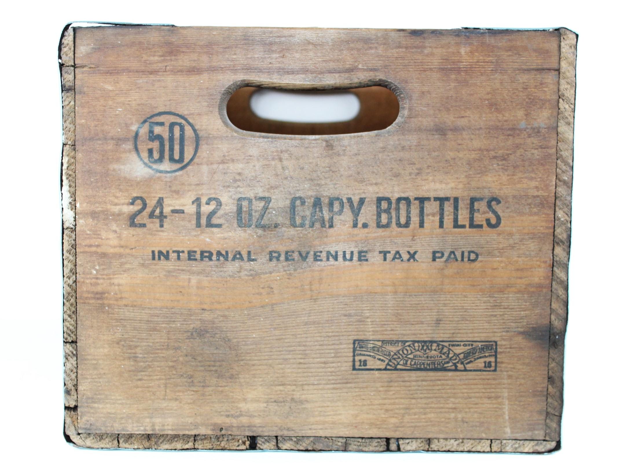 Crate is stamped front and back with Hamm Brewing name and logo, ends are stamped 24-12 Capy. Bottles and the Twin Cities Carpenters Union 16 stamp.