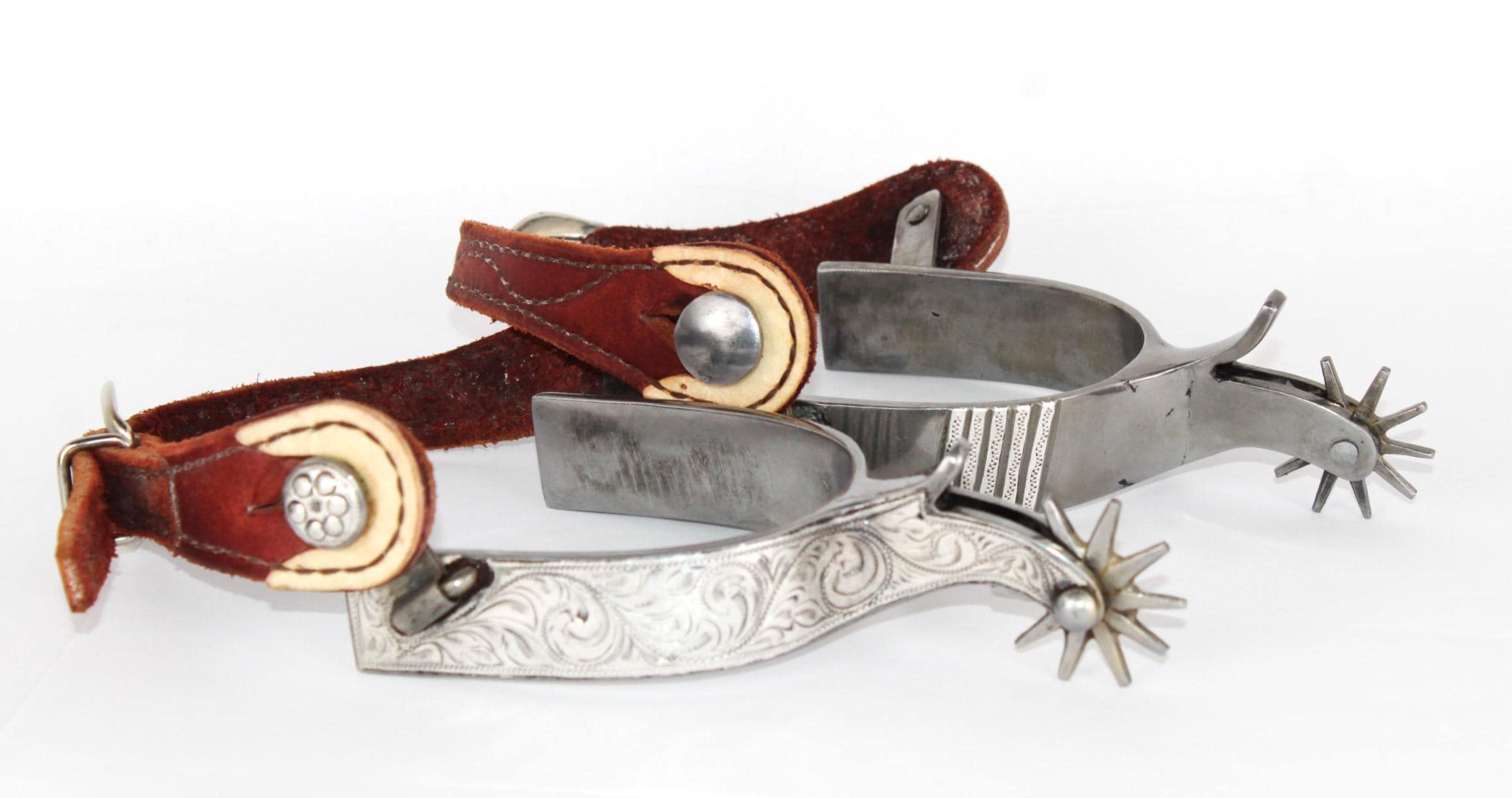 Western Cowboy Spurs with Double Mounted Silver Overlay