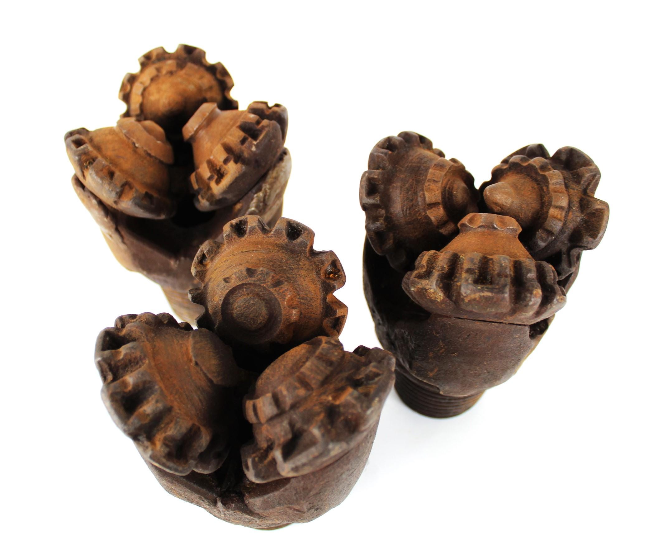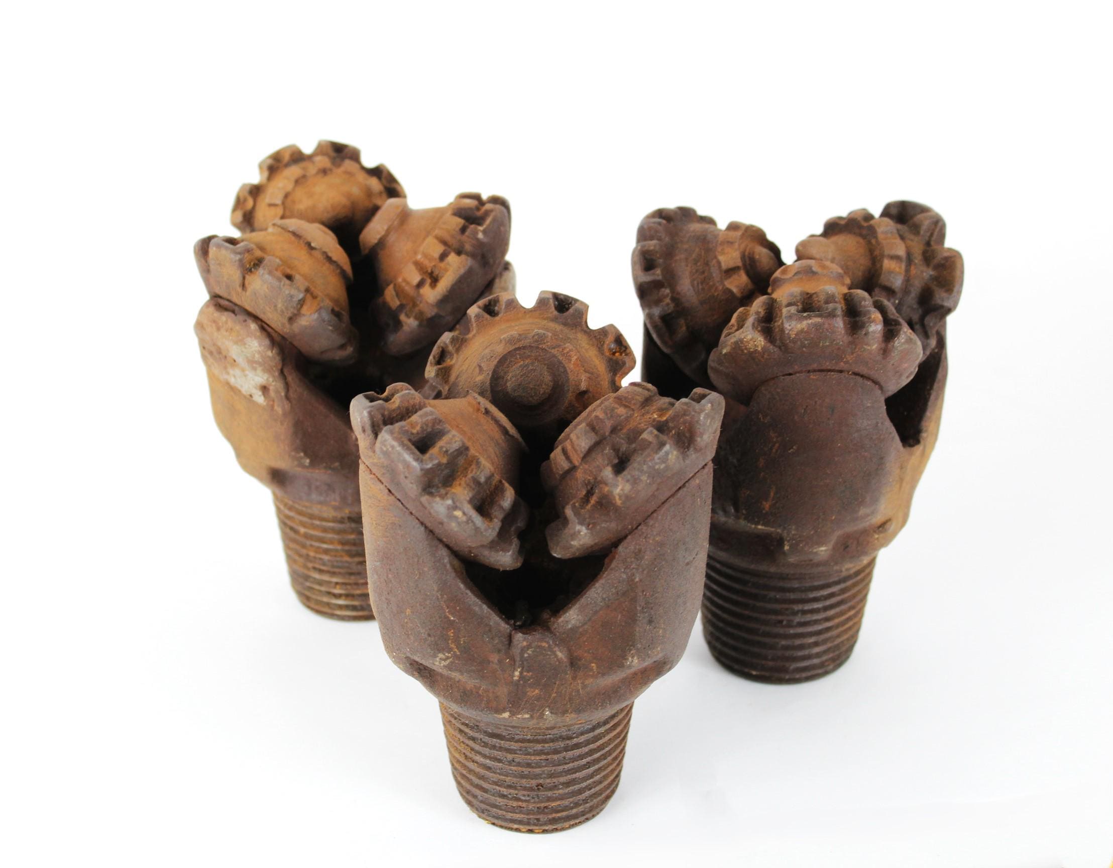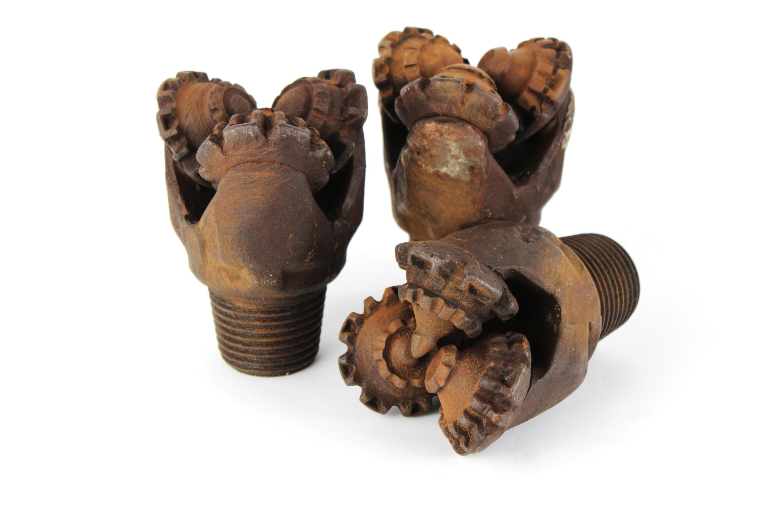 Used salvage, Tri Cone 4¼” Drill Head. This type of drill head is used for drilling through rock when drilling for oil or water.