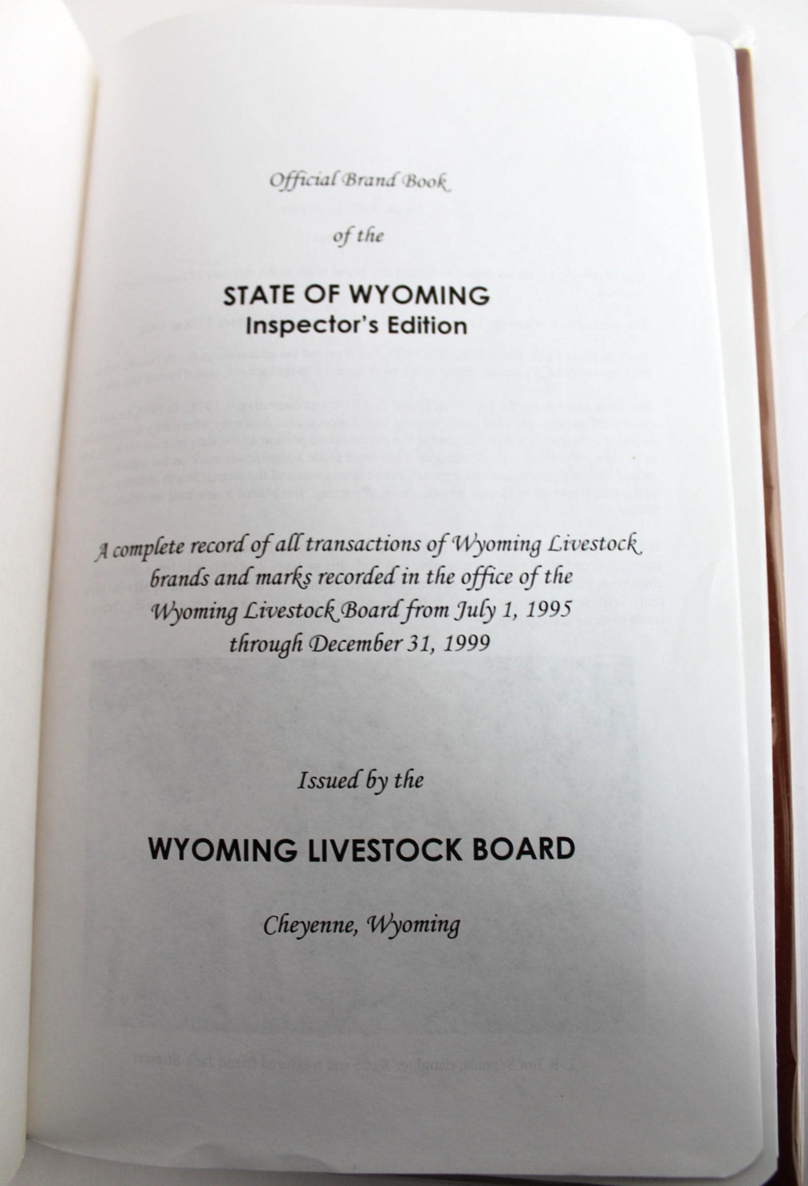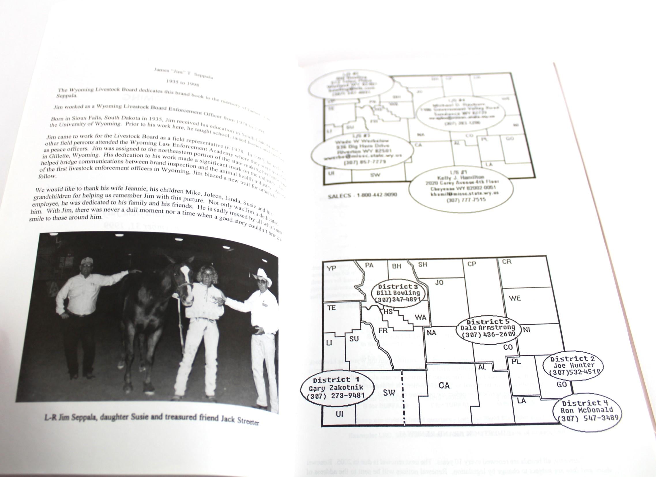 Wonderful find, this Hardcover 1995 Inspectors Edition Wyoming Brand Record Book, Livestock Brand Registry.