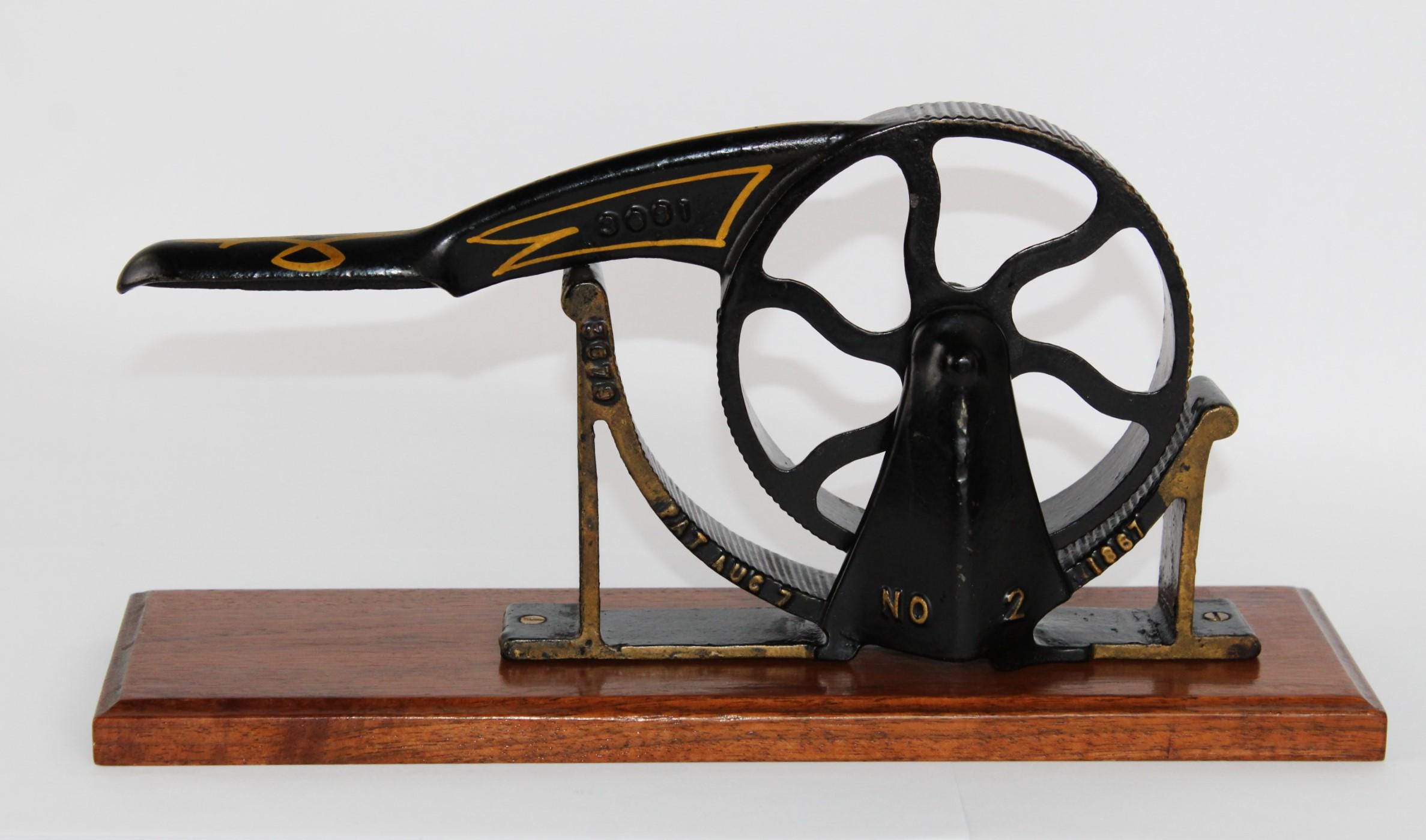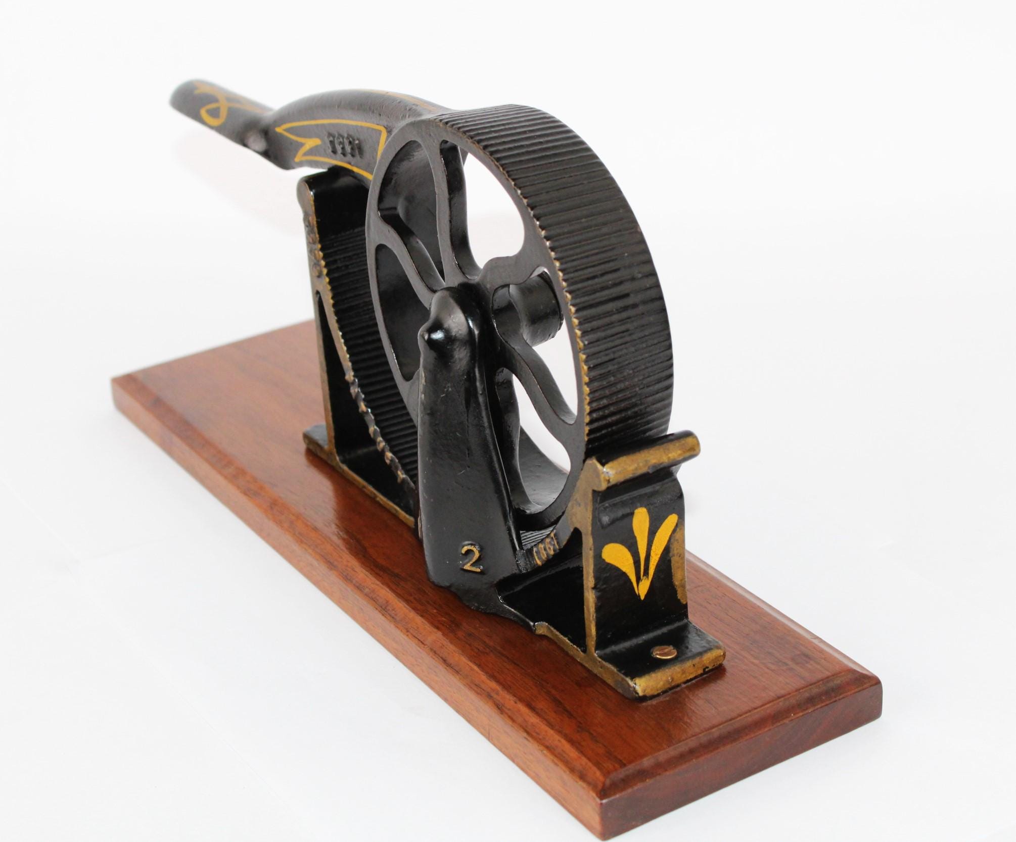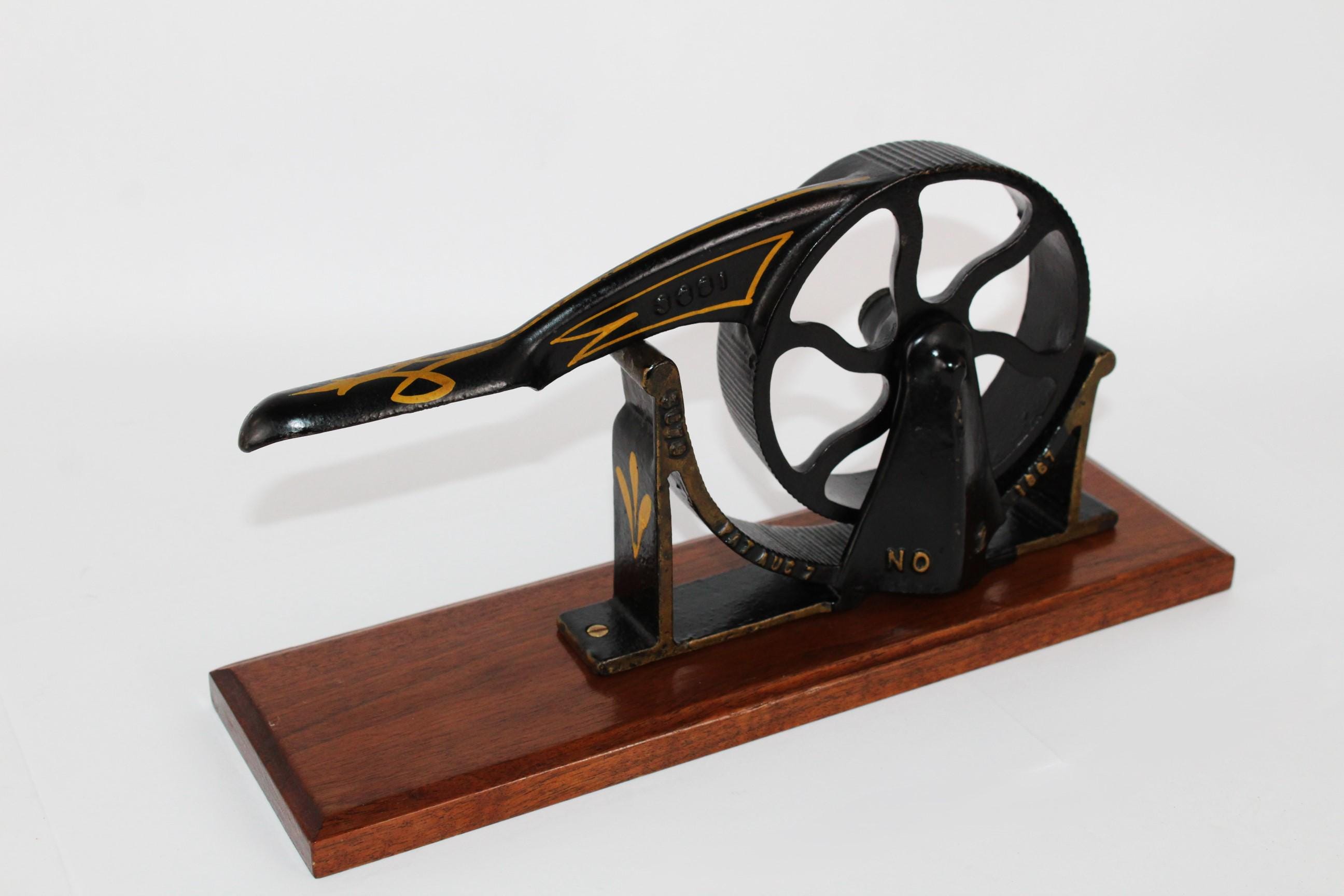 Wonderful 1860s apothecary piece. This is a hand-operated cork roller for compressing corks to fit into medicine bottles, made by the Enterprise Manufacturing Company of Philadelphia.