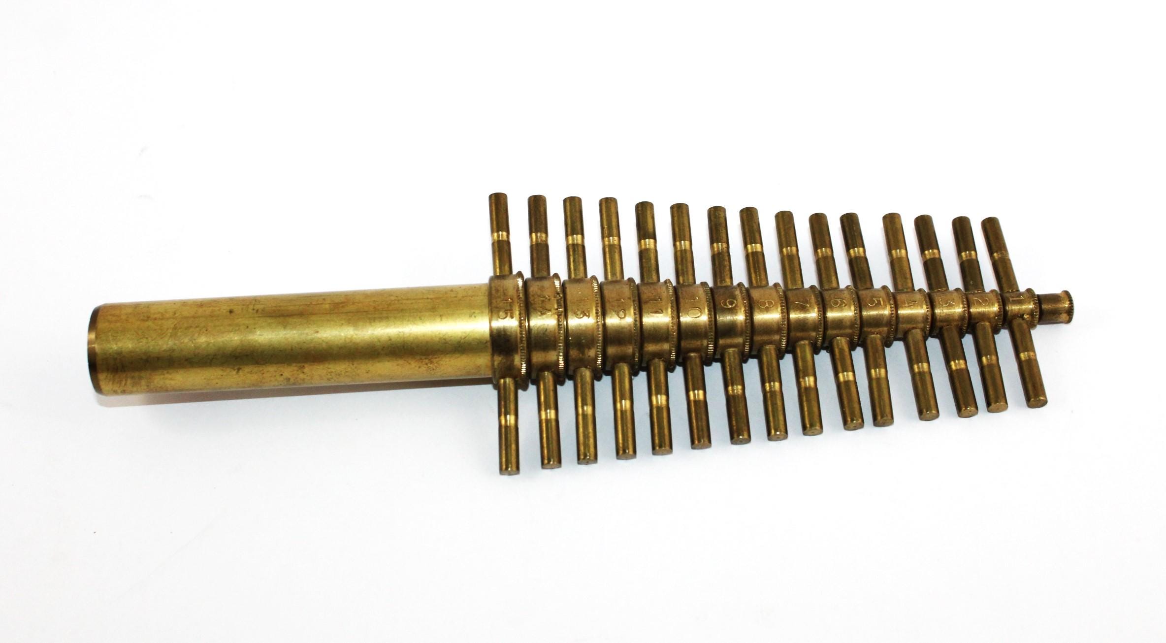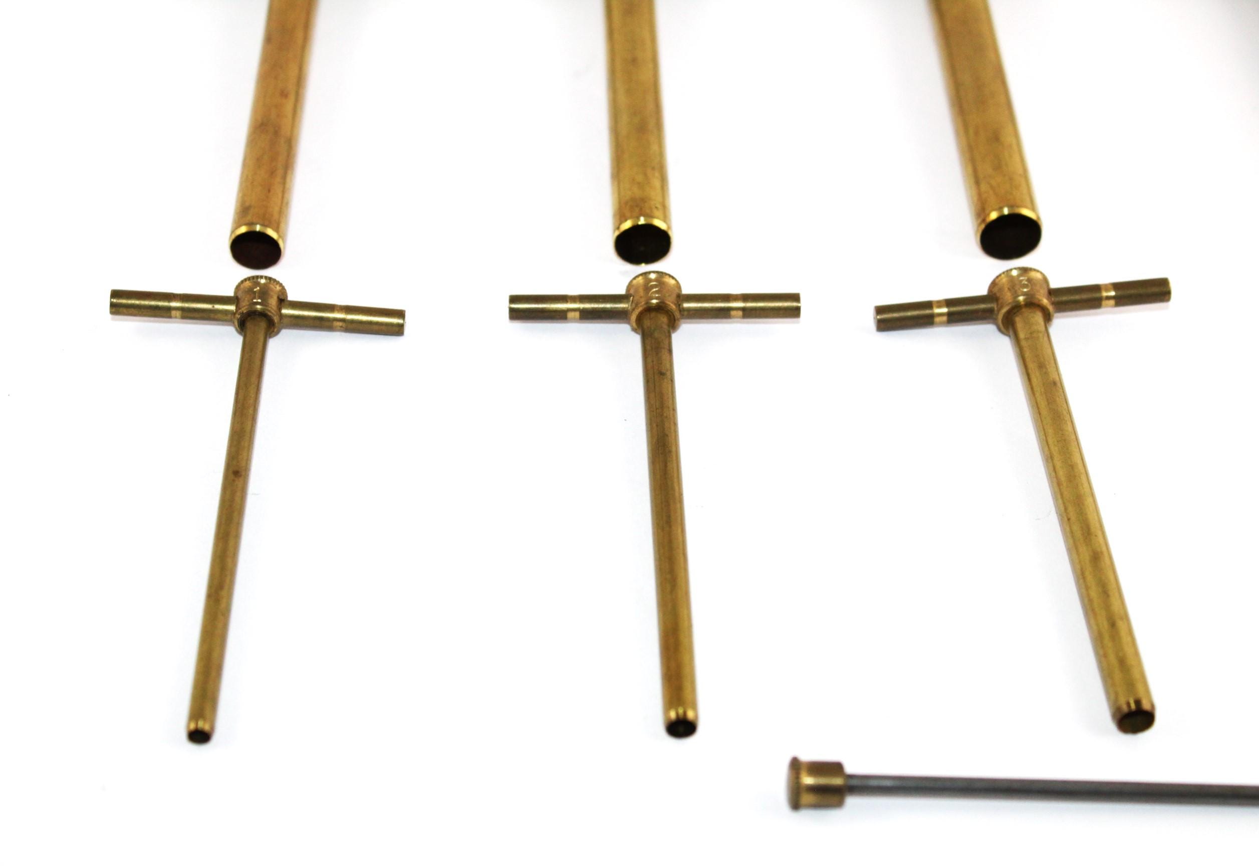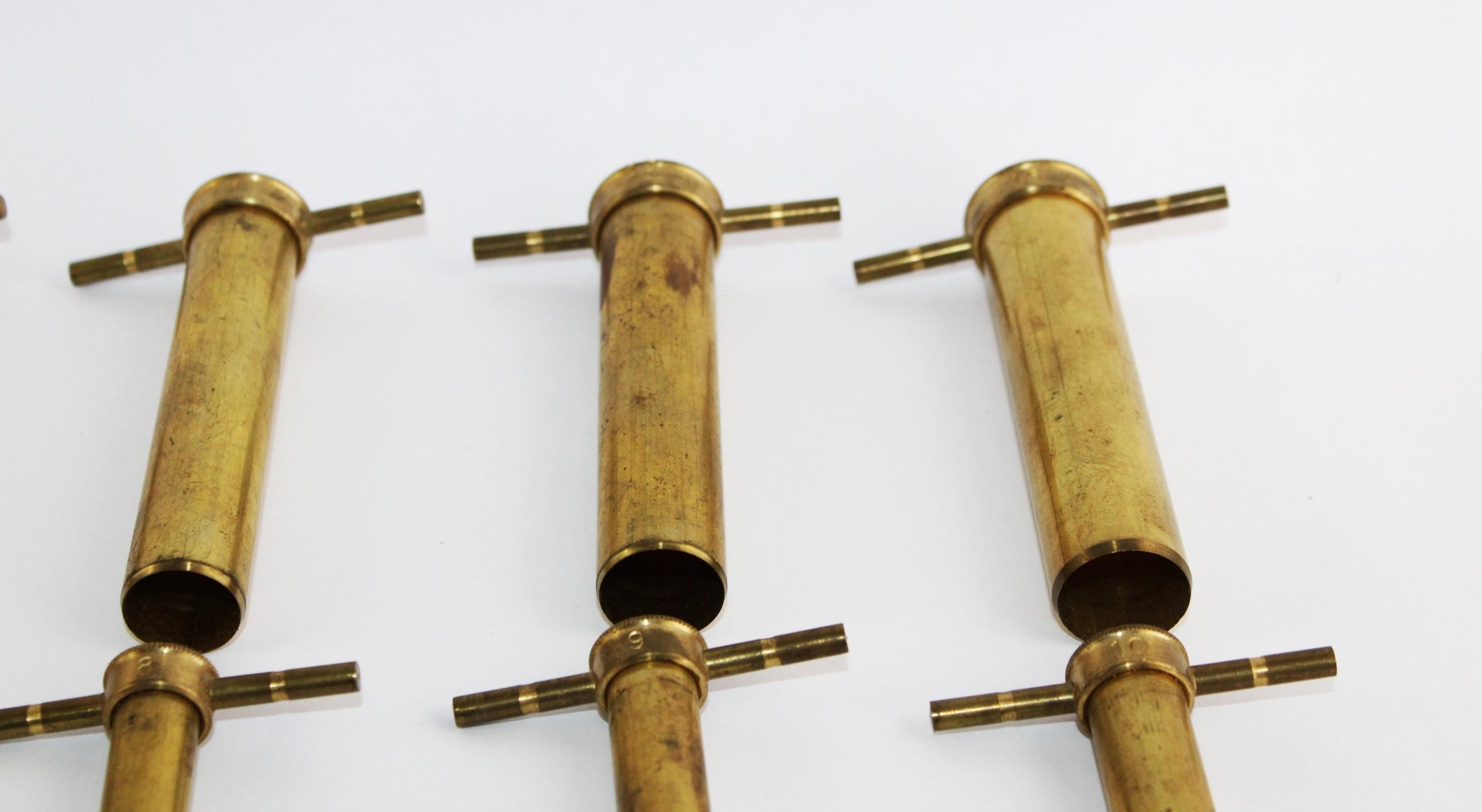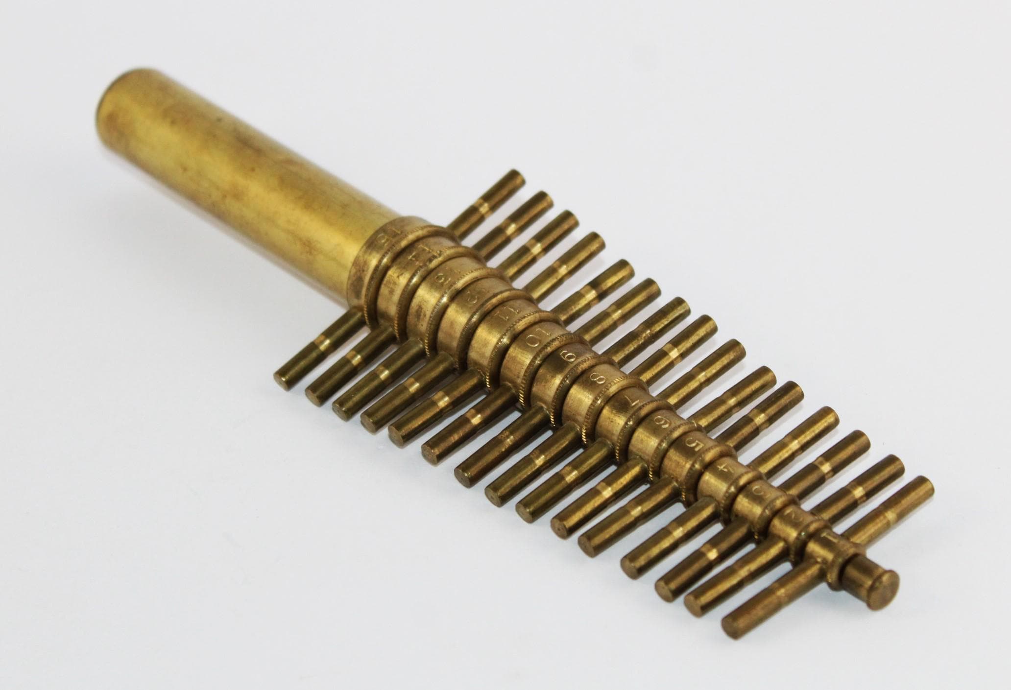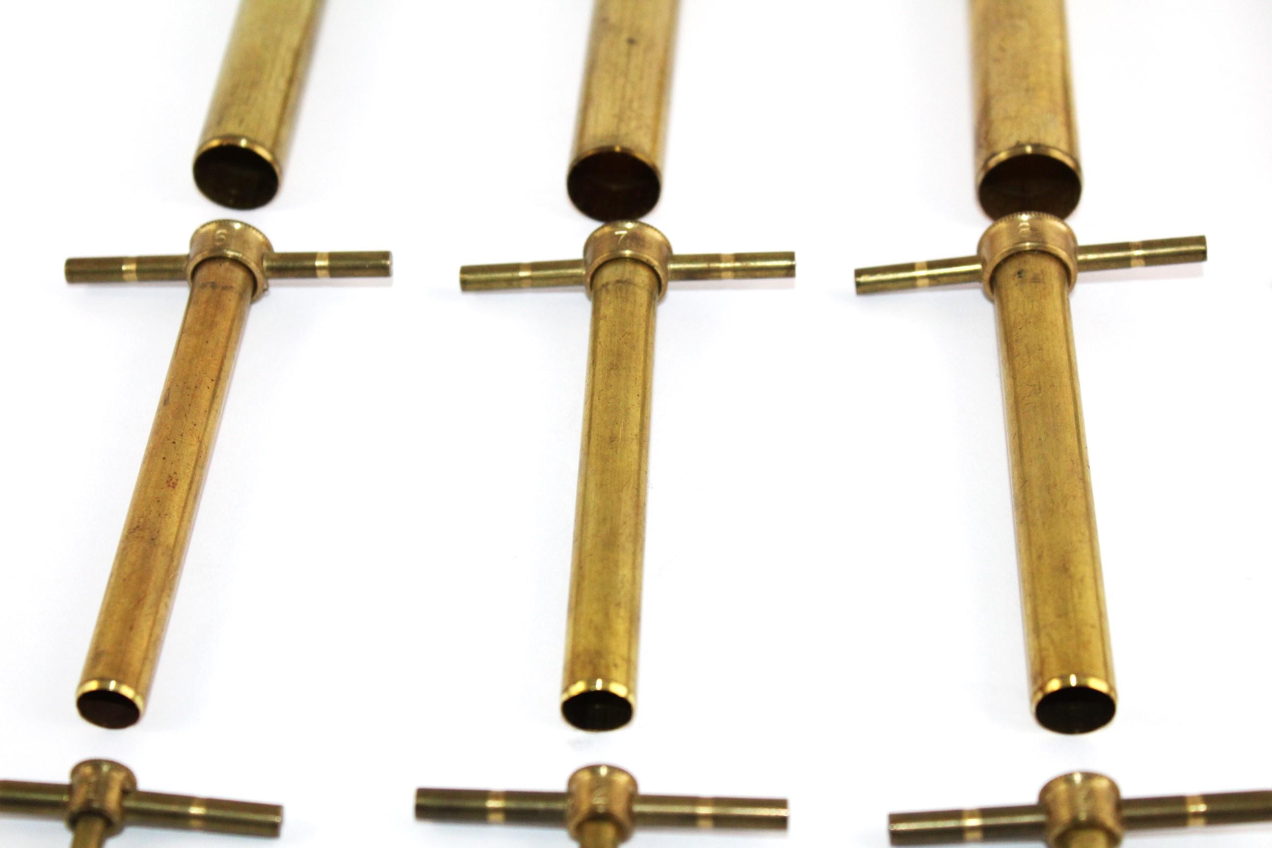 Wonderful full set of Brass Cork Borers, numbered 1 through 15 with clean-out staff.