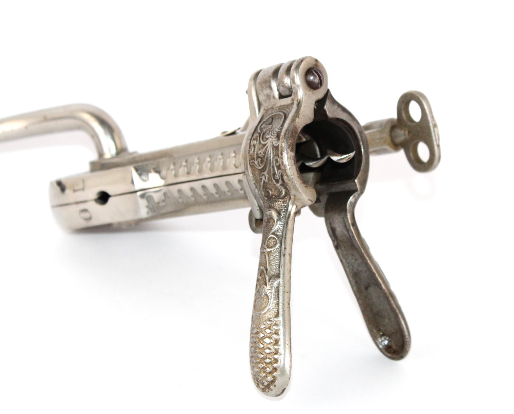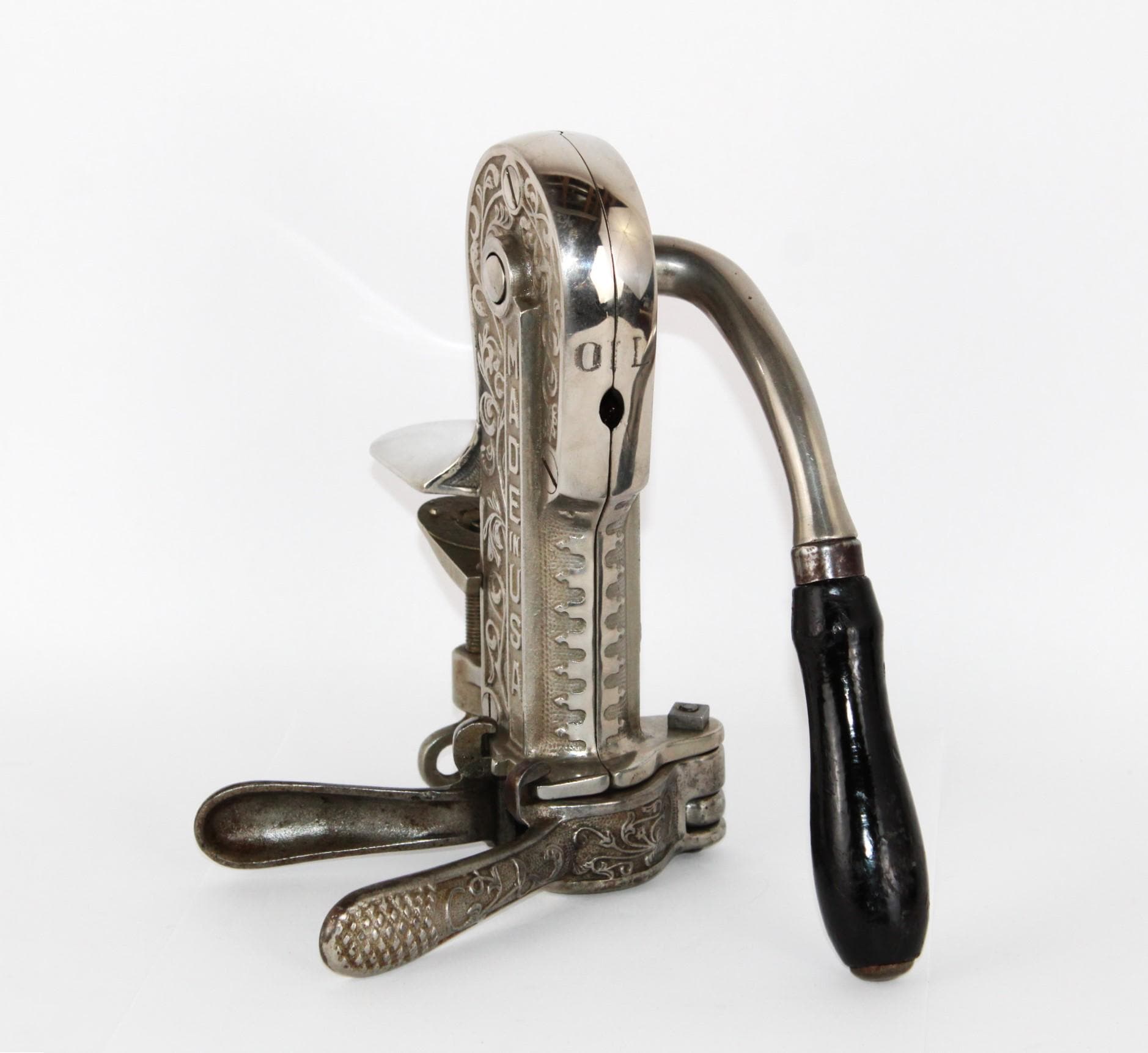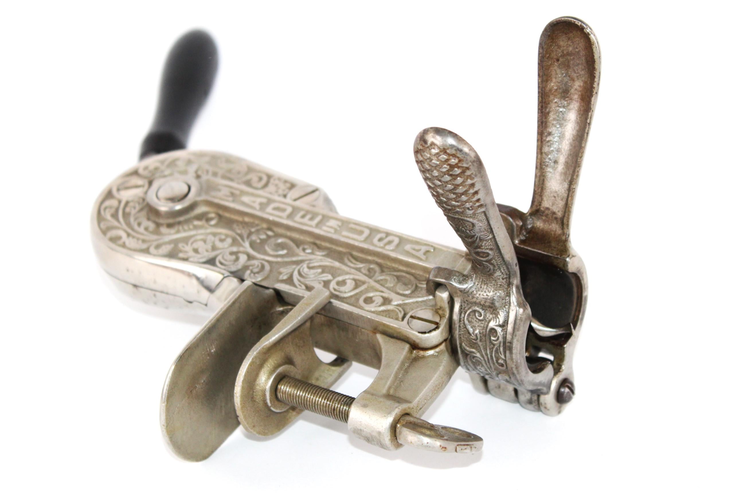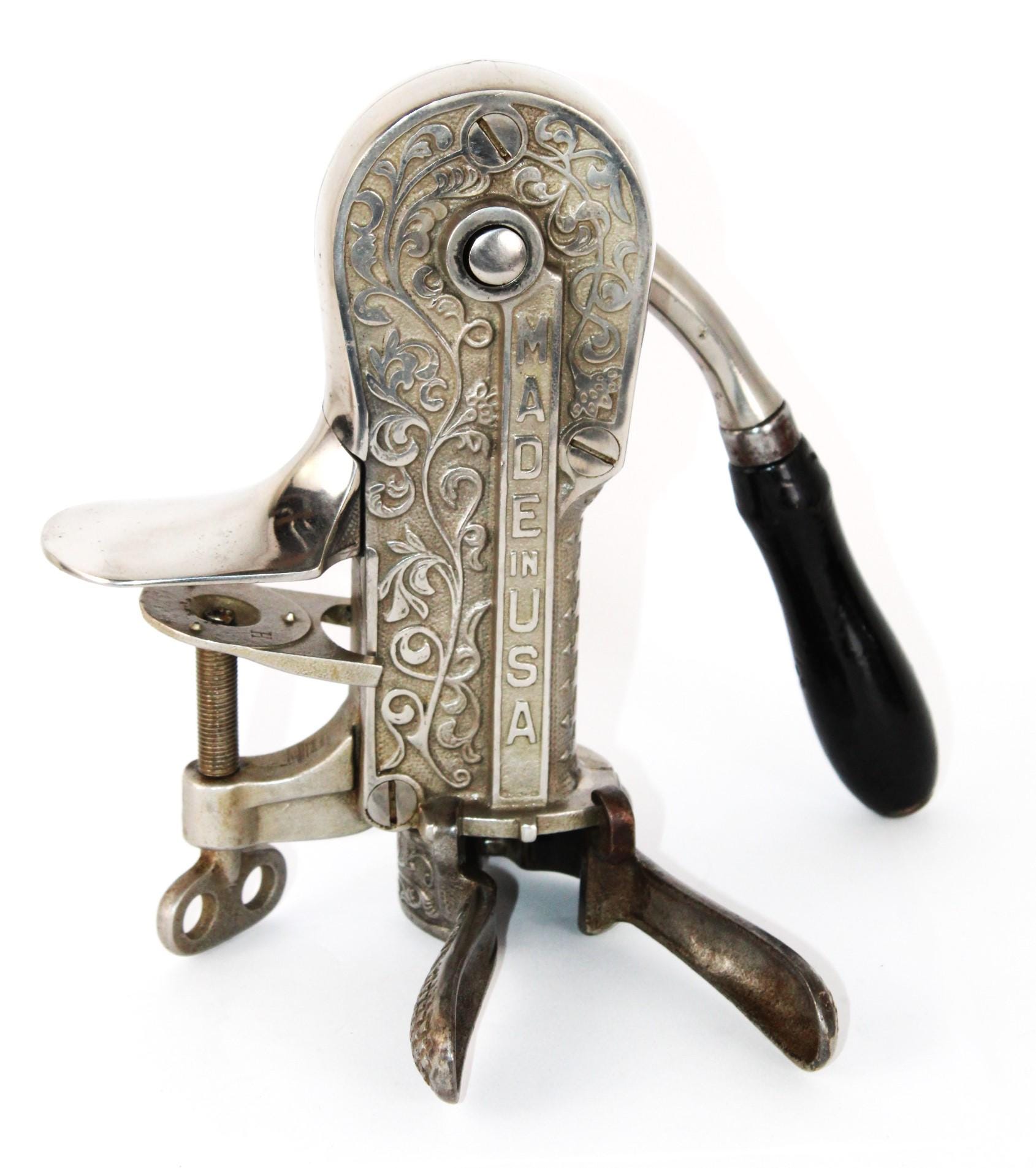 Wonderful find, this 1910 bar mount corkscrew made by the Arcade Company, Freeport, Illinois. Branded the Champion and made in the USA.