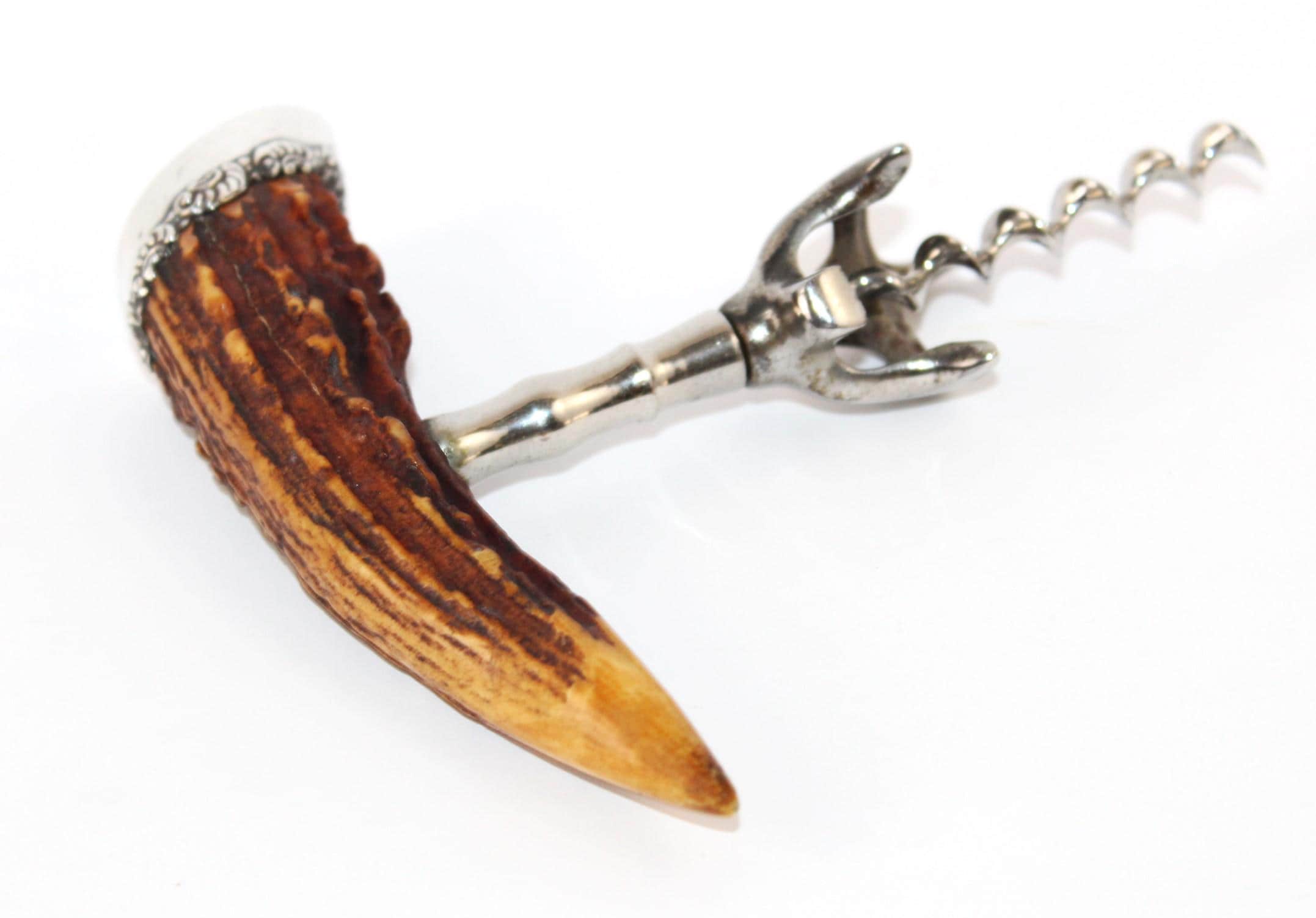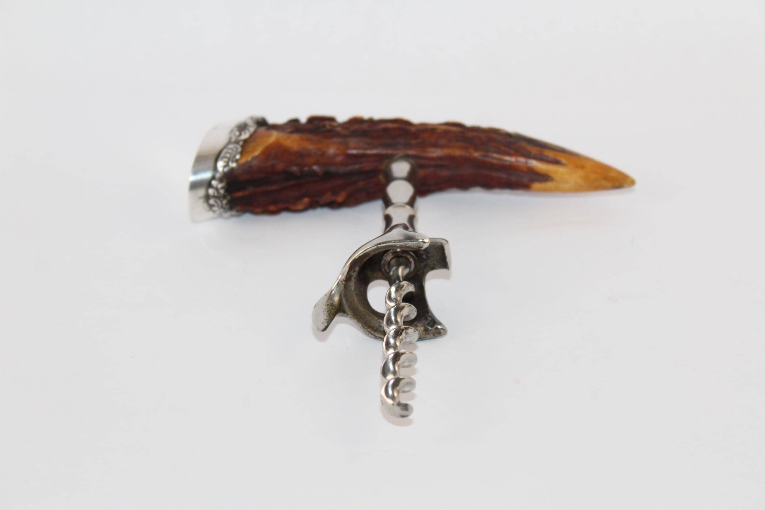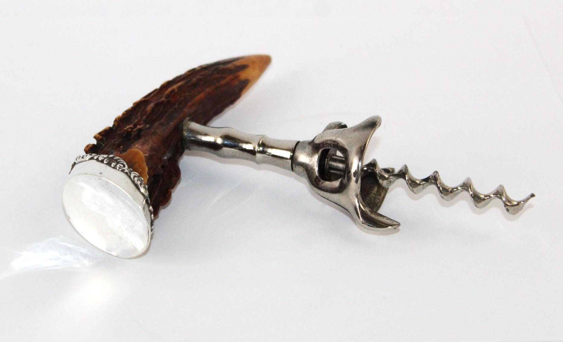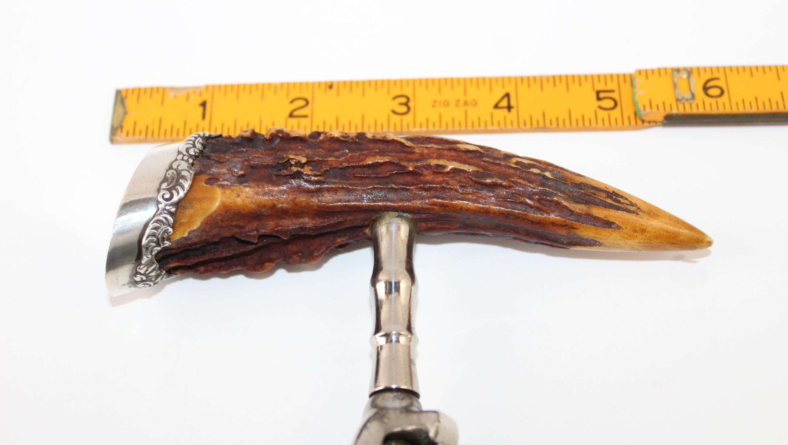 Antique Sterling Stag Horn Handle Corkscrew, Wine Bottle Opener