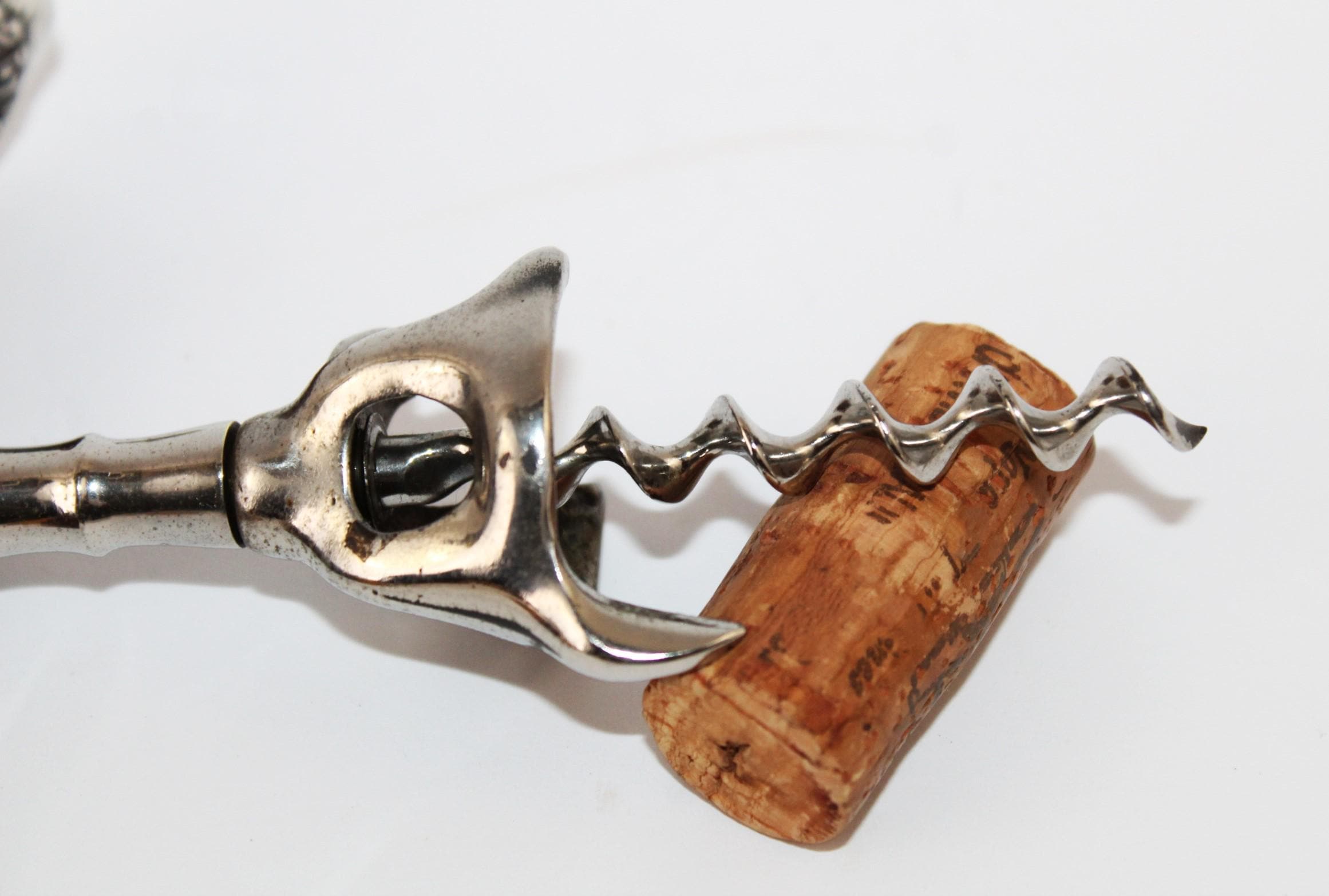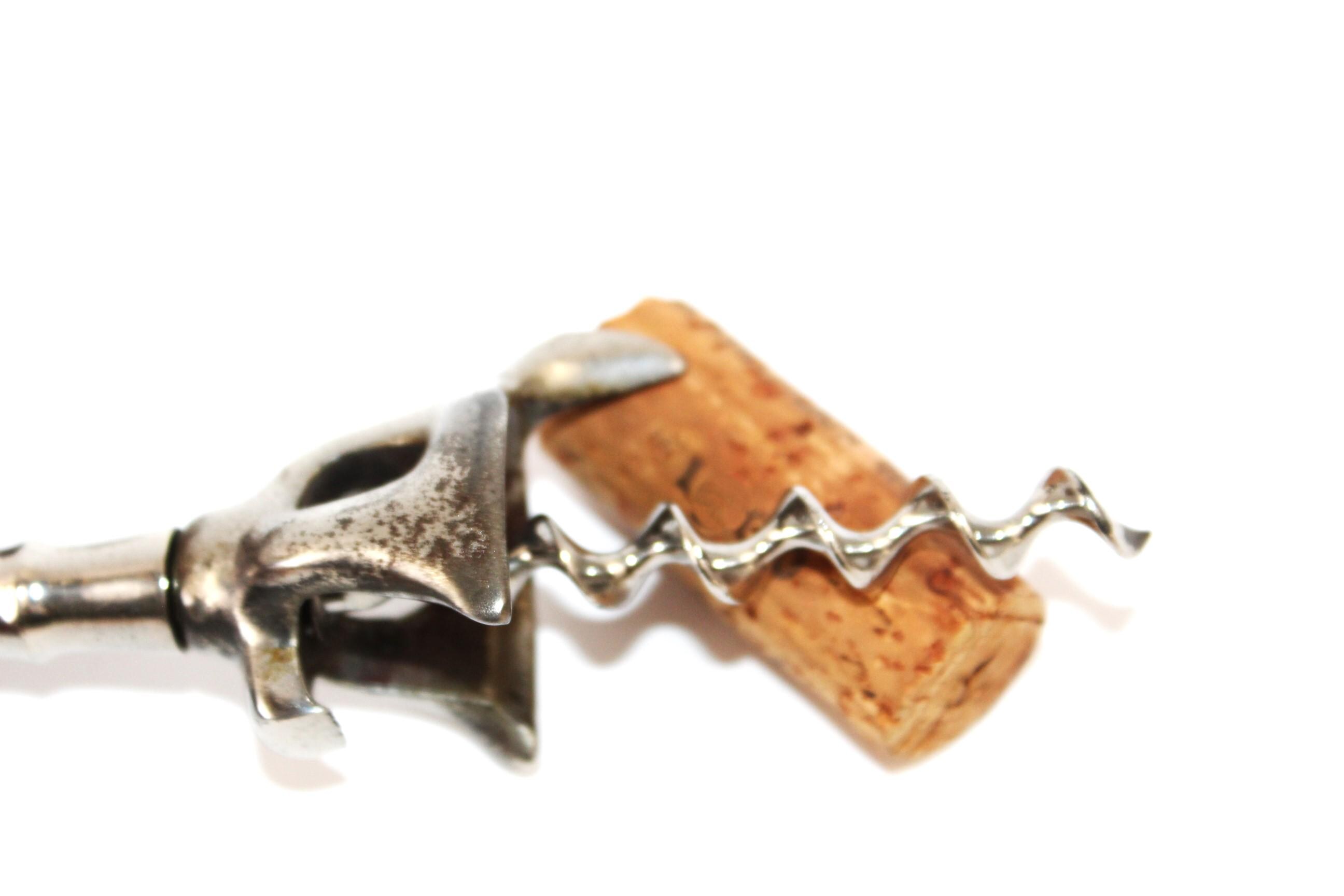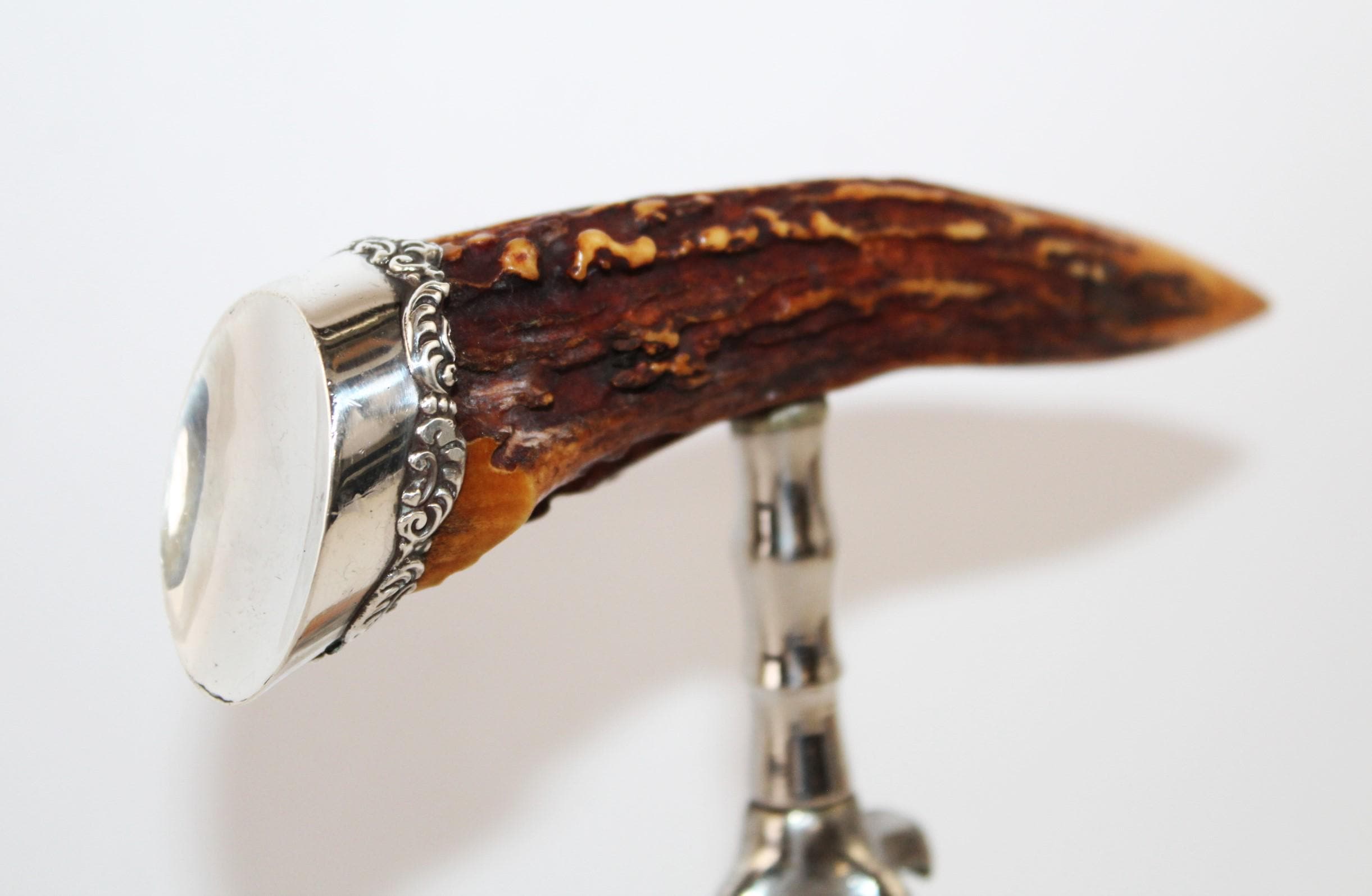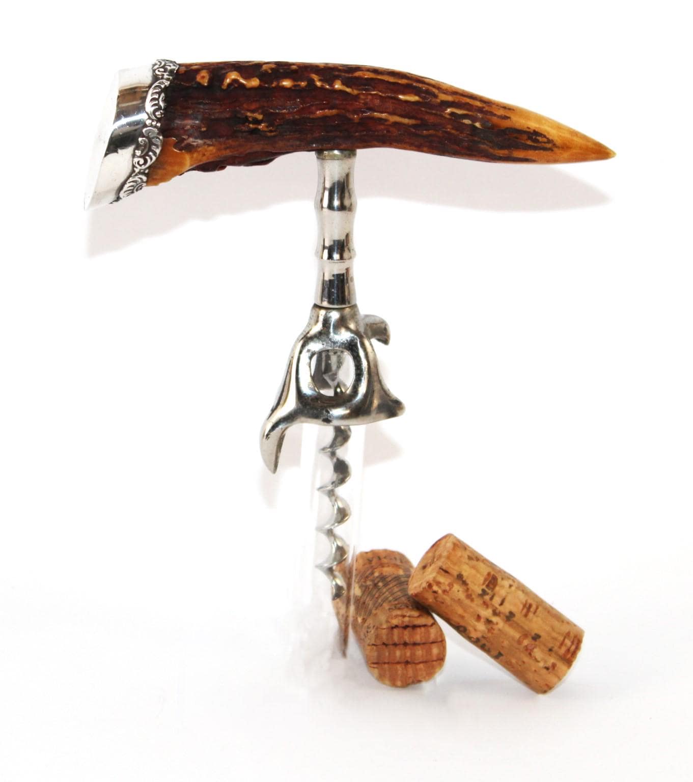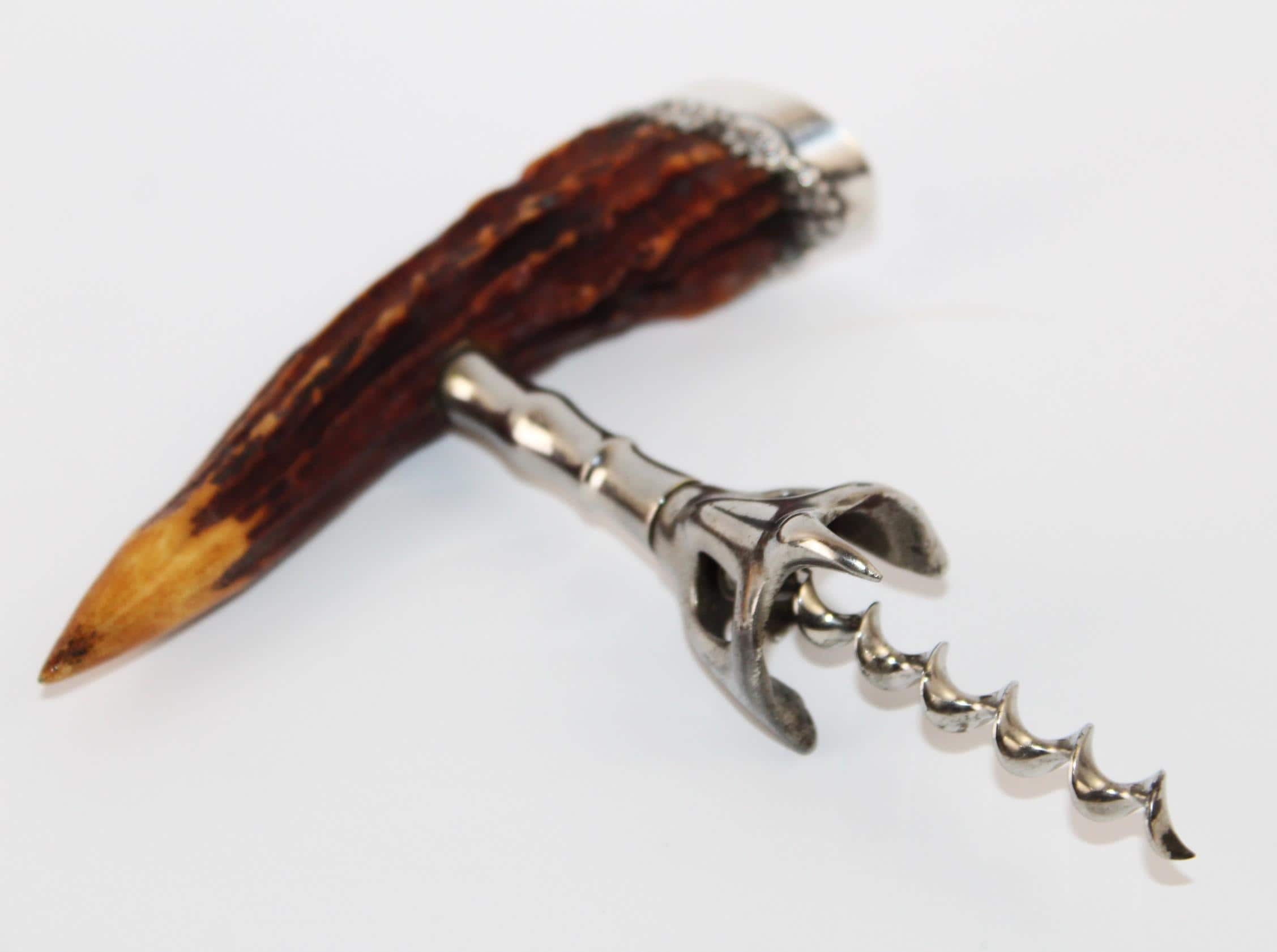 Antique Sterling Stag Horn Handle Corkscrew, Wine Bottle Opener