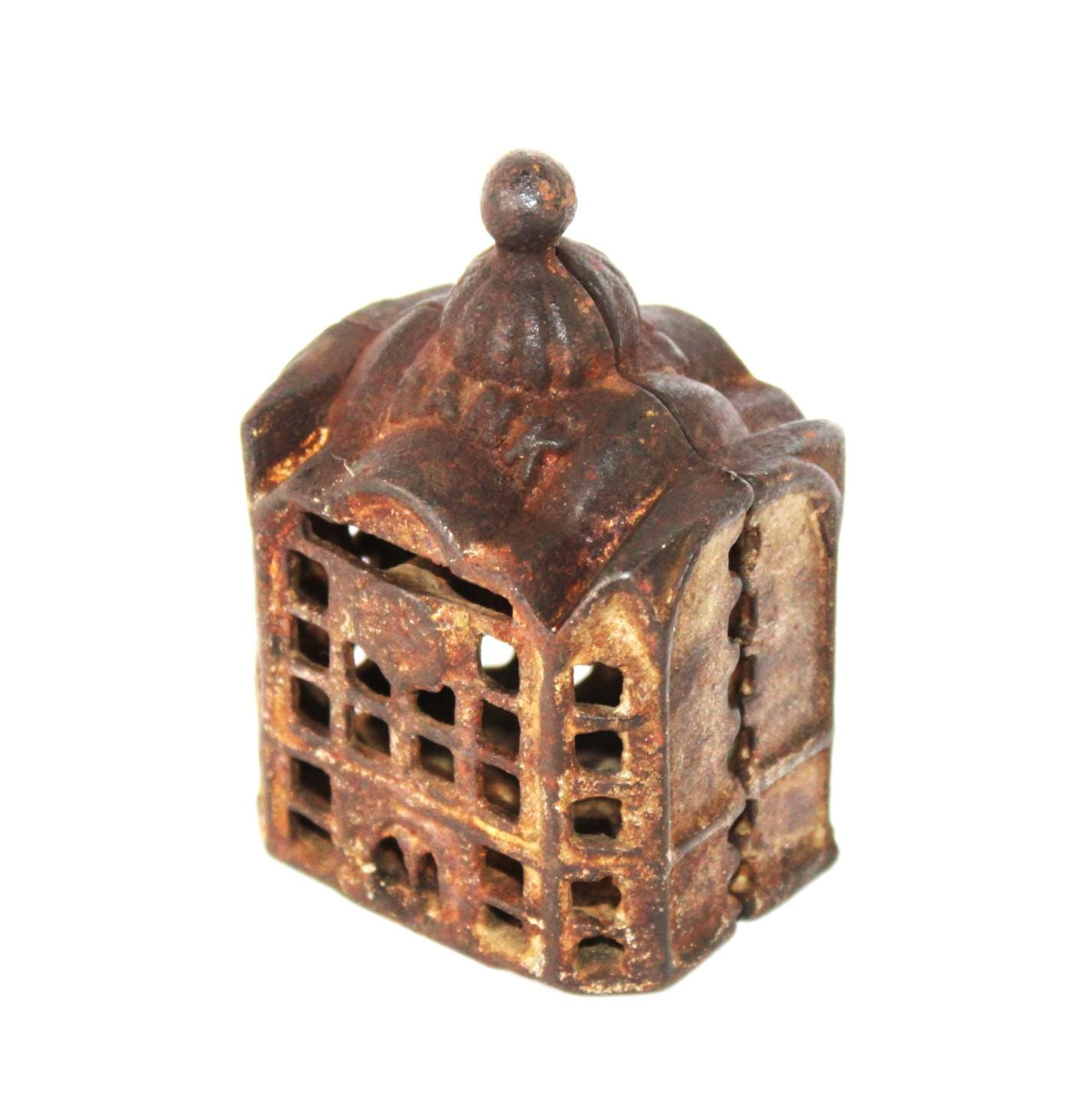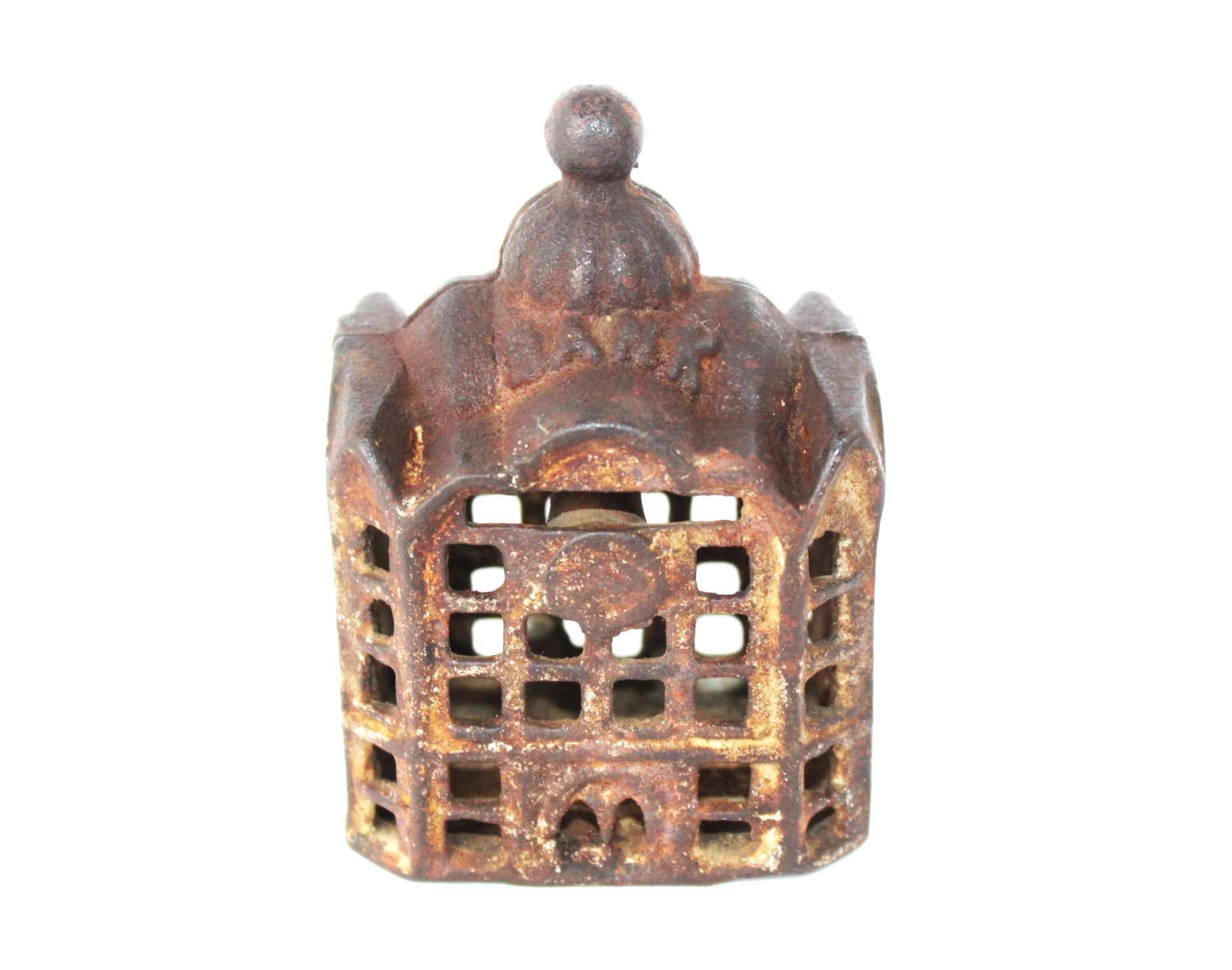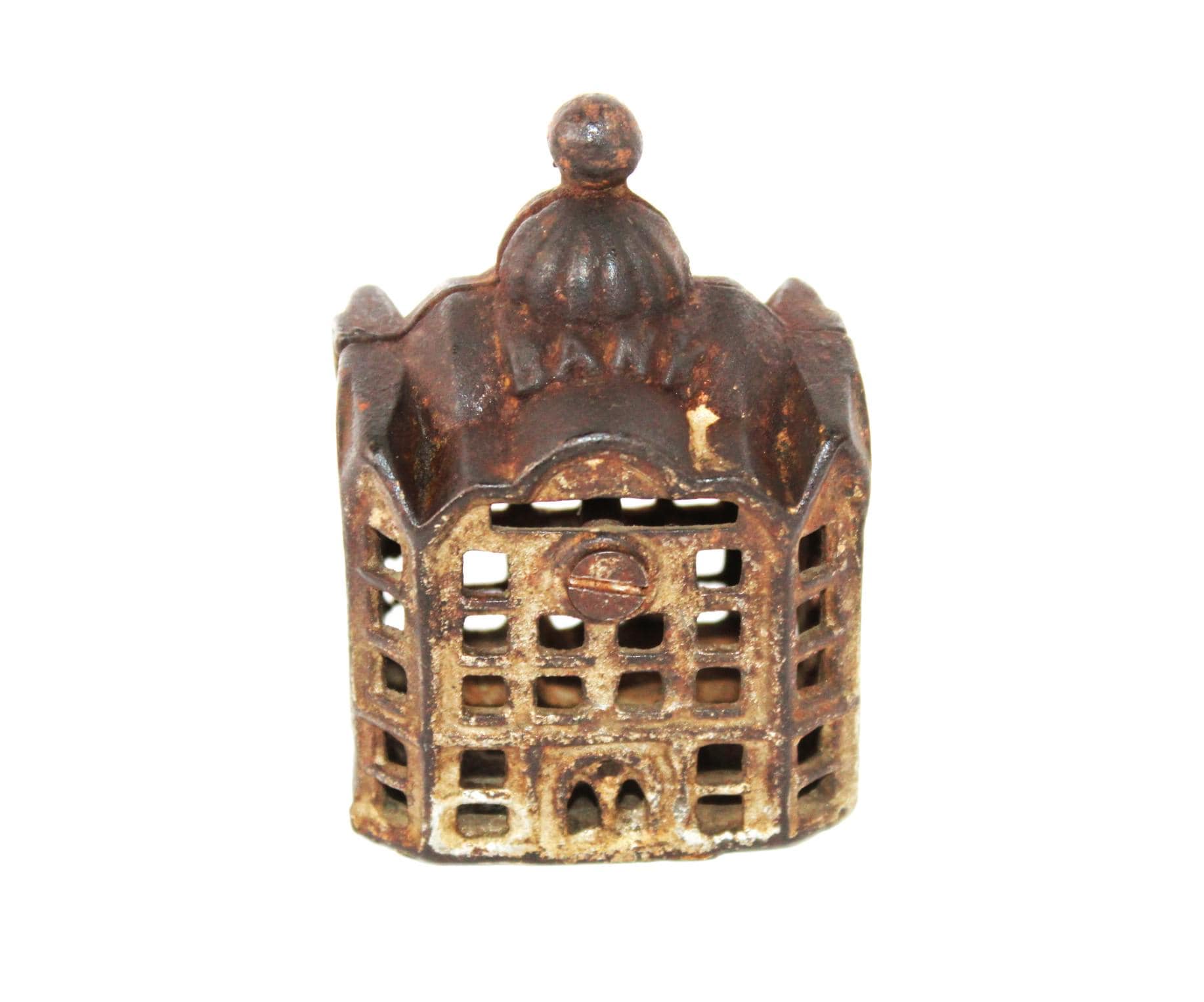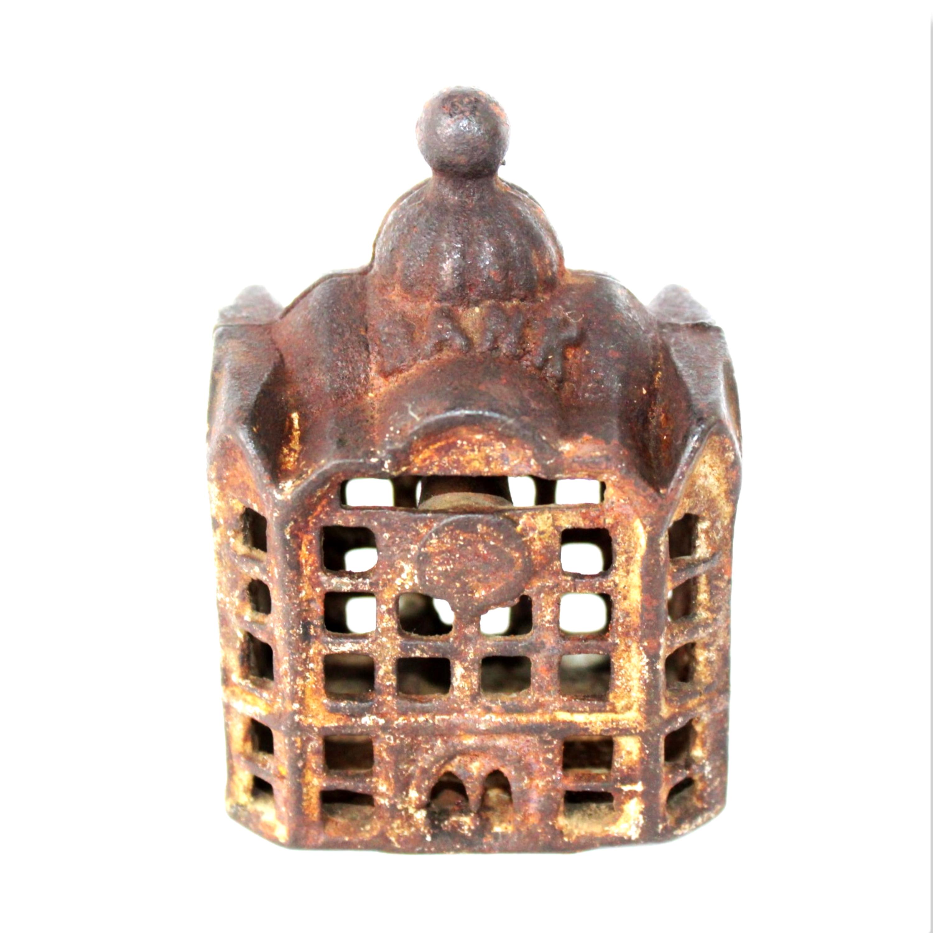 Wonderful find, this antique cast iron Still Penny Bank was made in the early 1900s. The original color of the Bank was silver; some original paint remains.