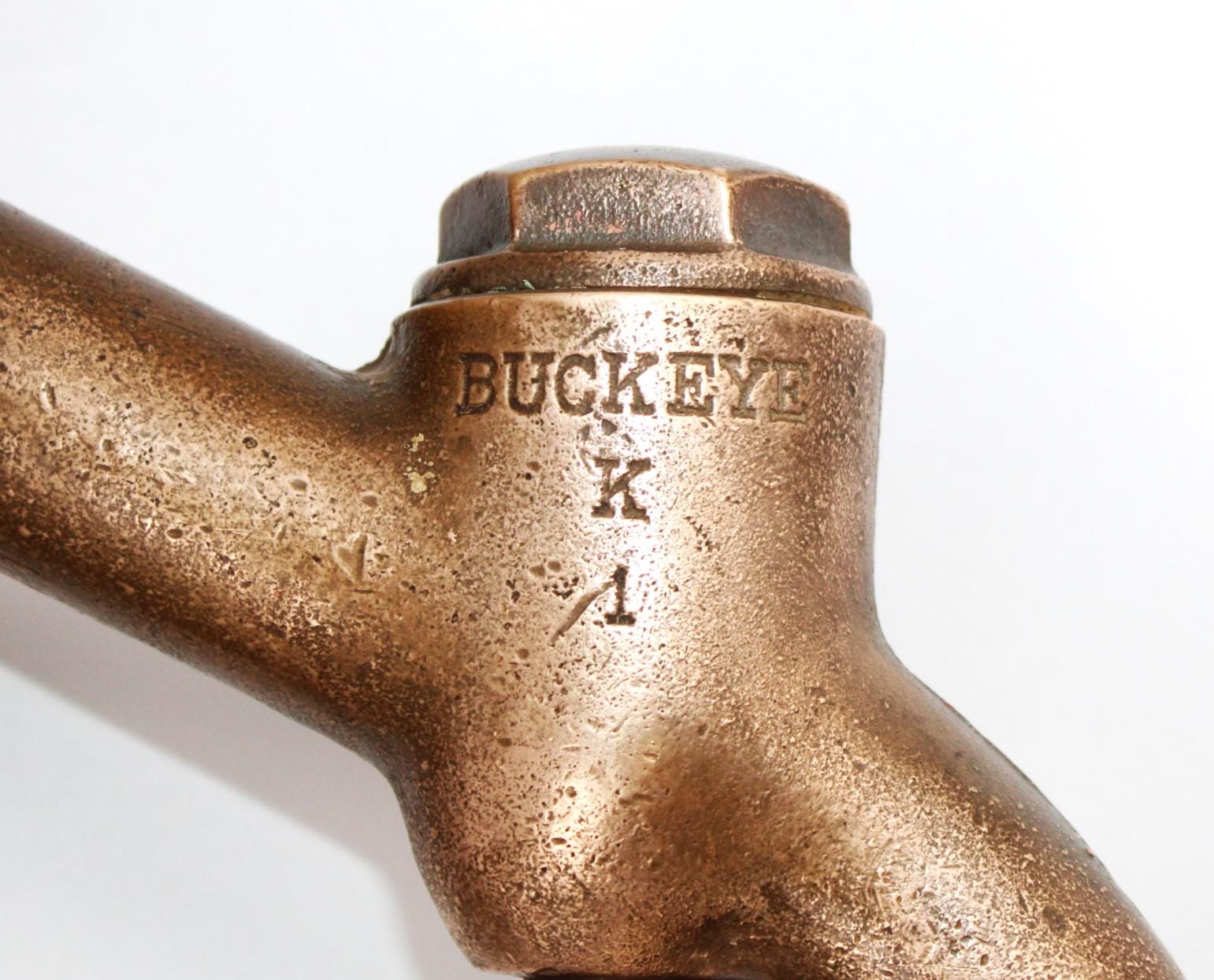 Wonderful find, this 1930s brass gas pump handle made by Buckeye Iron and Brass Works of Dayton, Ohio.