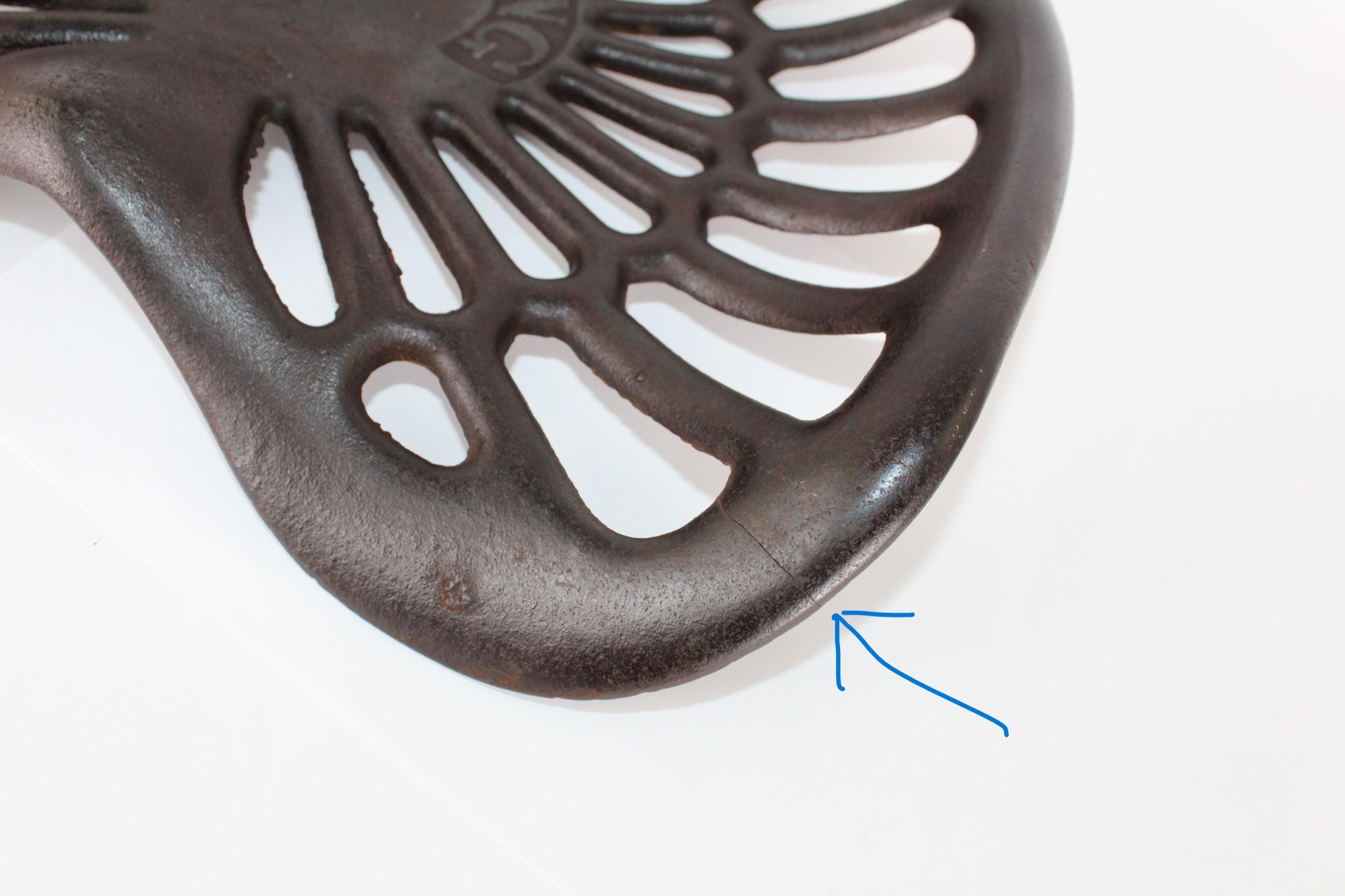Wonderful find, this Deering Cast Iron Tractor Seat. It is marked at the bottom D267.