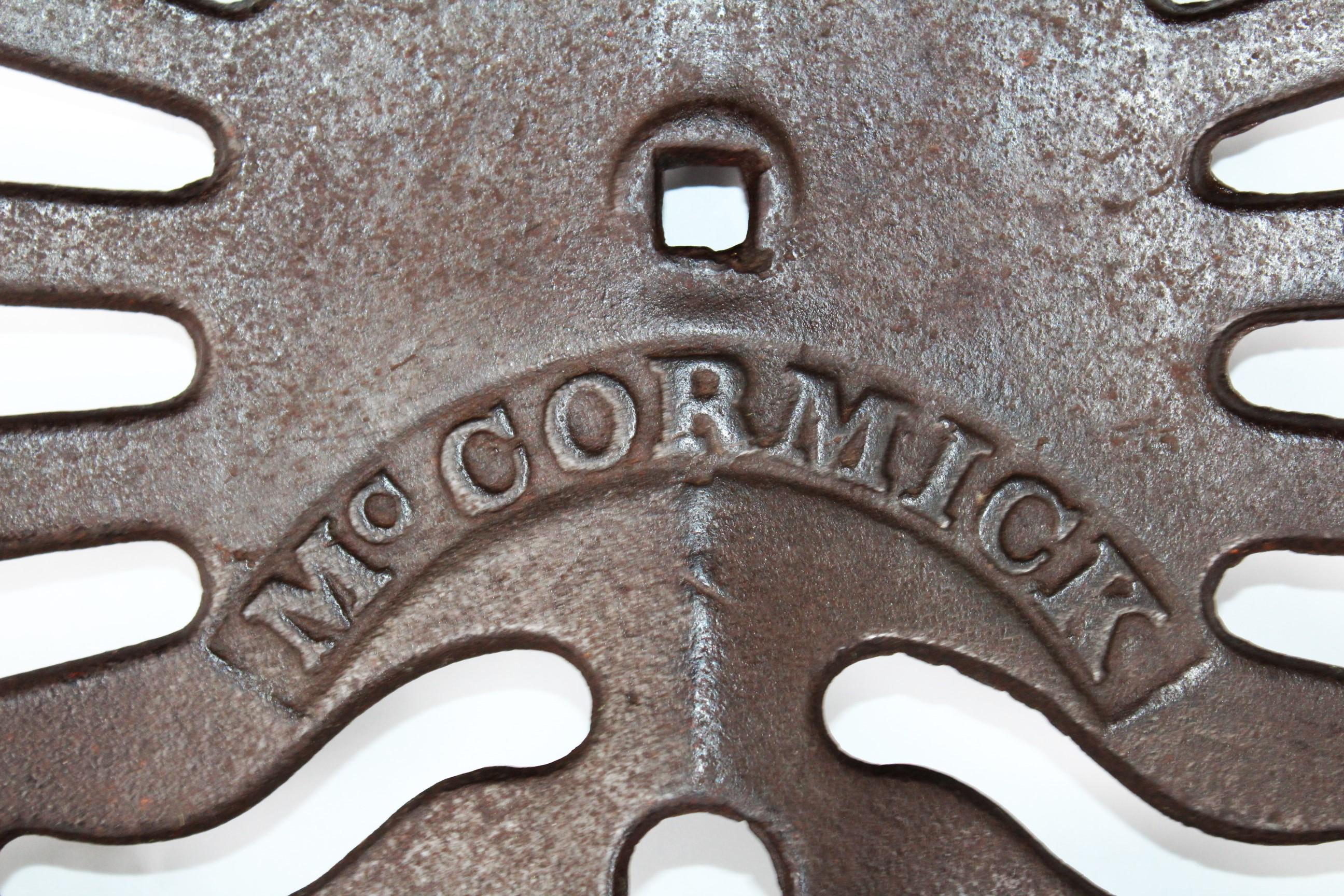 Wonderful find, this McCormick Cast Iron Tractor Seat. This is not actually a tractor seat, although it is the same size. It is from a horse-drawn Harvester made by the McCormick Harvesting Machine Company in Chicago, ILL.