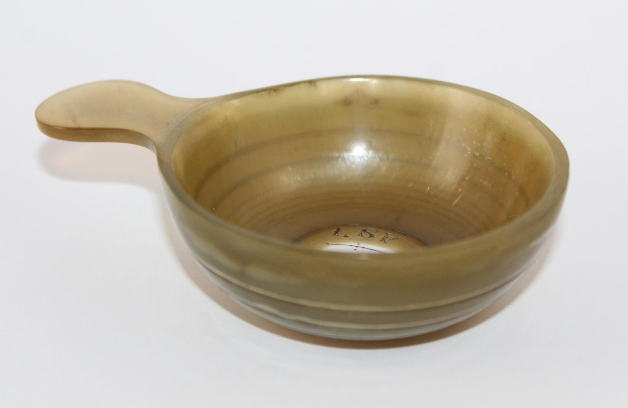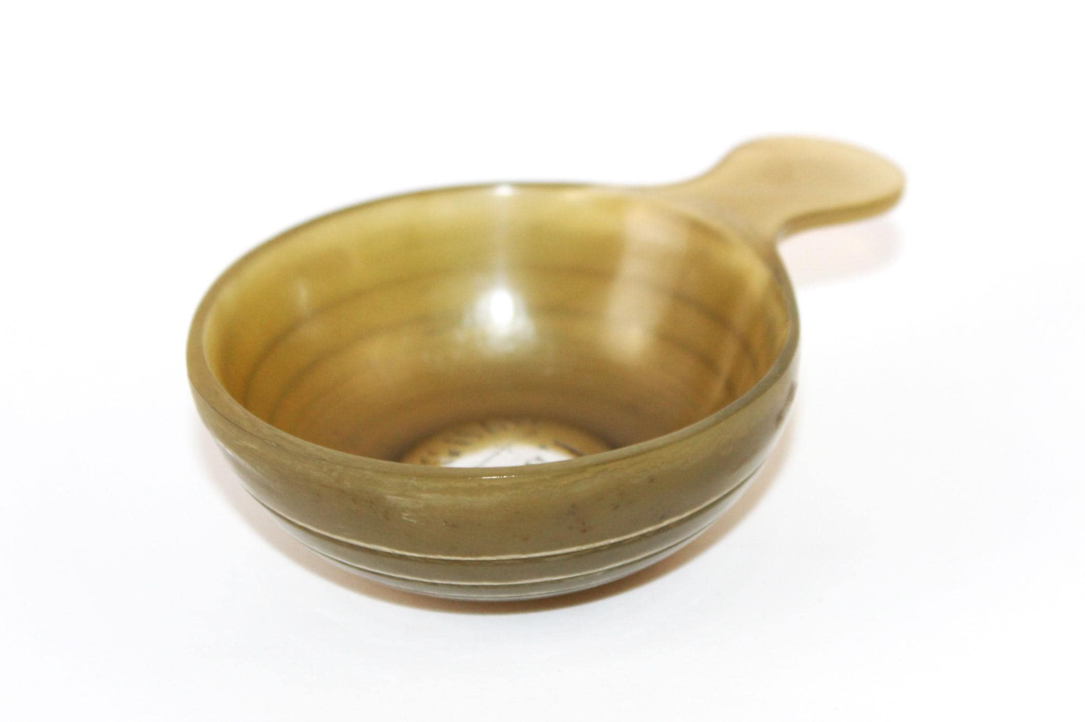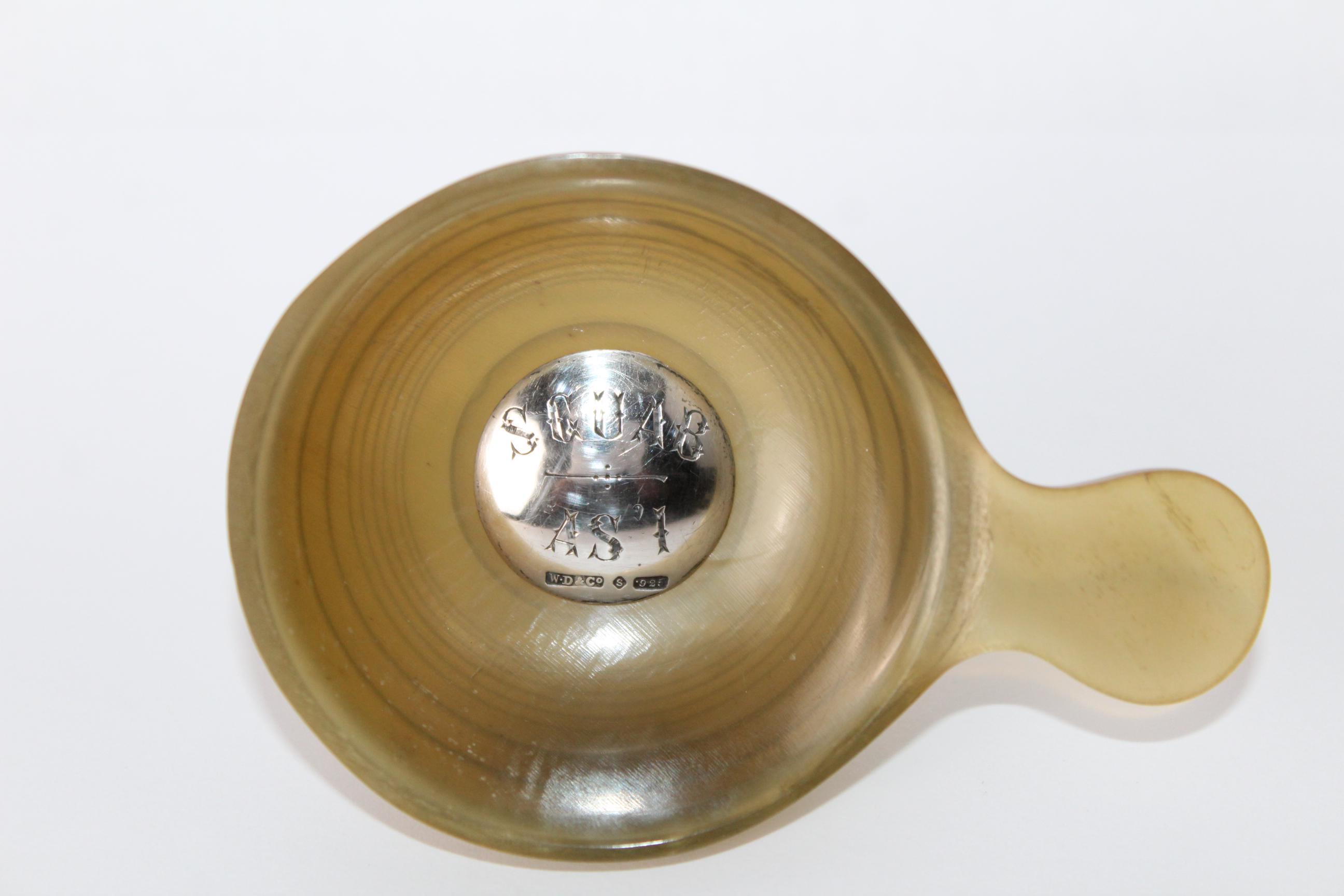 Made of Edinburgh Sterling Silver inlaid into the Bovine Bone cup—a very lovely piece.