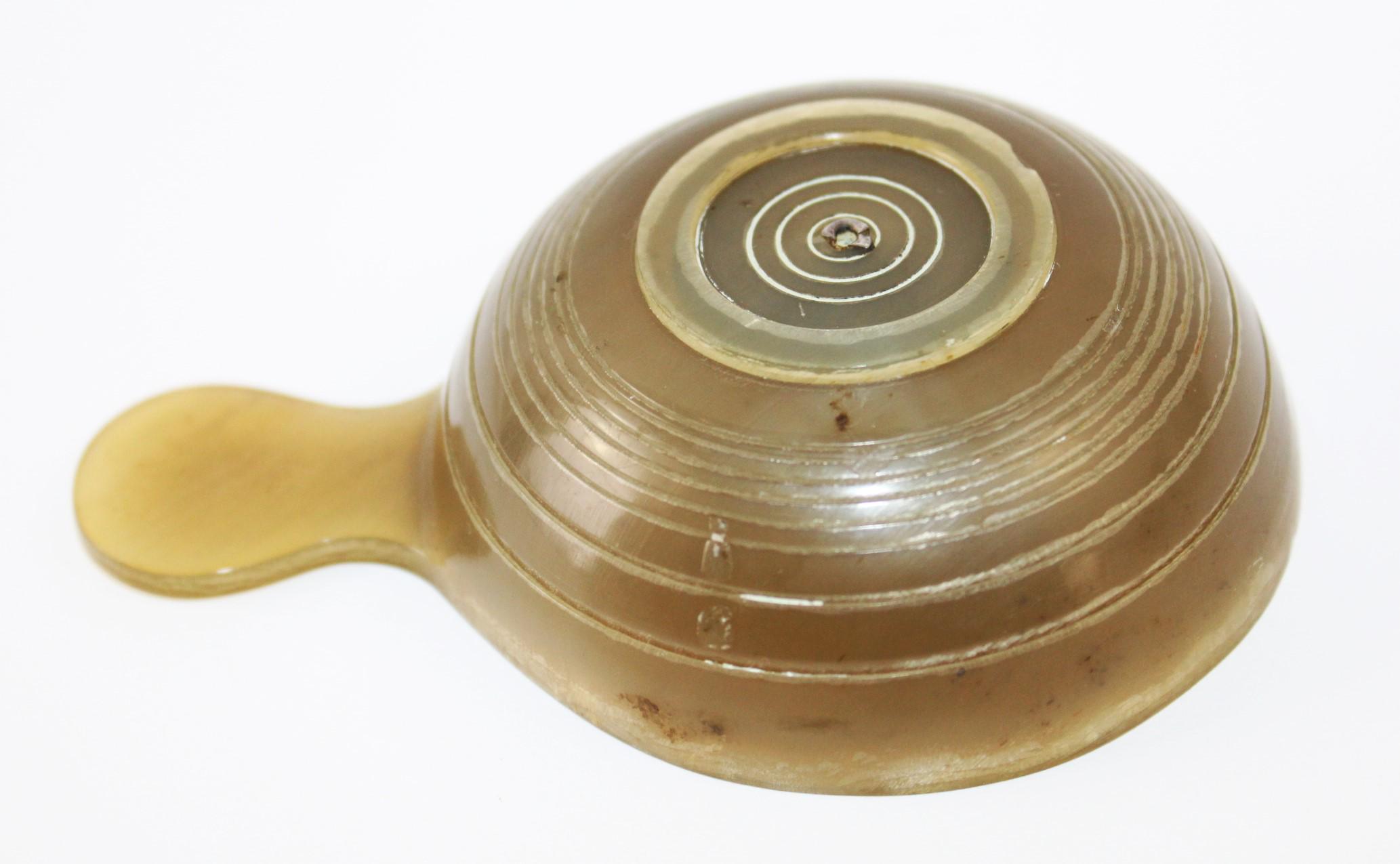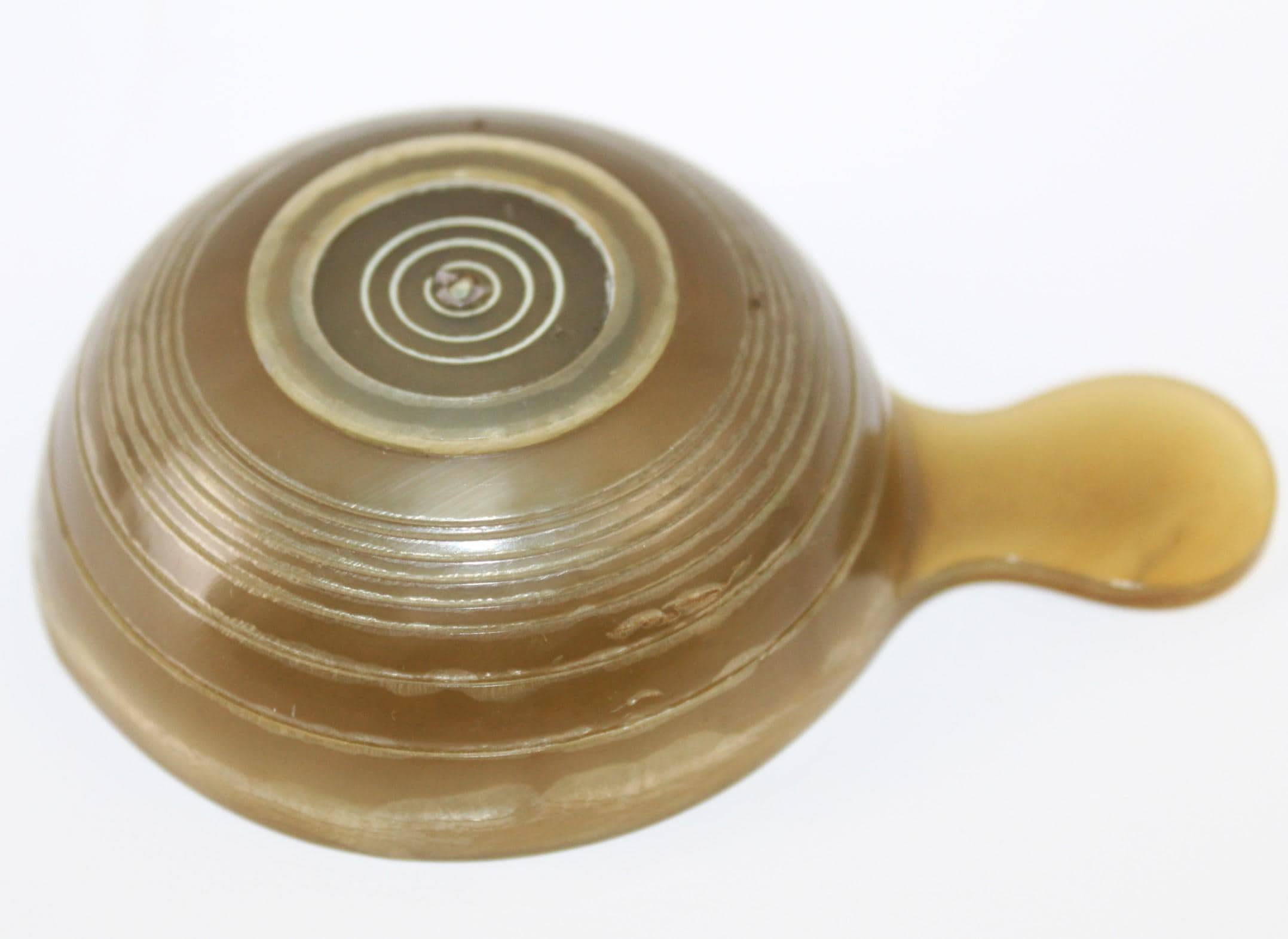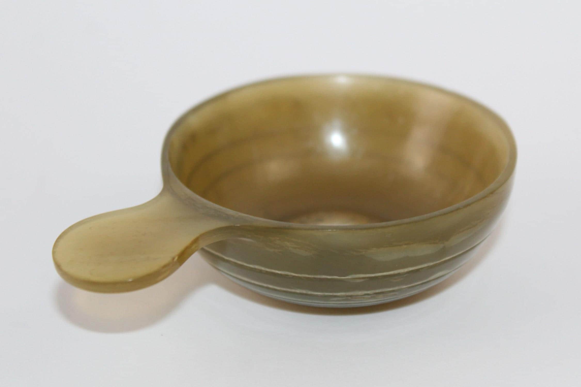 Made of Edinburgh Sterling Silver inlaid into the Bovine Bone cup—a very lovely piece.