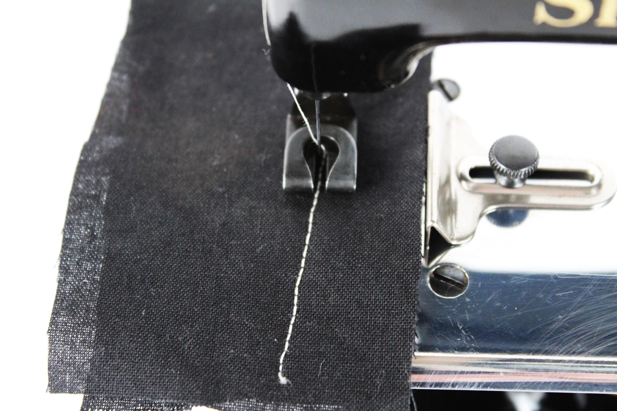 It comes as shown with a fabric guide, a new sewing needle, and one spool of thread.
