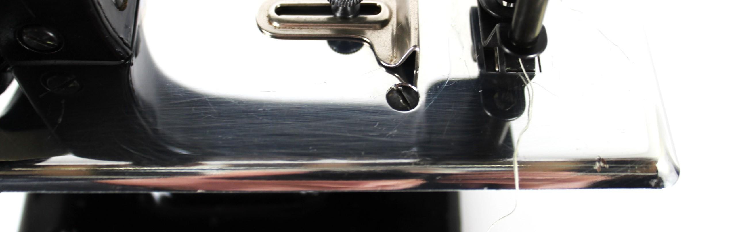 Condition: cleaned and tested, has scuffs and scratches on the sewing bed, as shown in pictures.