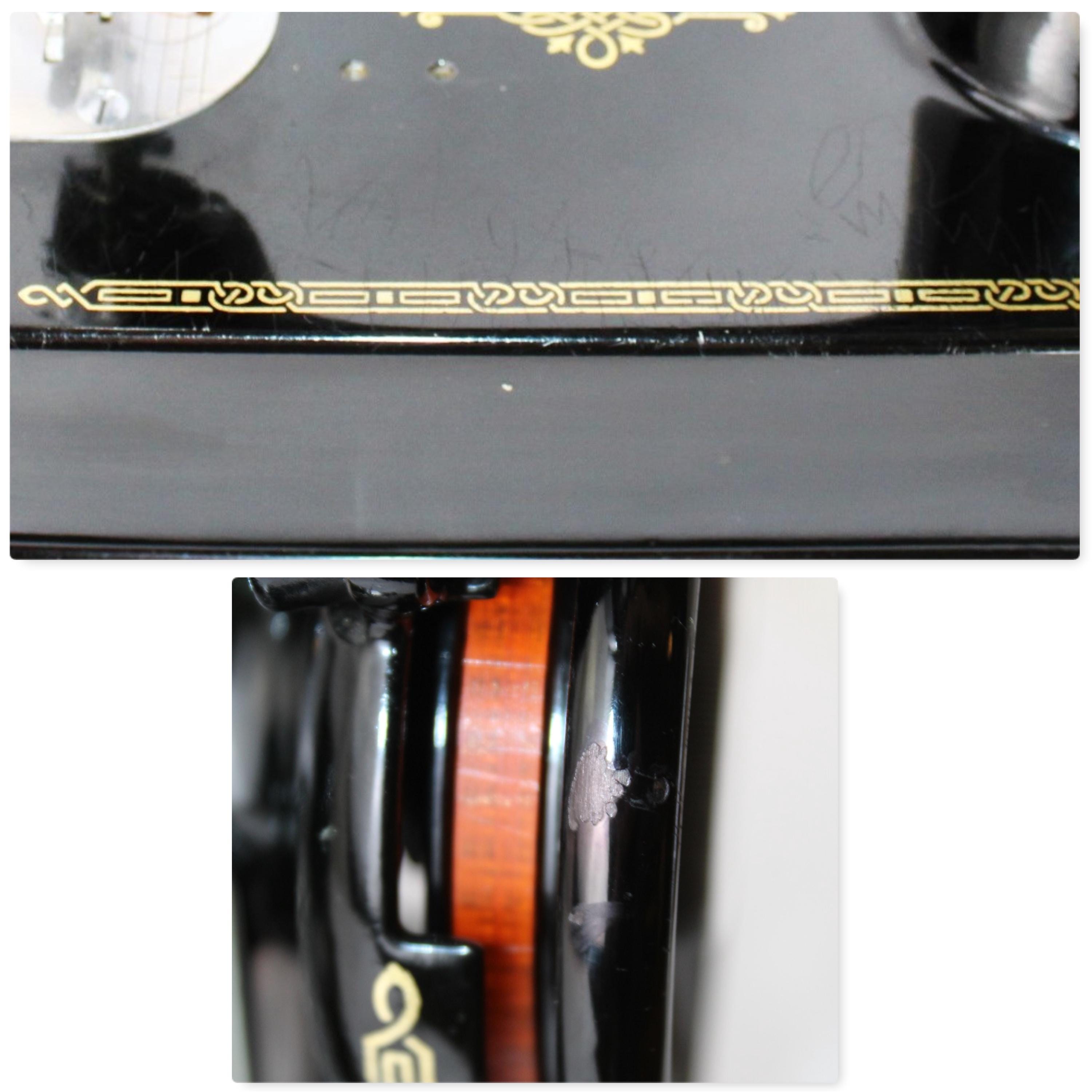 MACHINE: runs and operates smoothly, has scuffs and scratches, and paint chips in the flywheel edge. The electrical plug housing has a chip at its base that does not interfere with operation.