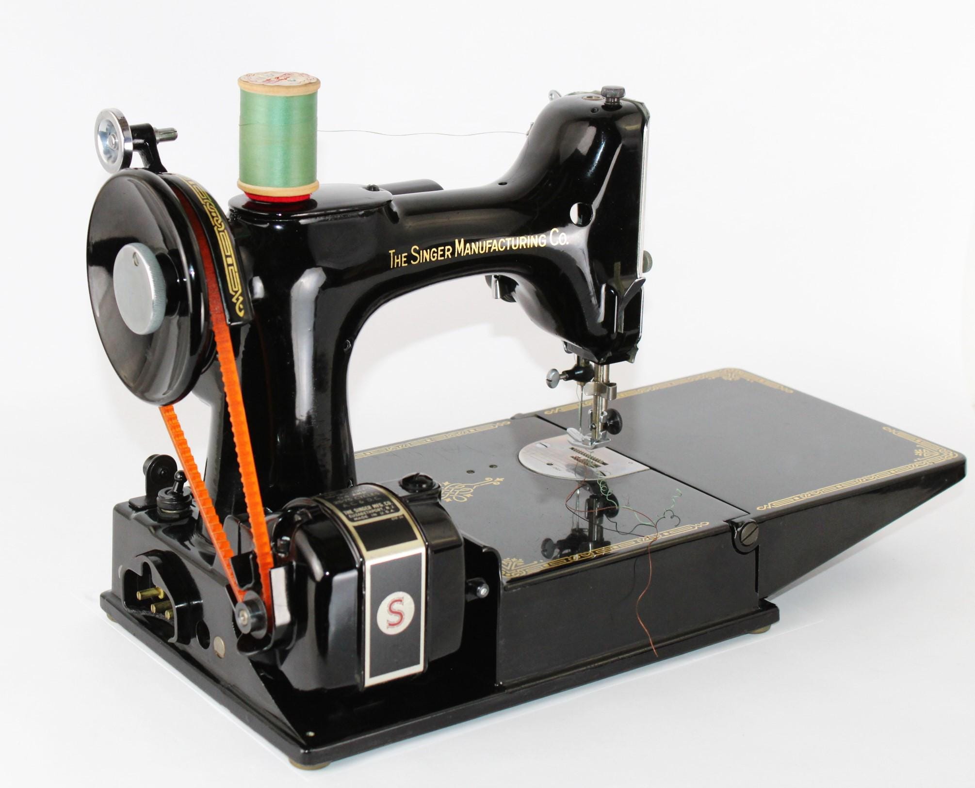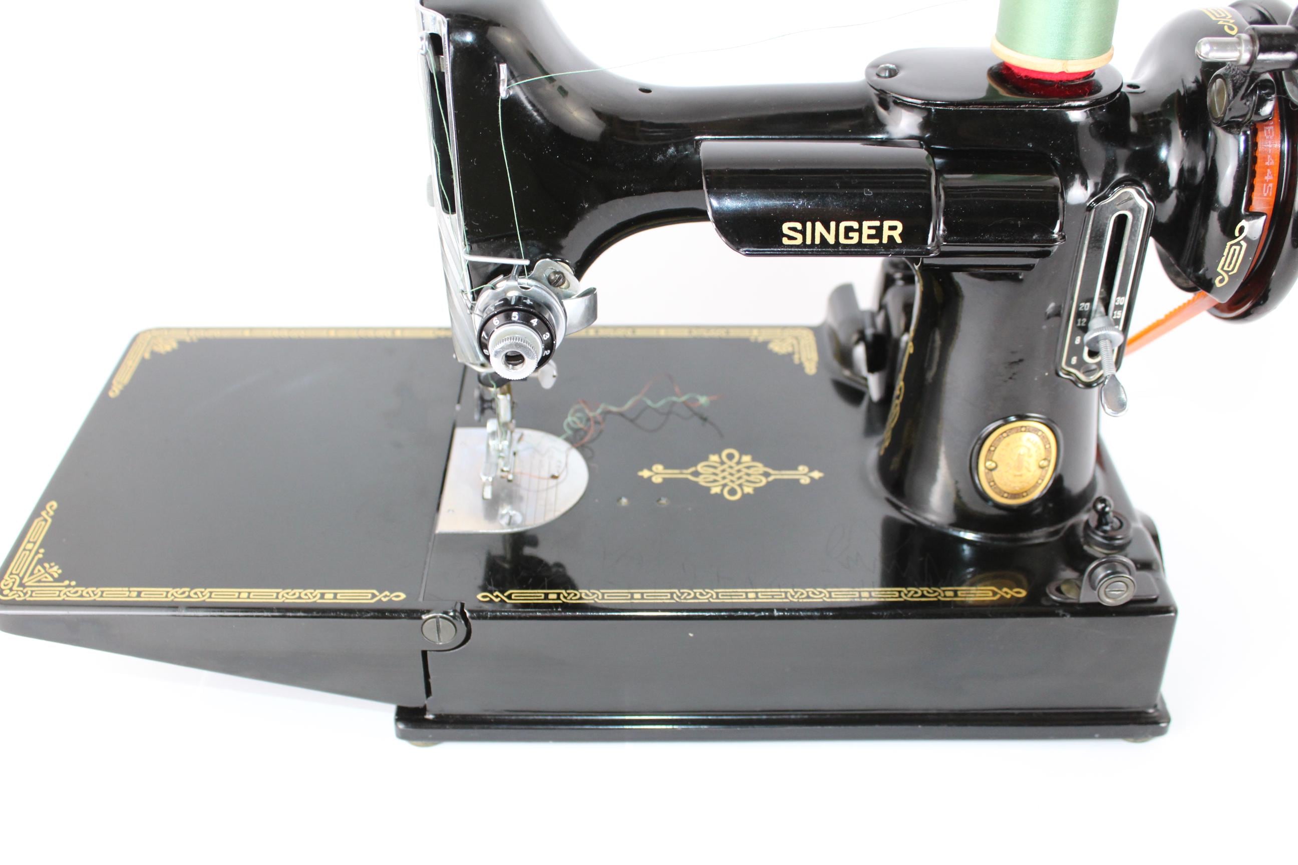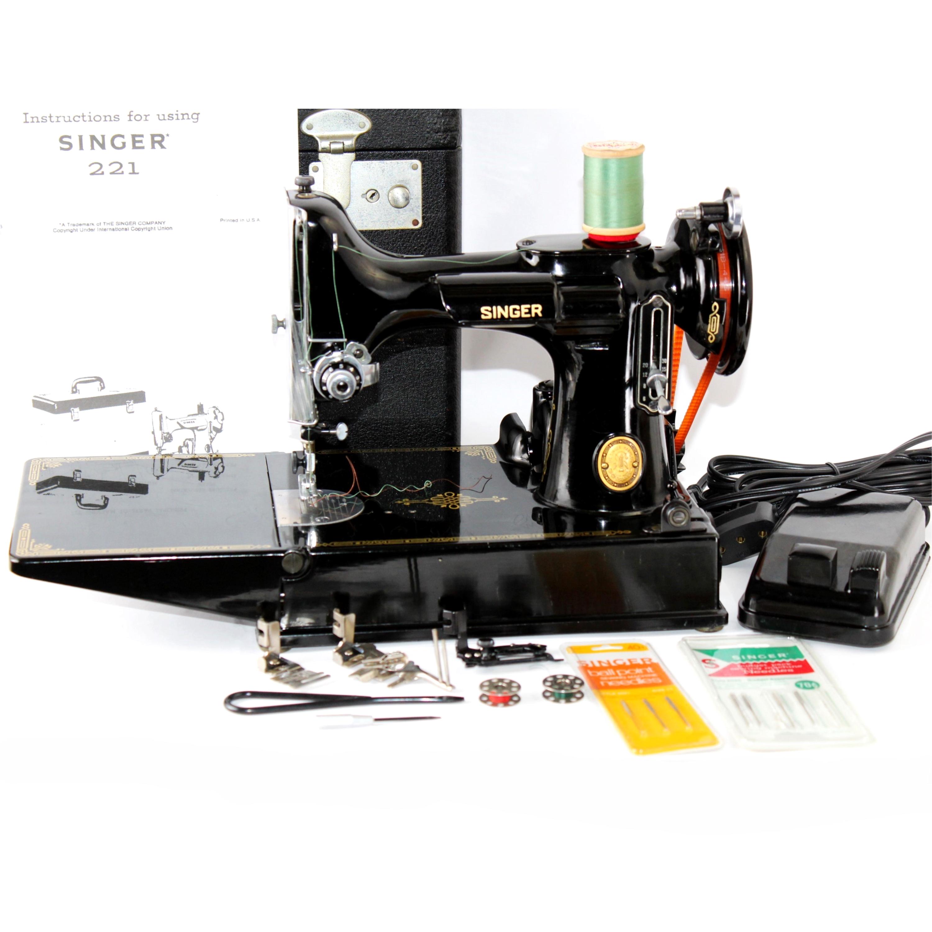 1953 Singer 221 Featherweight Sewing Machine with Carrying Case, cleaned and serviced.