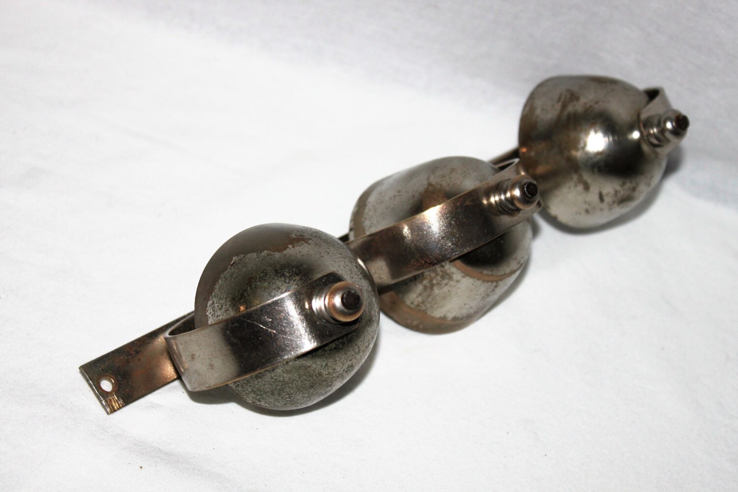 This is a beautiful sounding set of bells, the sound is very clear and therapeutic a very close match too the sound of catholic altar bells. The bells and stand are solid chrome covered brass each bell has three clackers which gives that lovely primitive general store sound.
