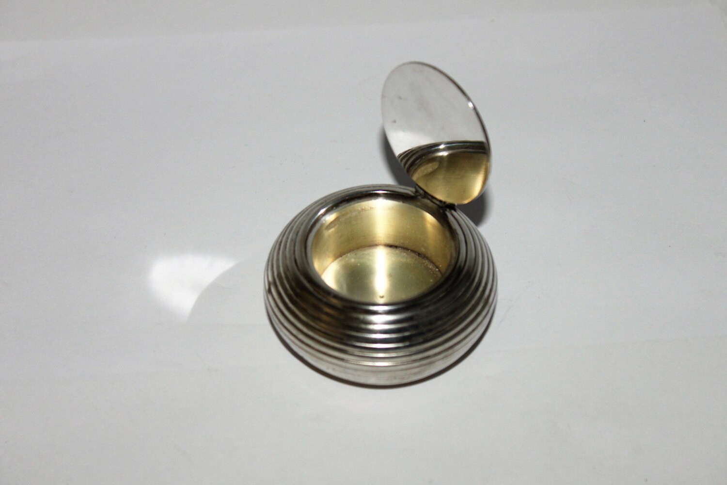 This is a nice silver ink well with hinged lid and felt covered bottom, will make a lovely addition to your desk.