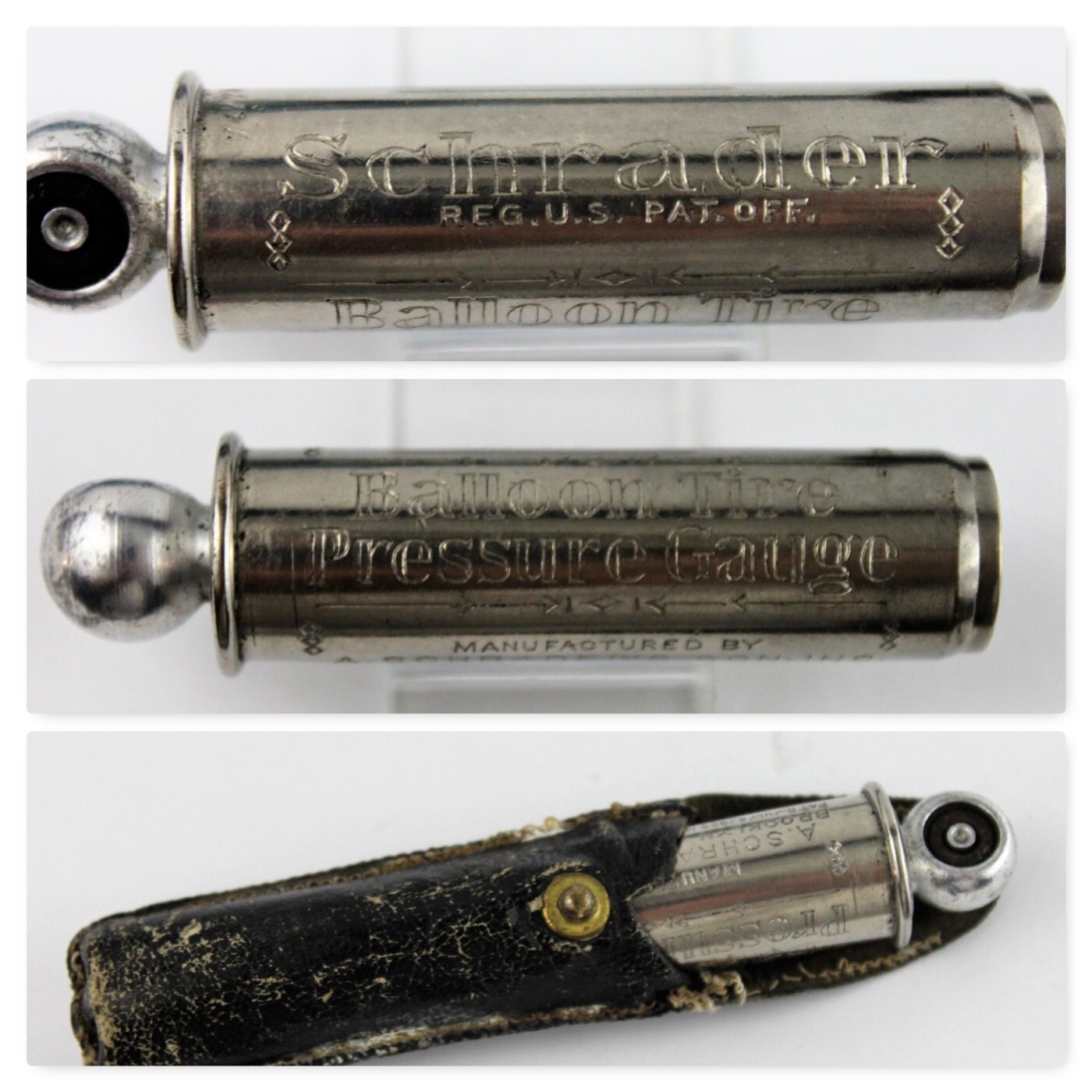 We have for sale an Vintage 1920s Schrader Universal Tire Pressure Gauge