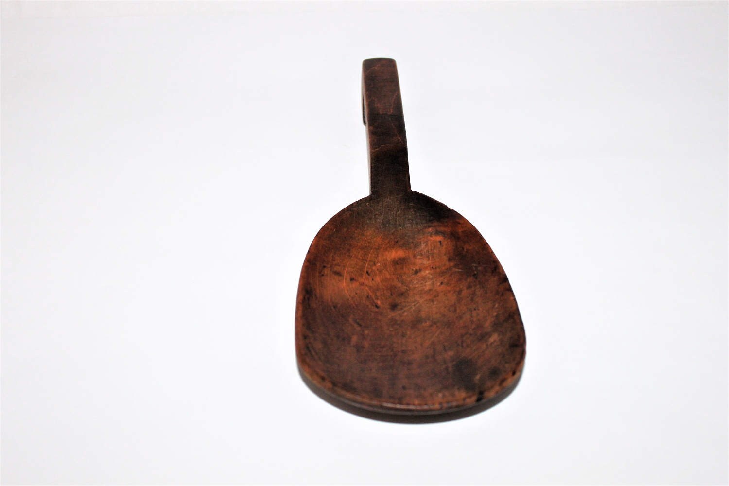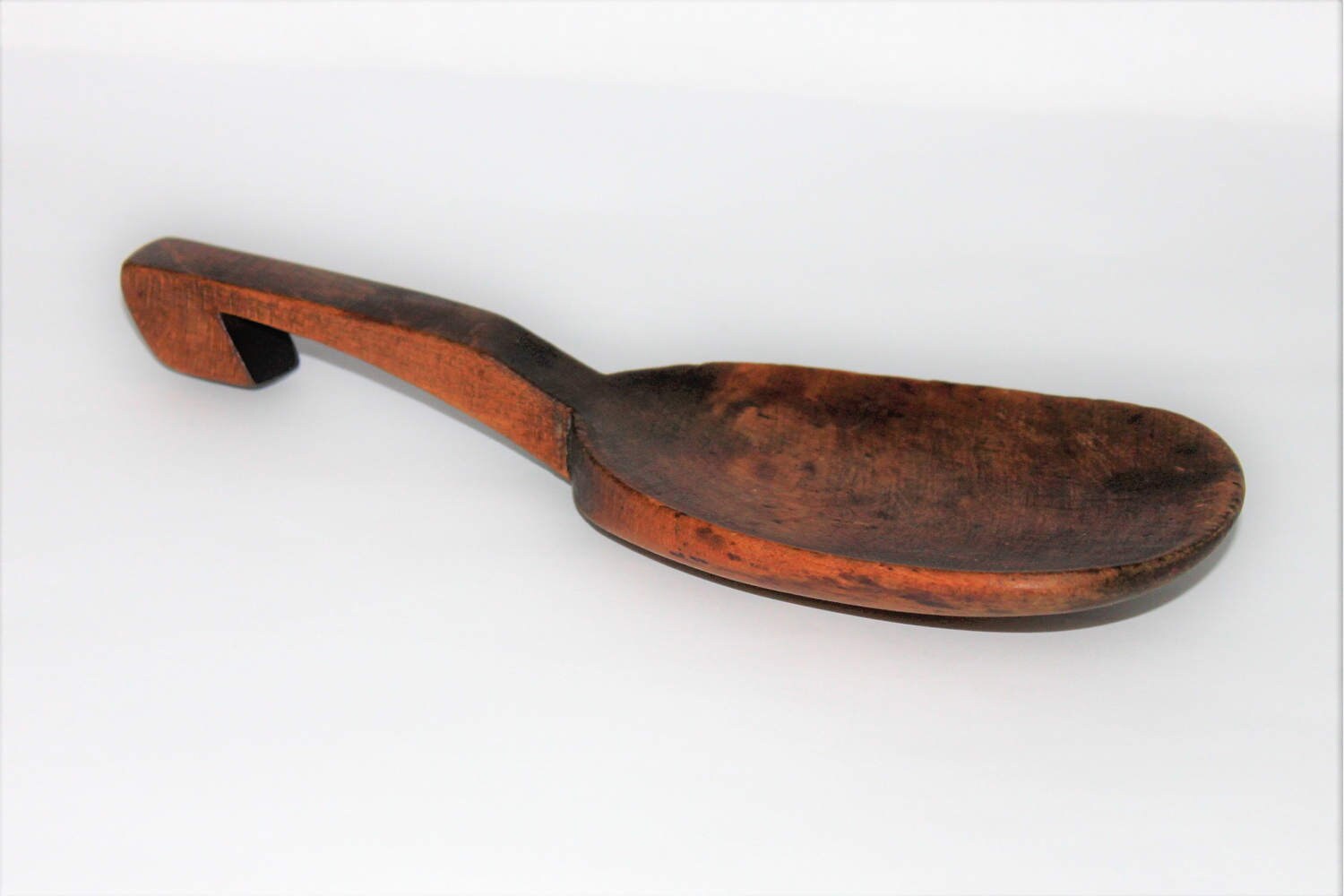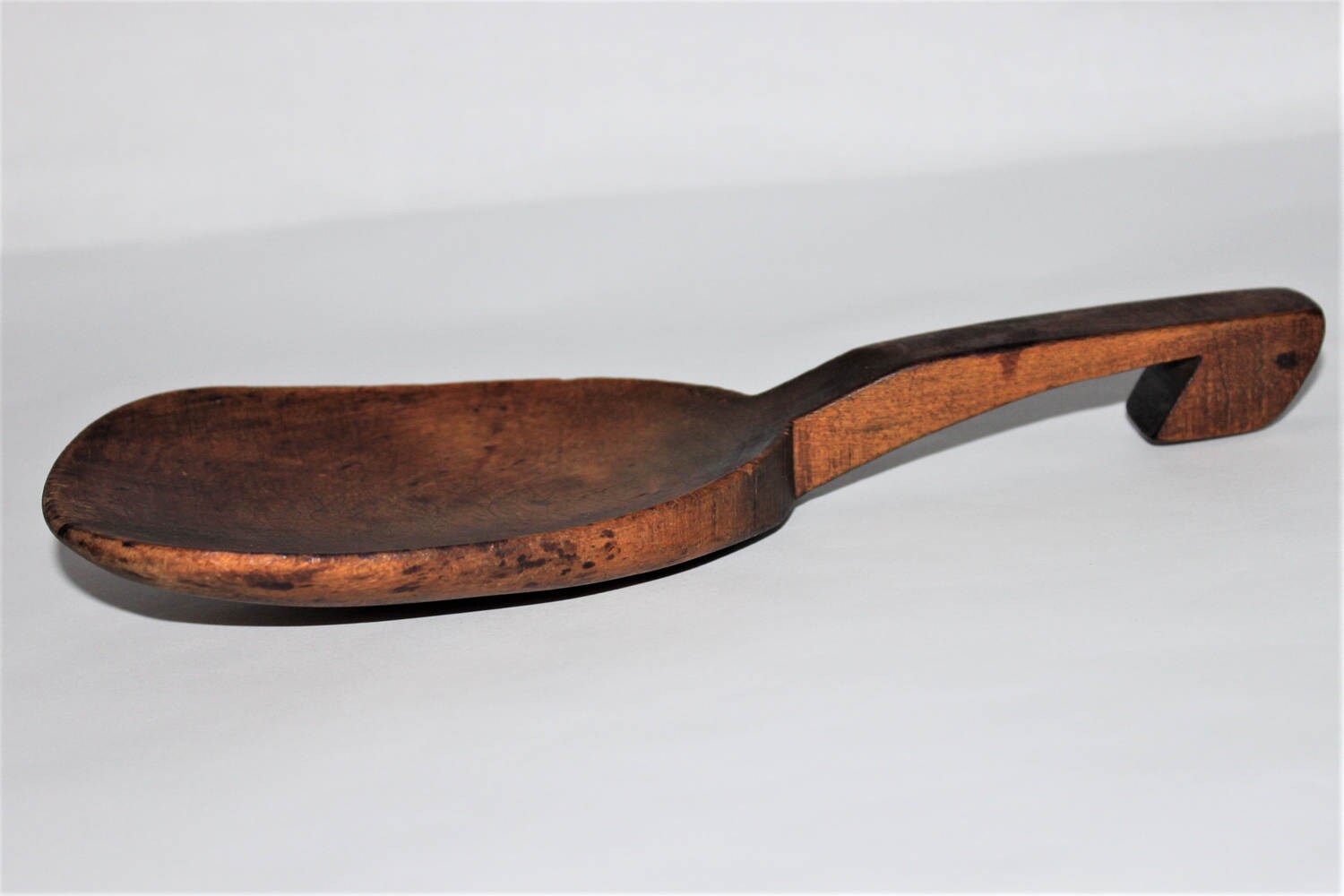This is a very nice example of an 1800 primitive wood serving spoon made of maple wood with natural aged dark patina. Wonderful kitchen décor piece.