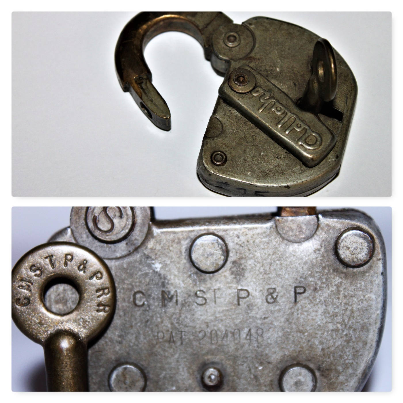 We have for sale a Vintage Adlake Railroad Switch Padlock C M ST P & P and Matching Key