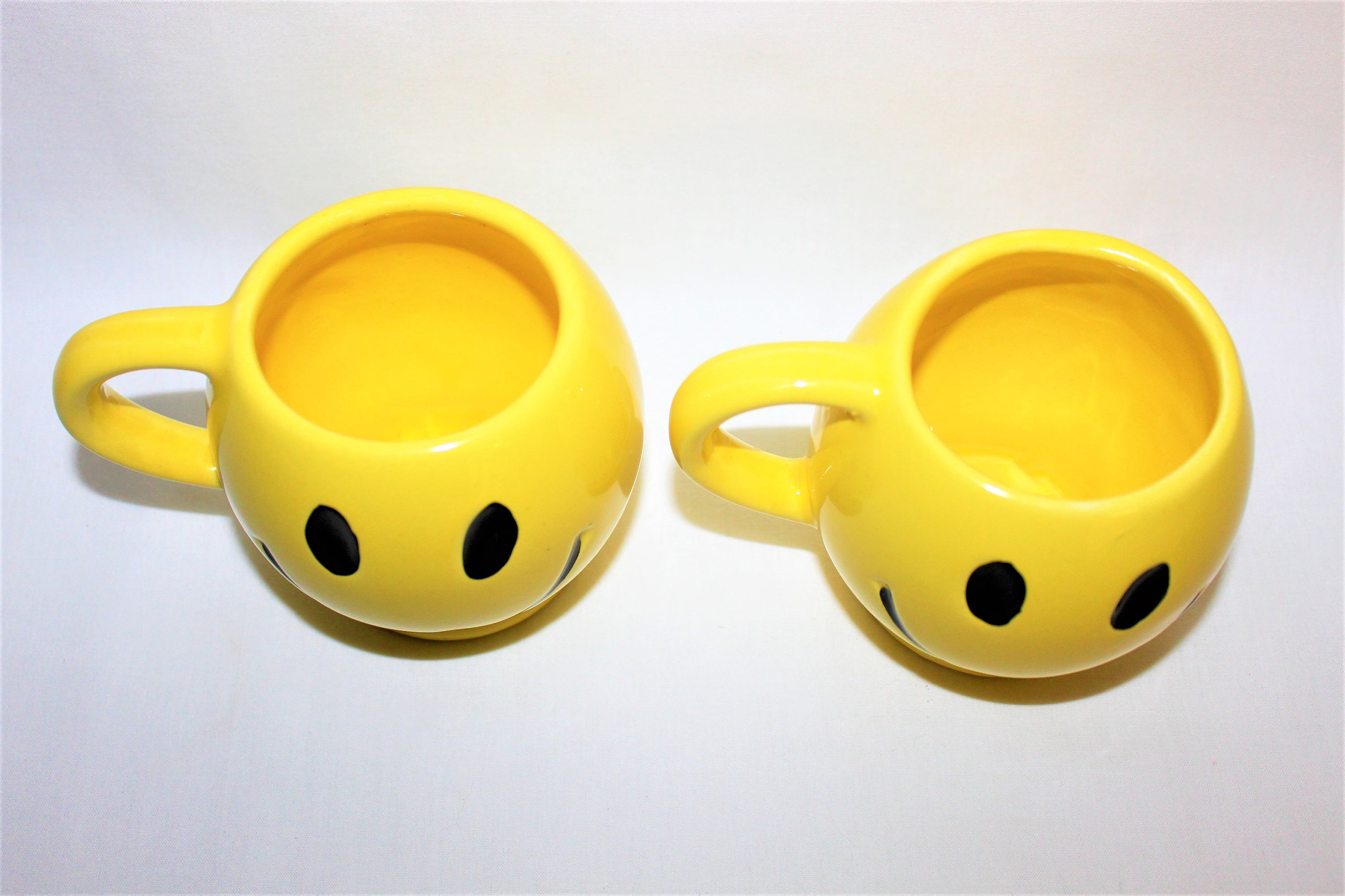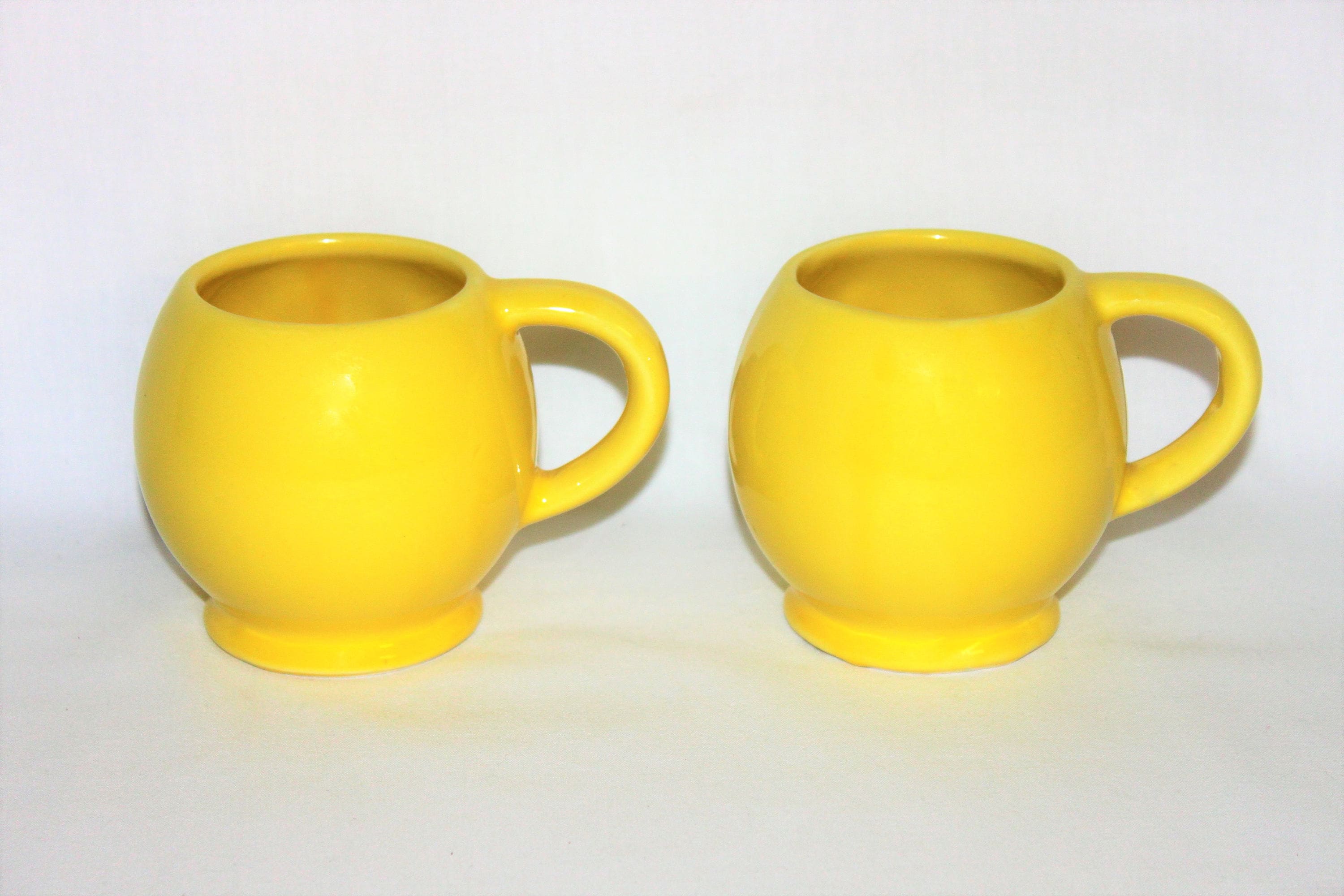 We have for sale a Vintage Pair of Sunshine Yellow McCoy Pottery Smiley Face Mugs