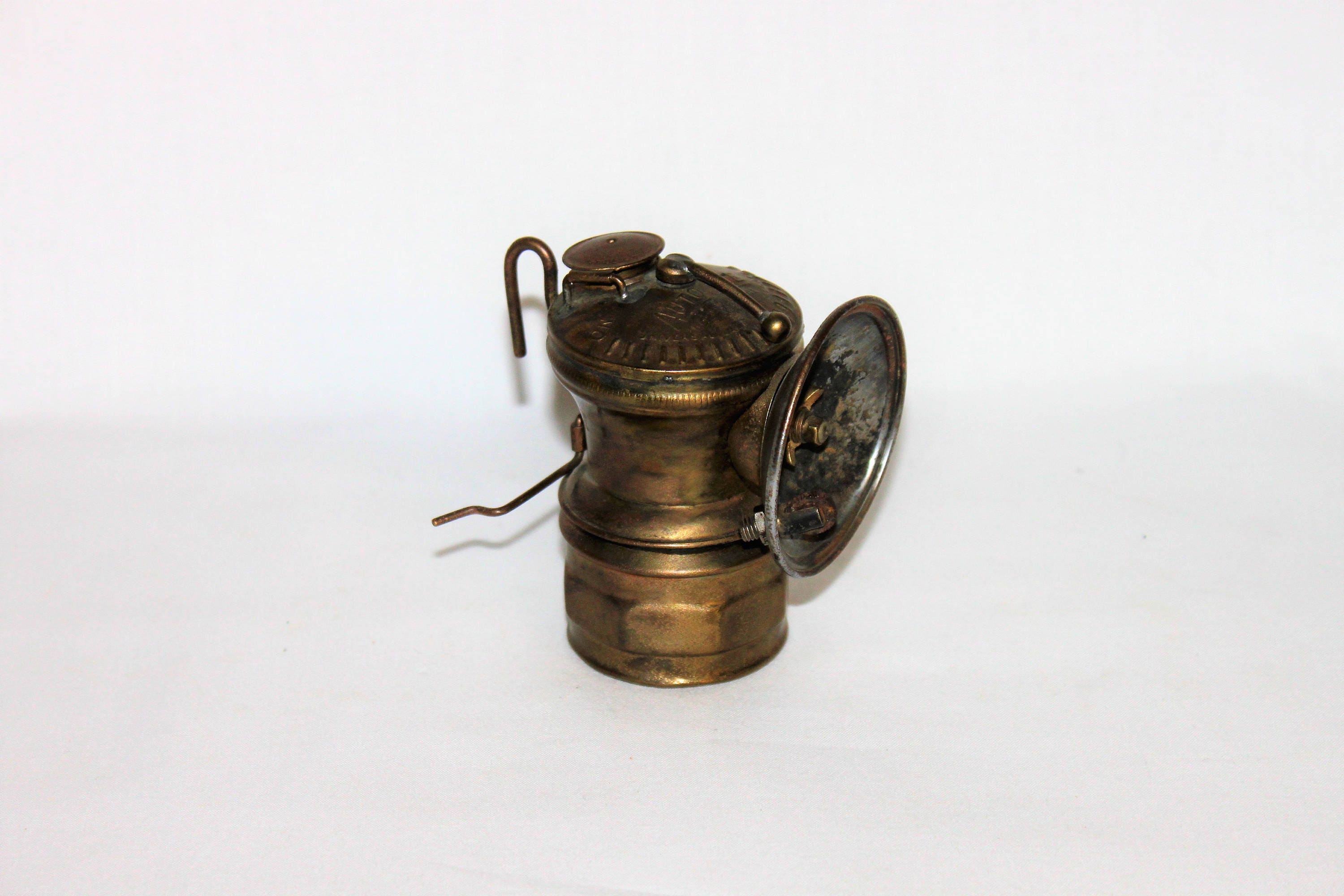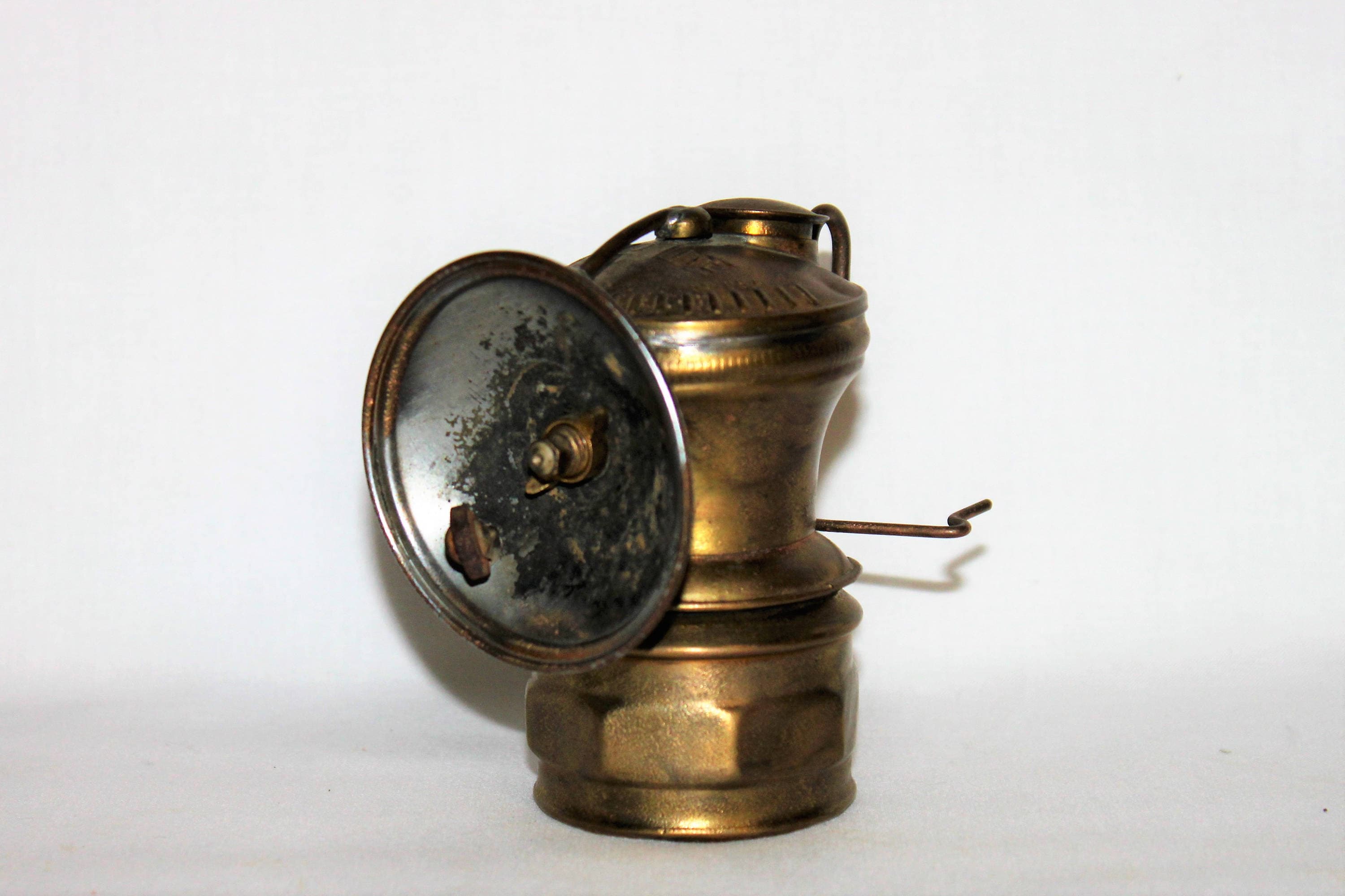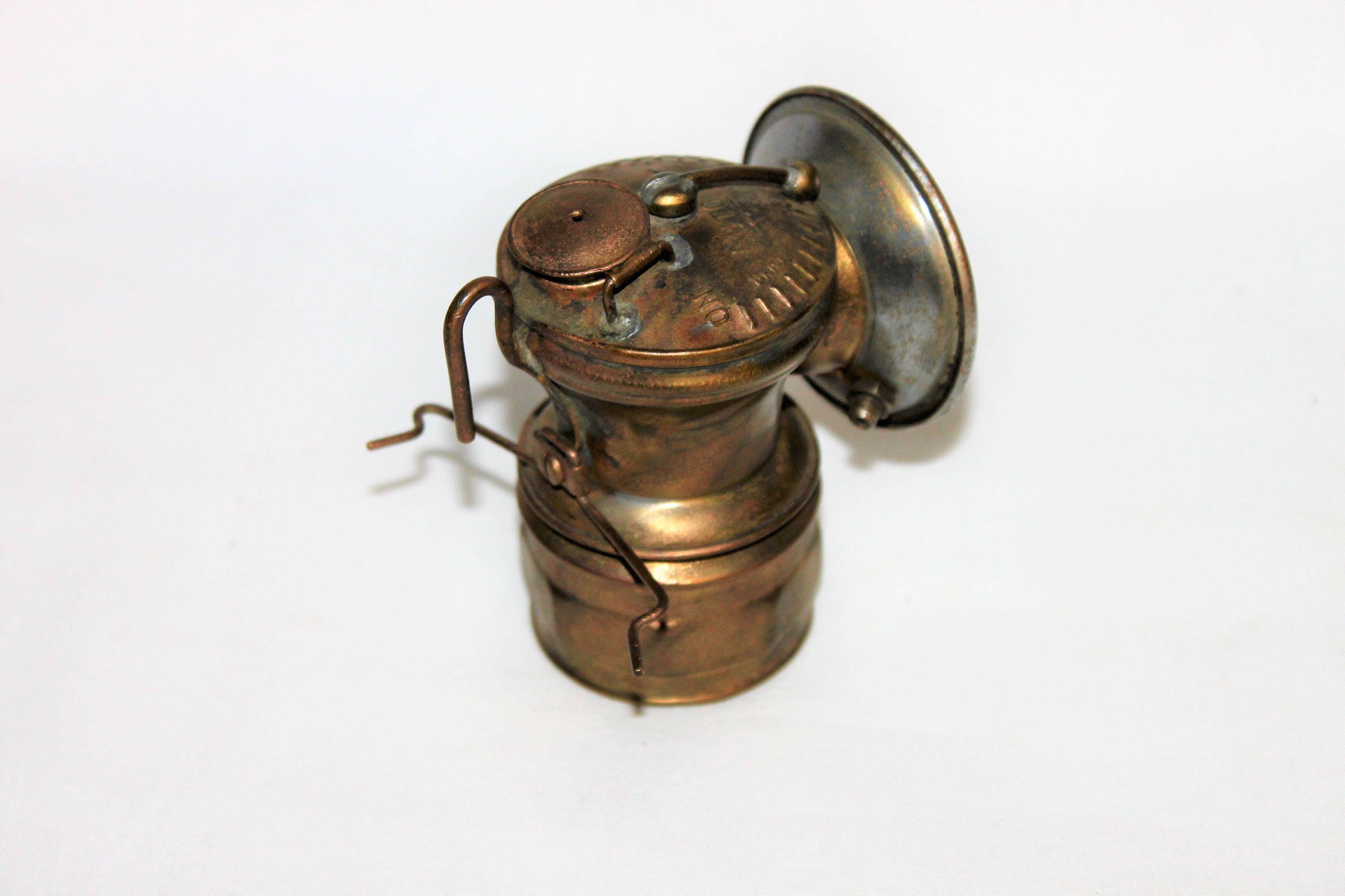 We have for sale an Antique 1920s Auto Lite Carbide Miner’s Brass Mining Artifact – Auto Lite Carbide Miner’s Headlamp Torch with Chrome Reflector