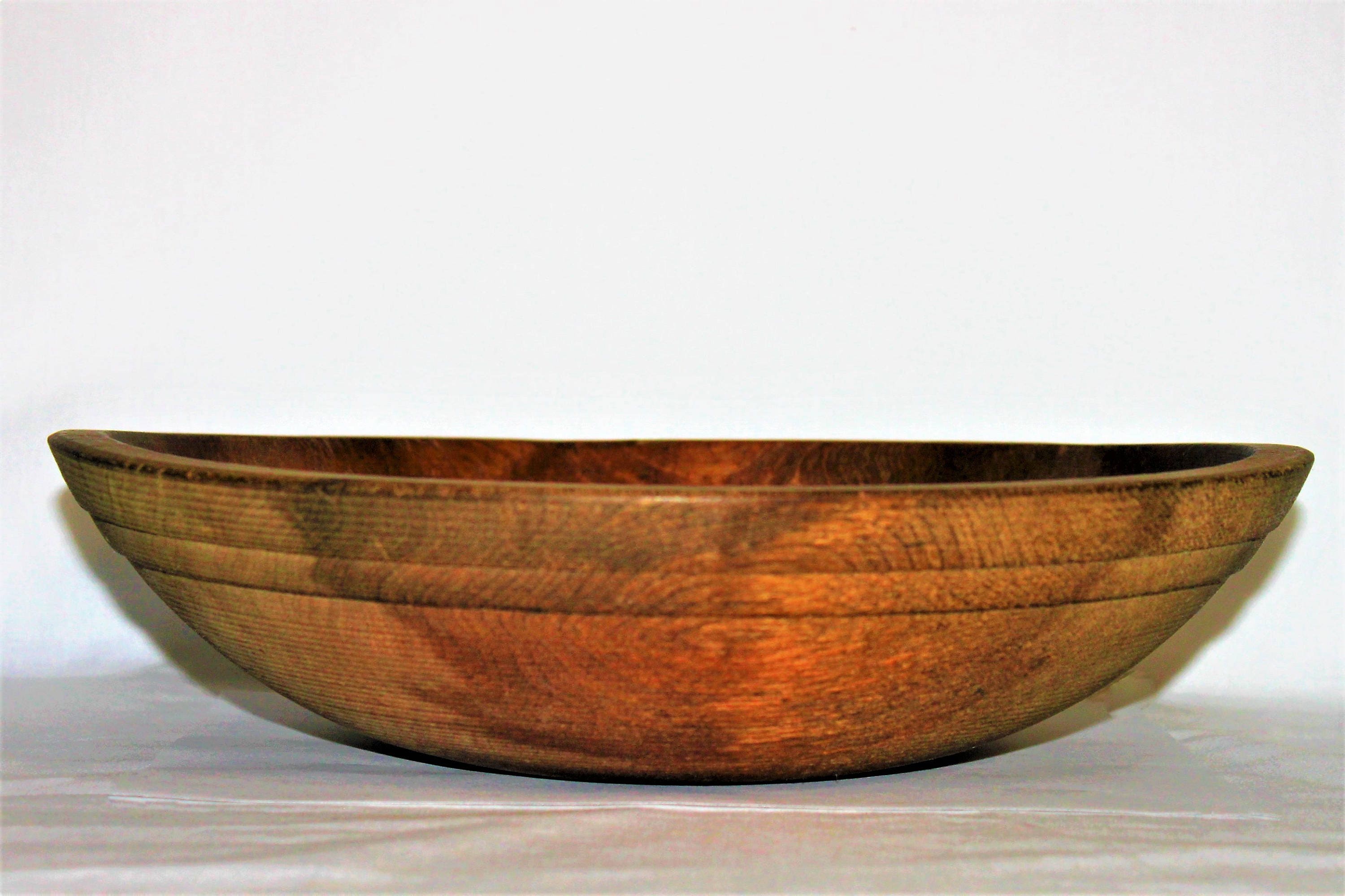 This is a beautiful wood dough bowl with wonderful patina and lots character made from solid hardwood maple it is the perfect size and will work wonderful in the kitchen or as a decorative center piece or for that next loaf of home made bread it is in wonderful vintage condition and ready to be used for years to come.