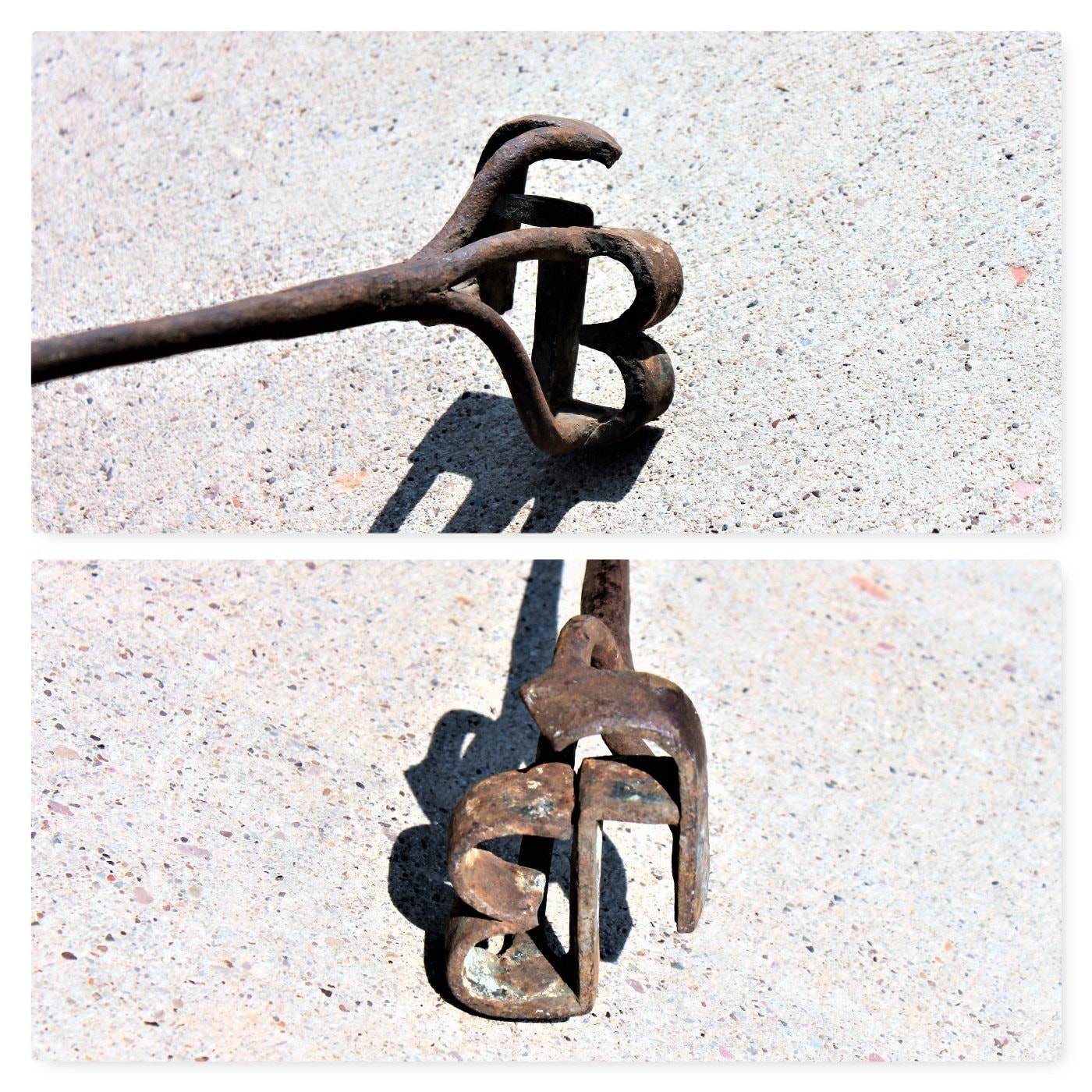This is an original antique branding iron used to brand horses and cattle in the western Dakotas it is hand forged iron with the large letters F B Brand.
