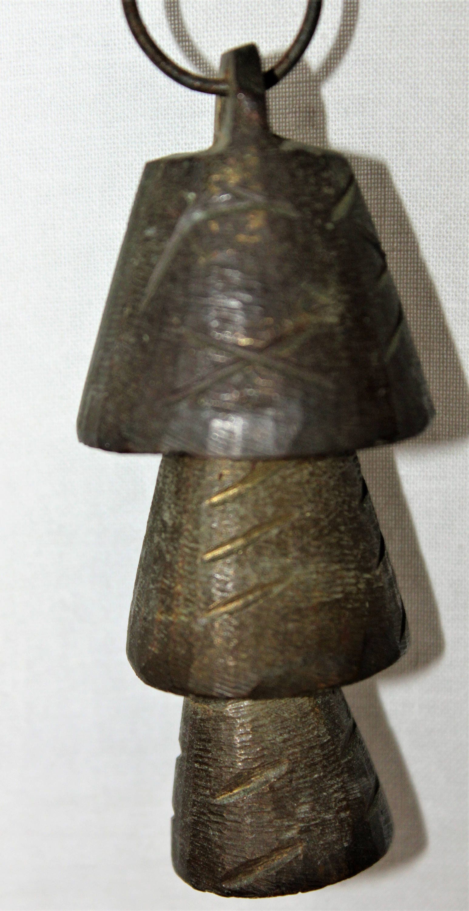 We have for sale a charming set of 3 bronze nested vintage Asian temple bells