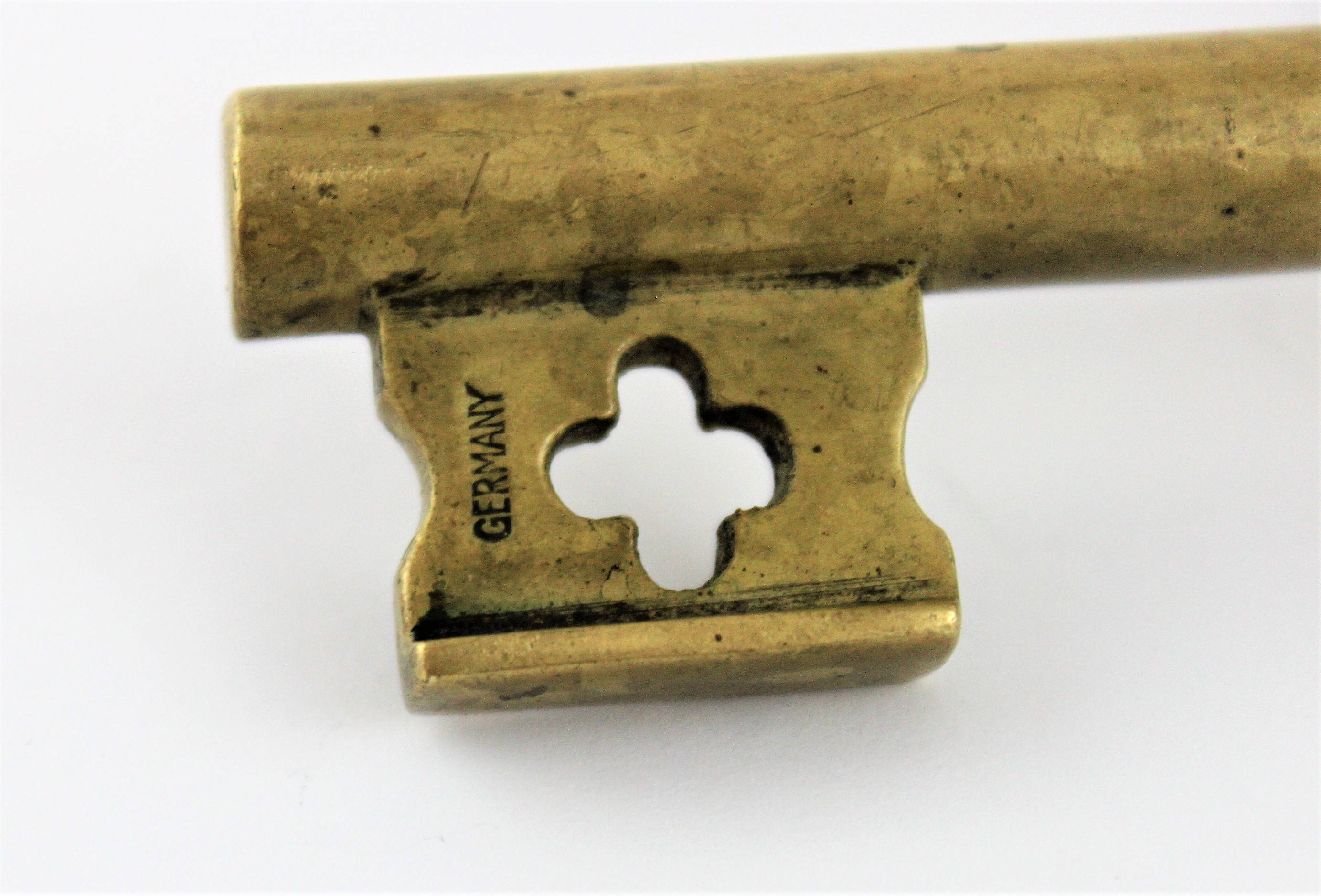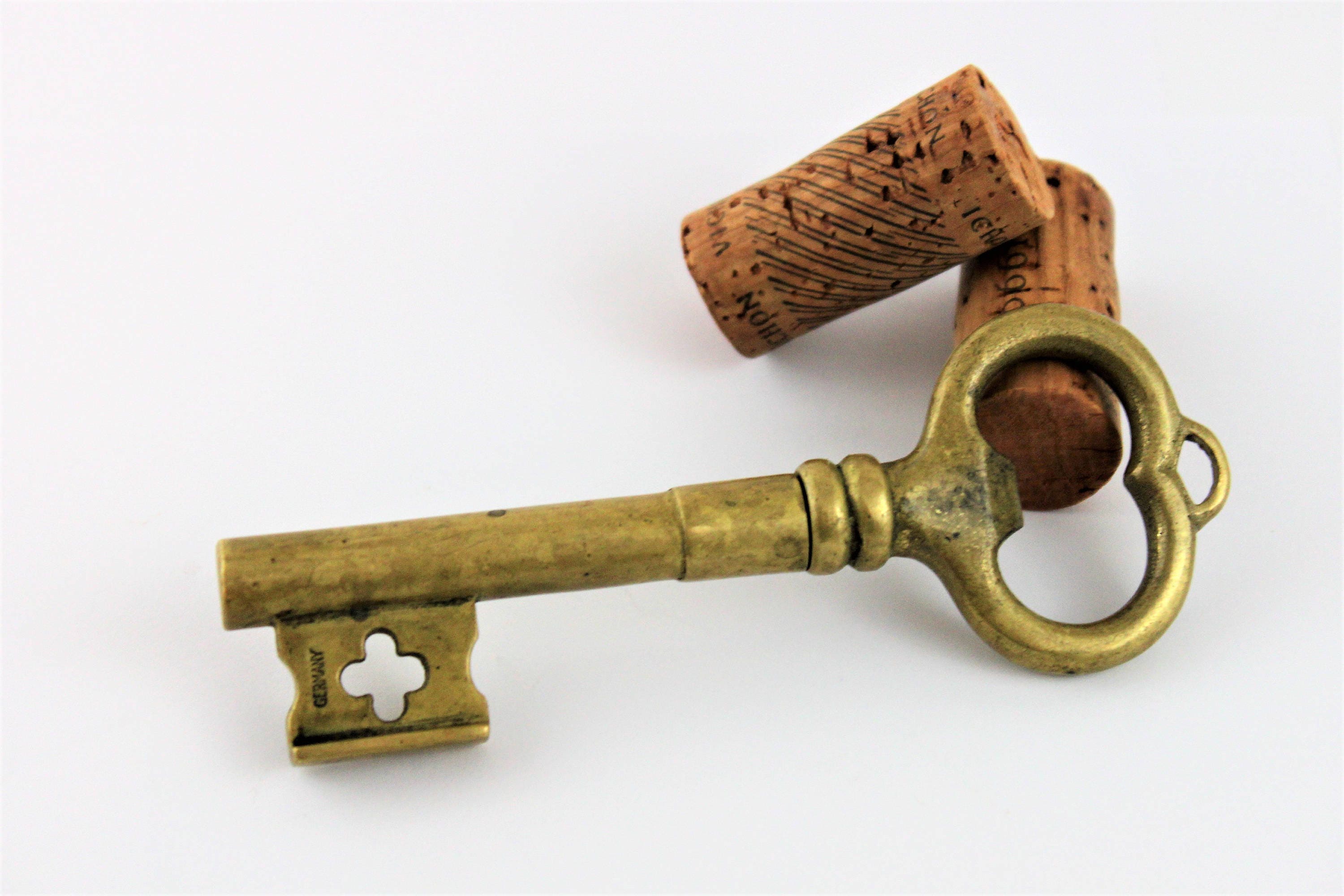 We have for sale a Vintage German Brass Skeleton Key Corkscrew