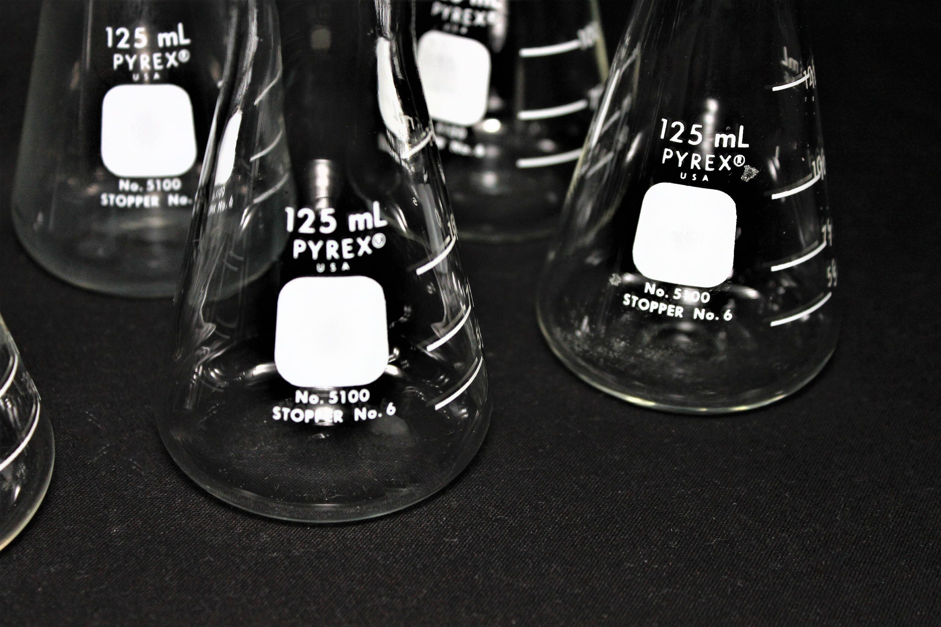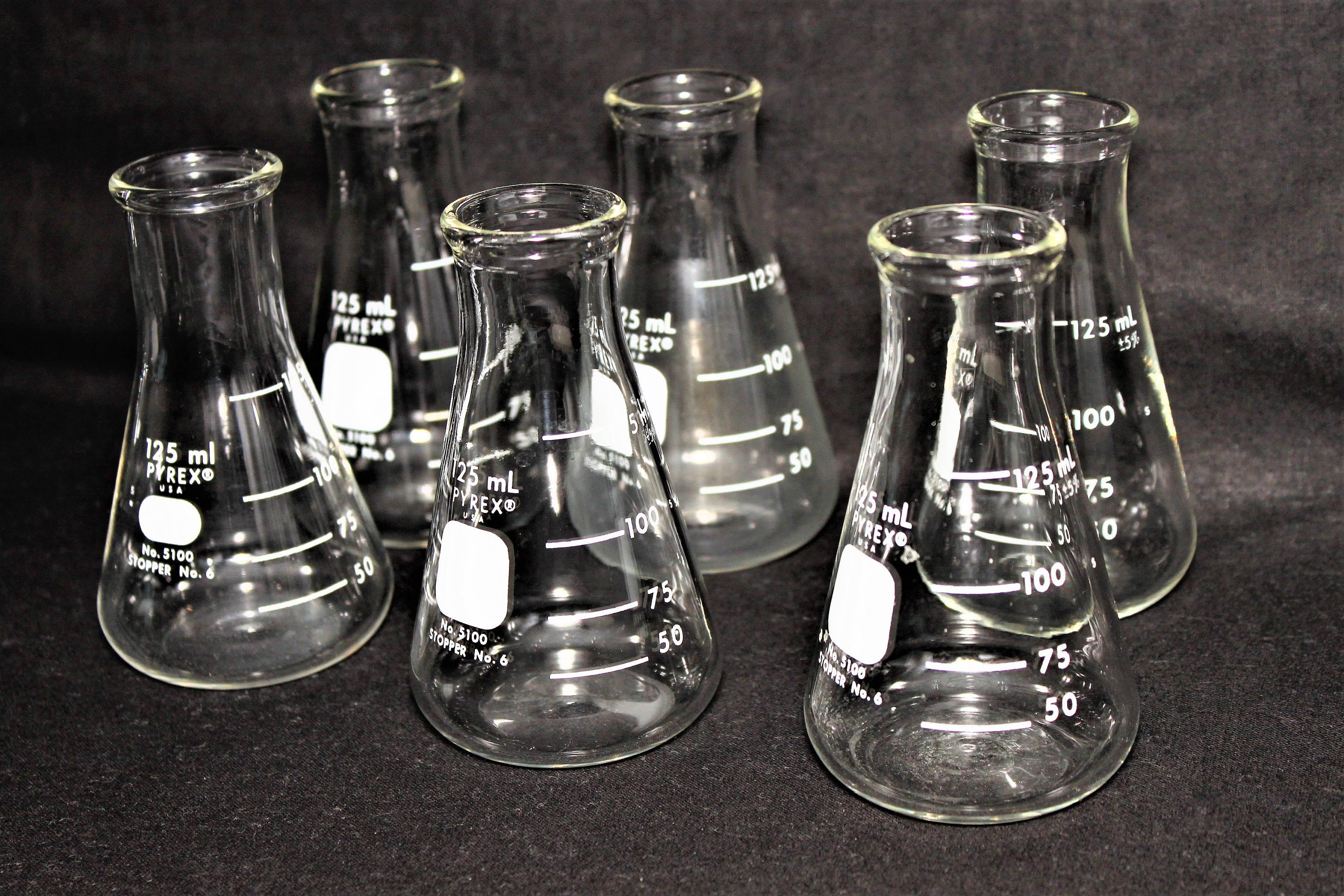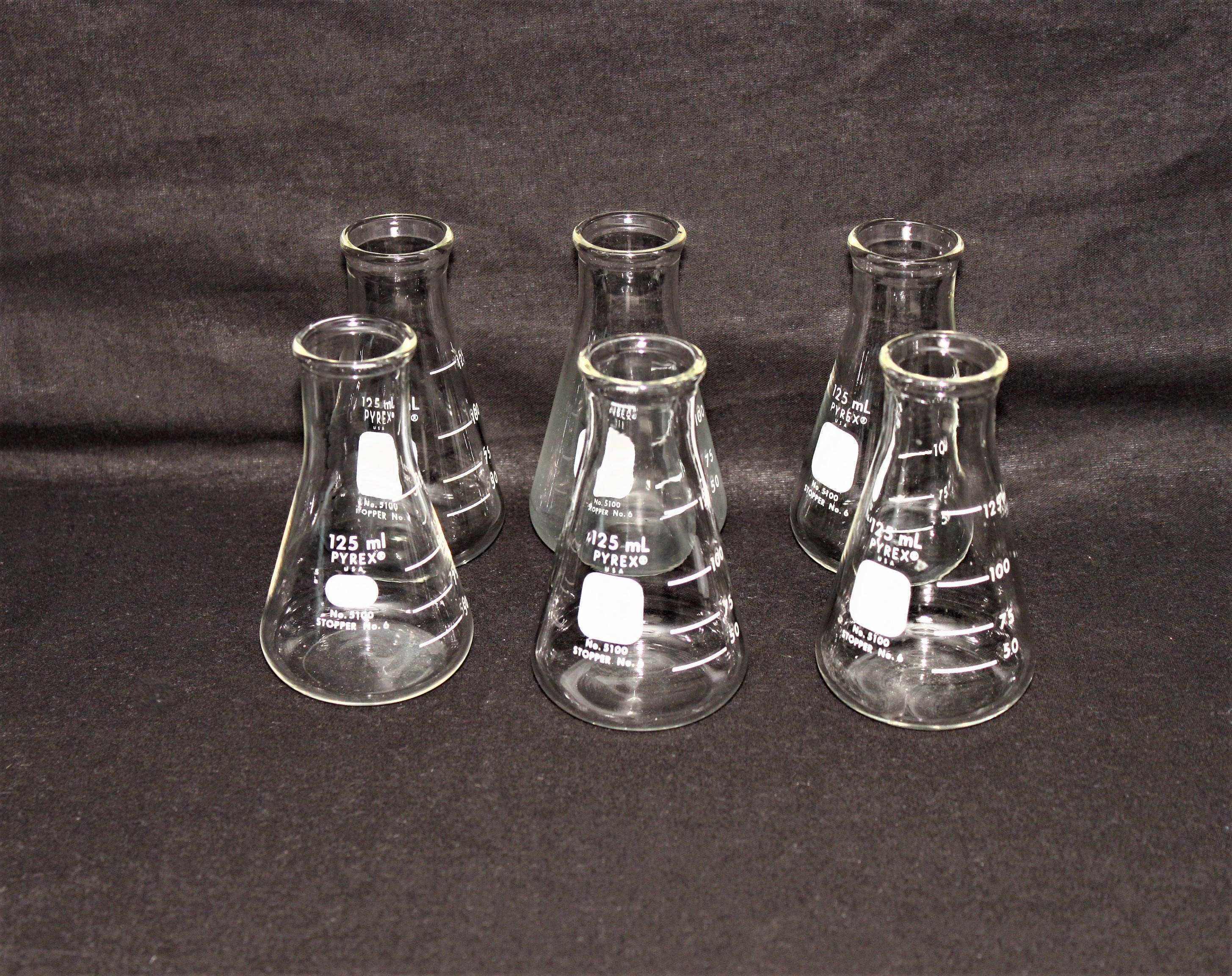 We have for sale a lot of six #5100 125ml Pyrex Erlenmeyer flasks