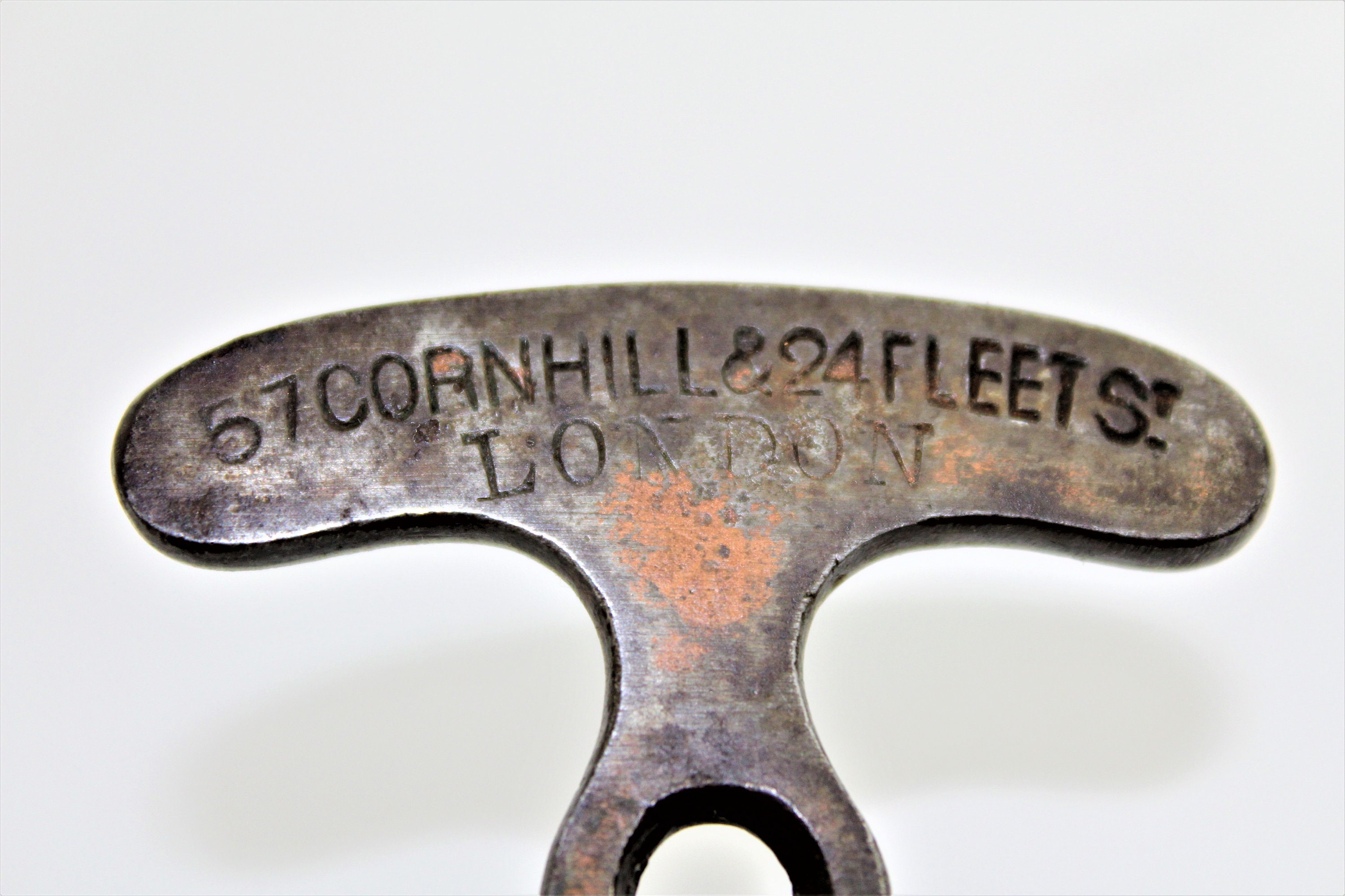 We have for sale an Antique 1855 LONDON LEVER Corkscrew, LUND Single Lever Corkscrew