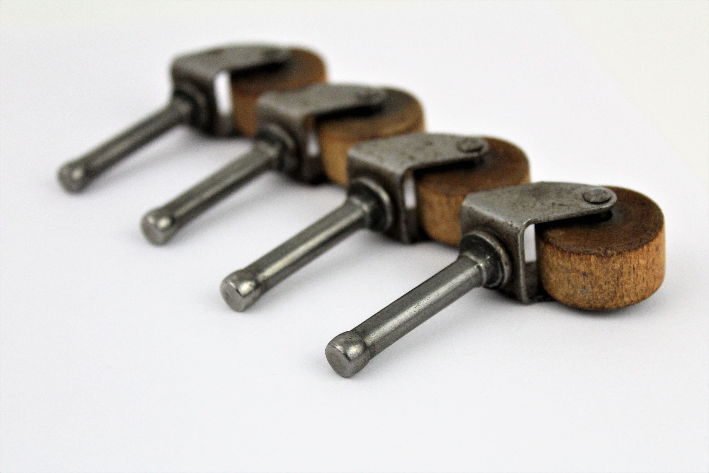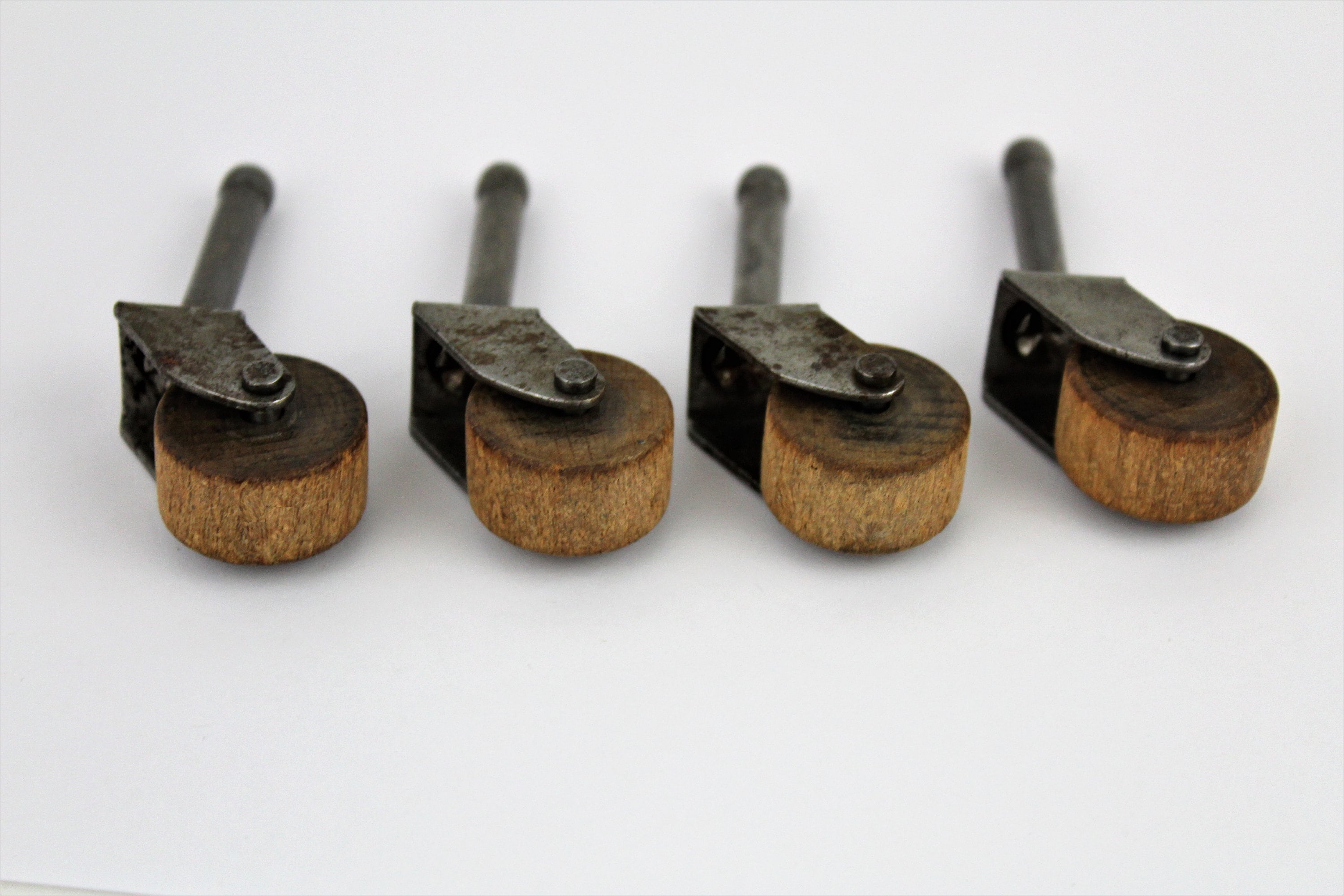 We have for sale an Set of Four Antique Wood Swivel Castor / Caster Wheels, Furniture Hardware