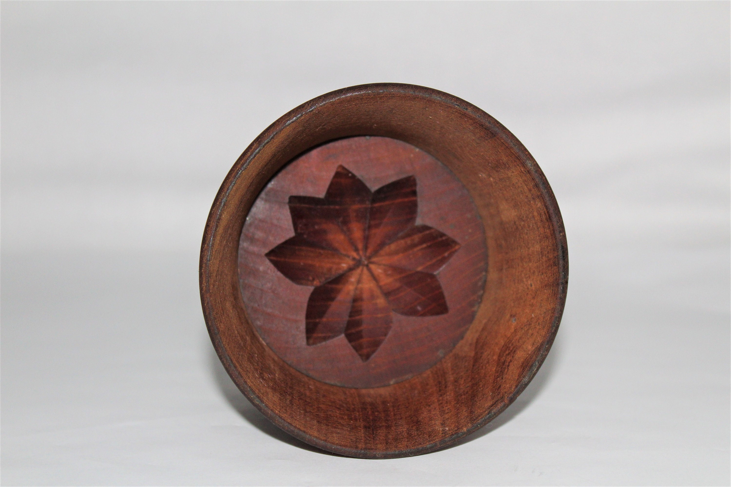 We have for sale Primitive Wooden Butter Press Mold with Flower Petal Pattern Design.