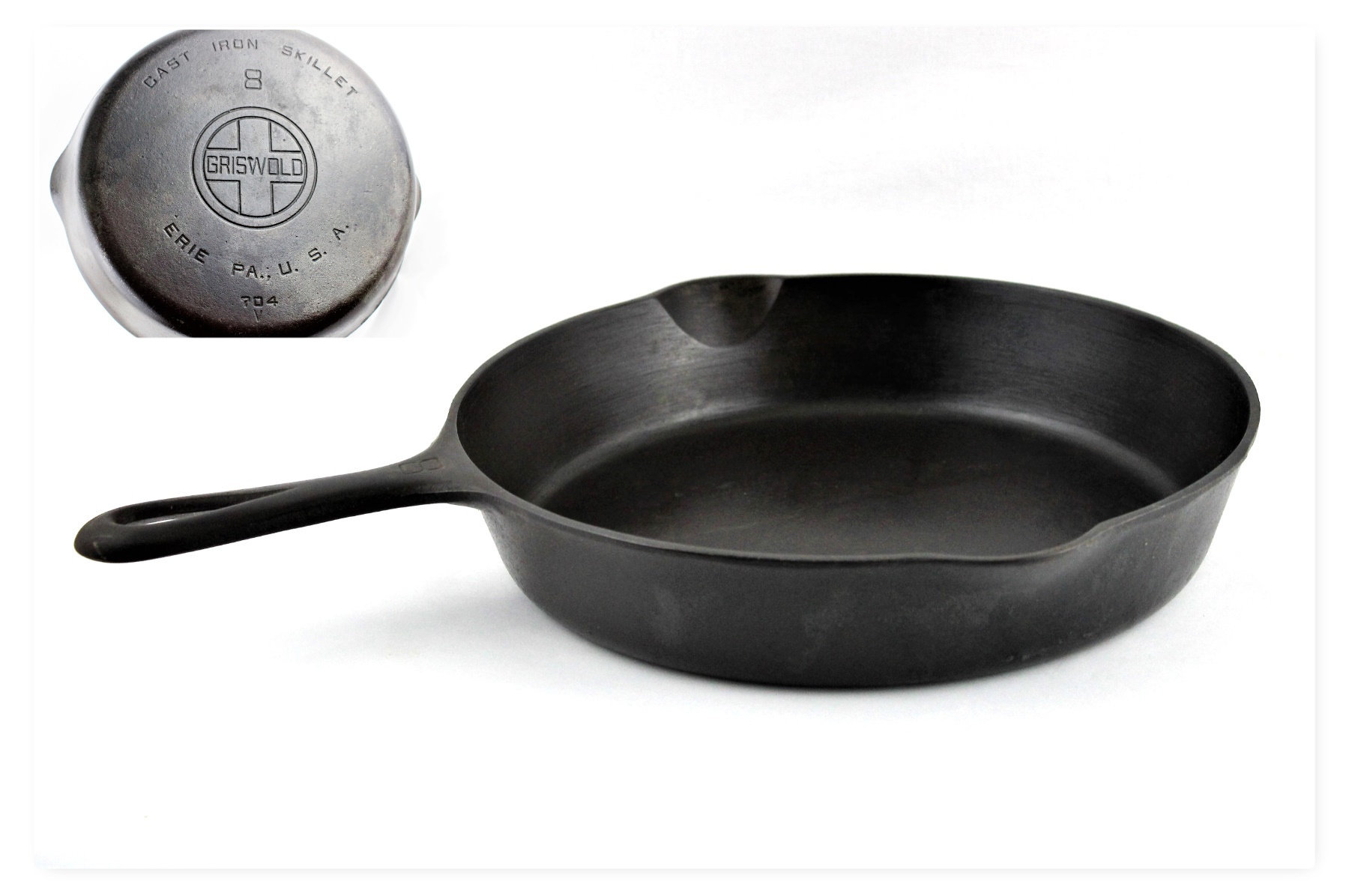 Marked; Cast Iron skillet, 8 GRISWOLD, ERIE PA. USA 704 V