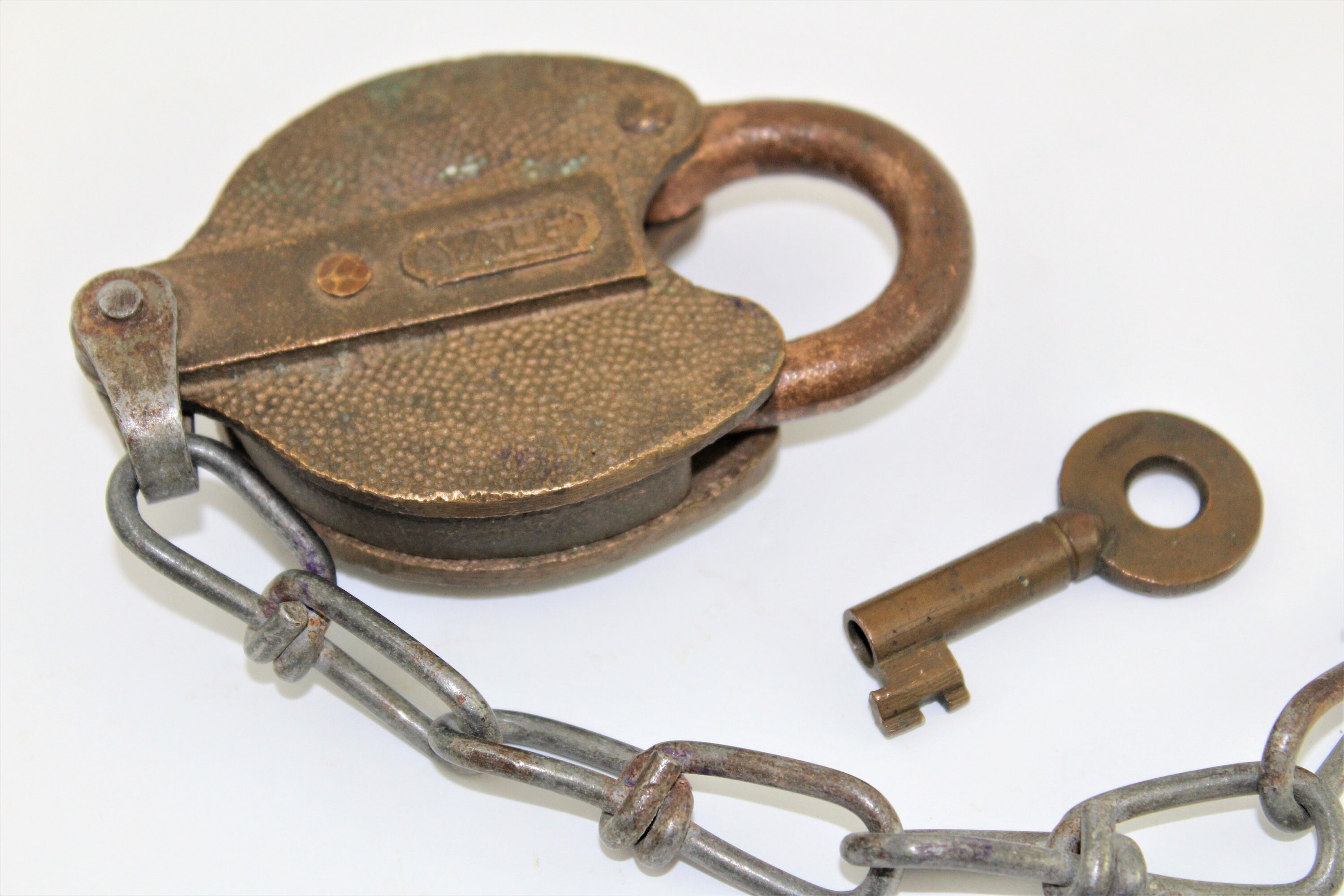 We have for sale a Vintage Yale Brass Padlock with Key, Switch Lock