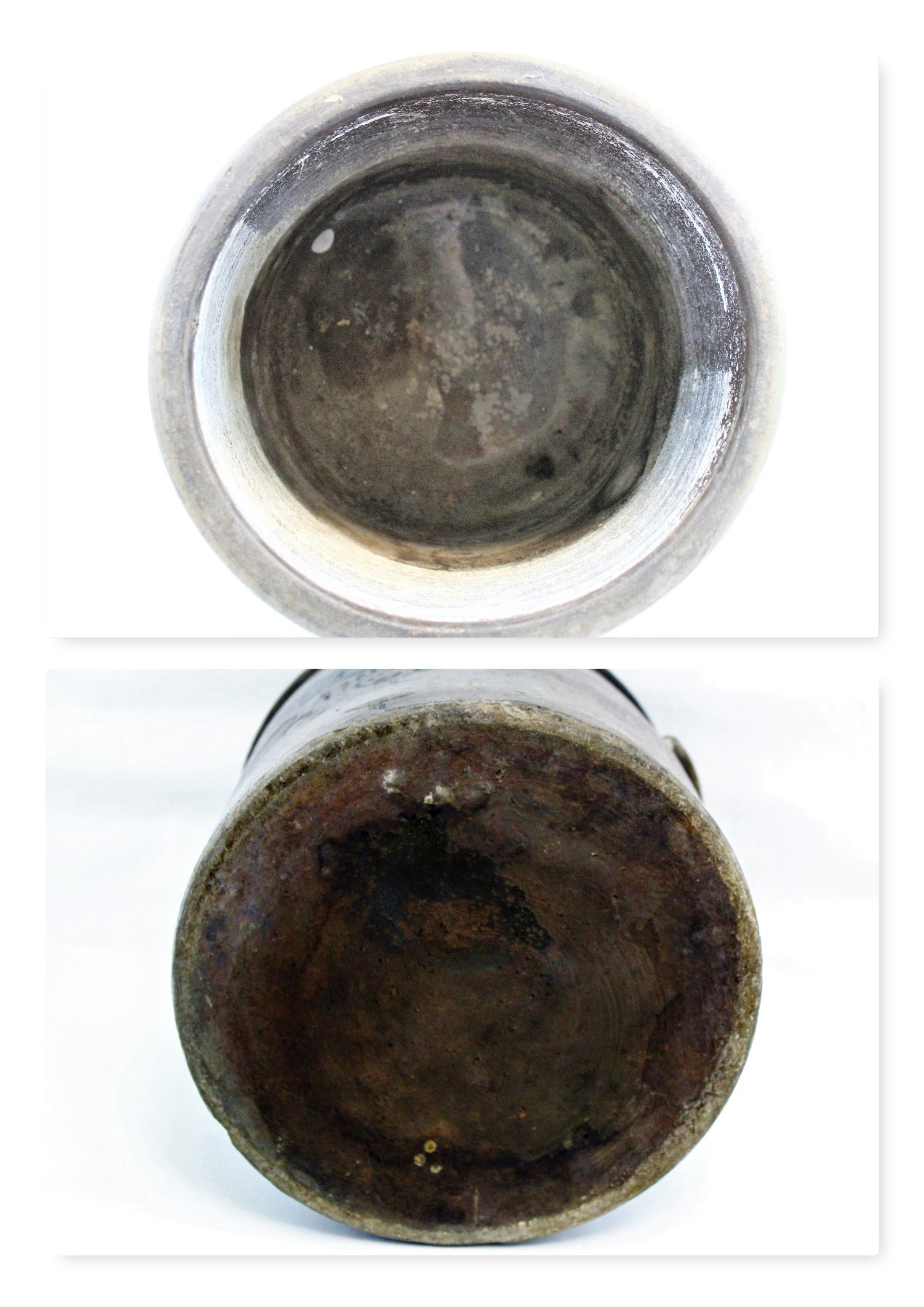 Condition: Untouched, as found. No cracks or major damage, couple minor chips around the bottom edge. Needs a good cleaning or save the 160-year-old natural patina.