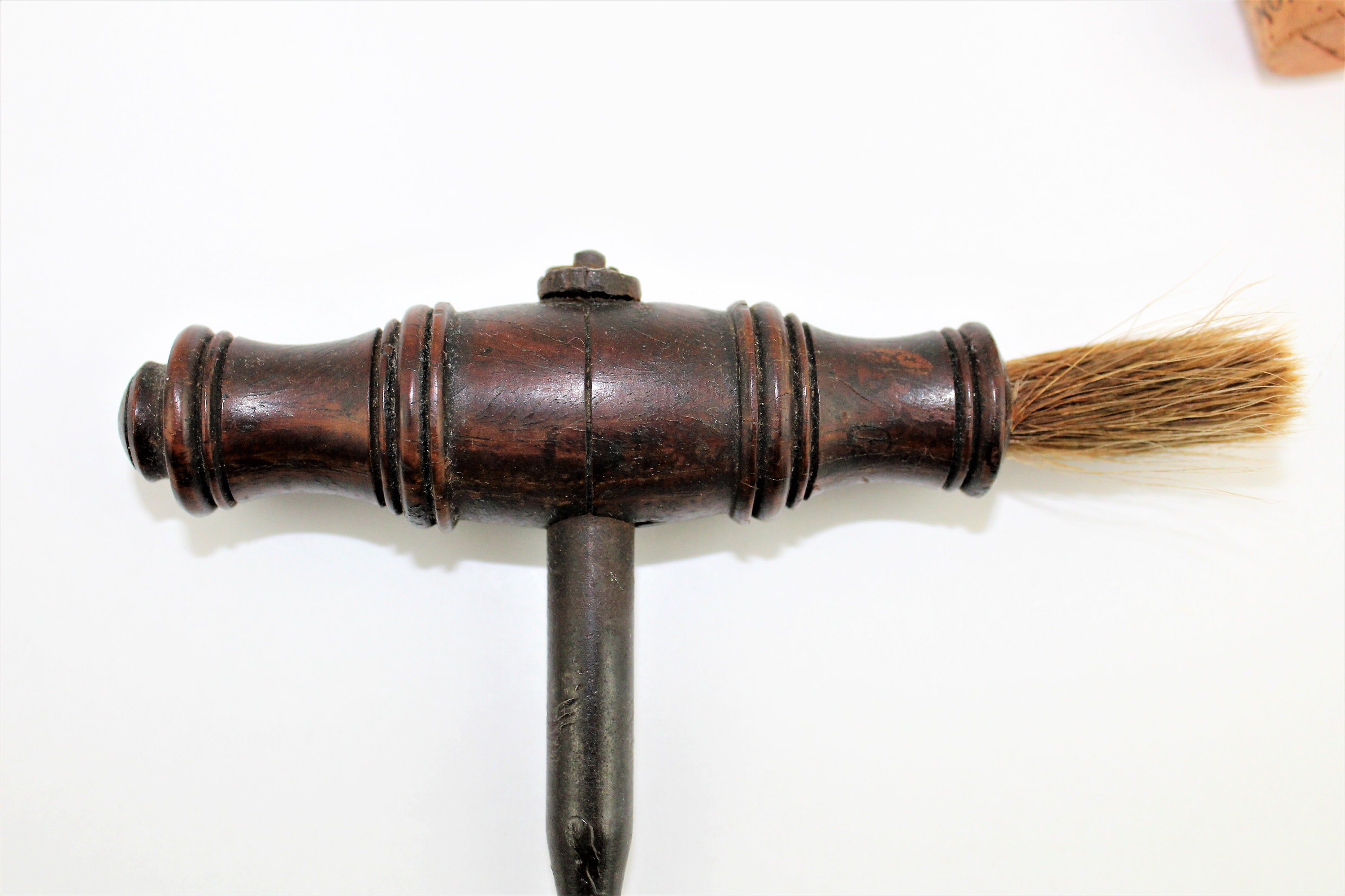 Wonderful antique English corkscrew with beautiful turned rosewood handle and horse hair dusting brush. Wonderful display for your wine room.