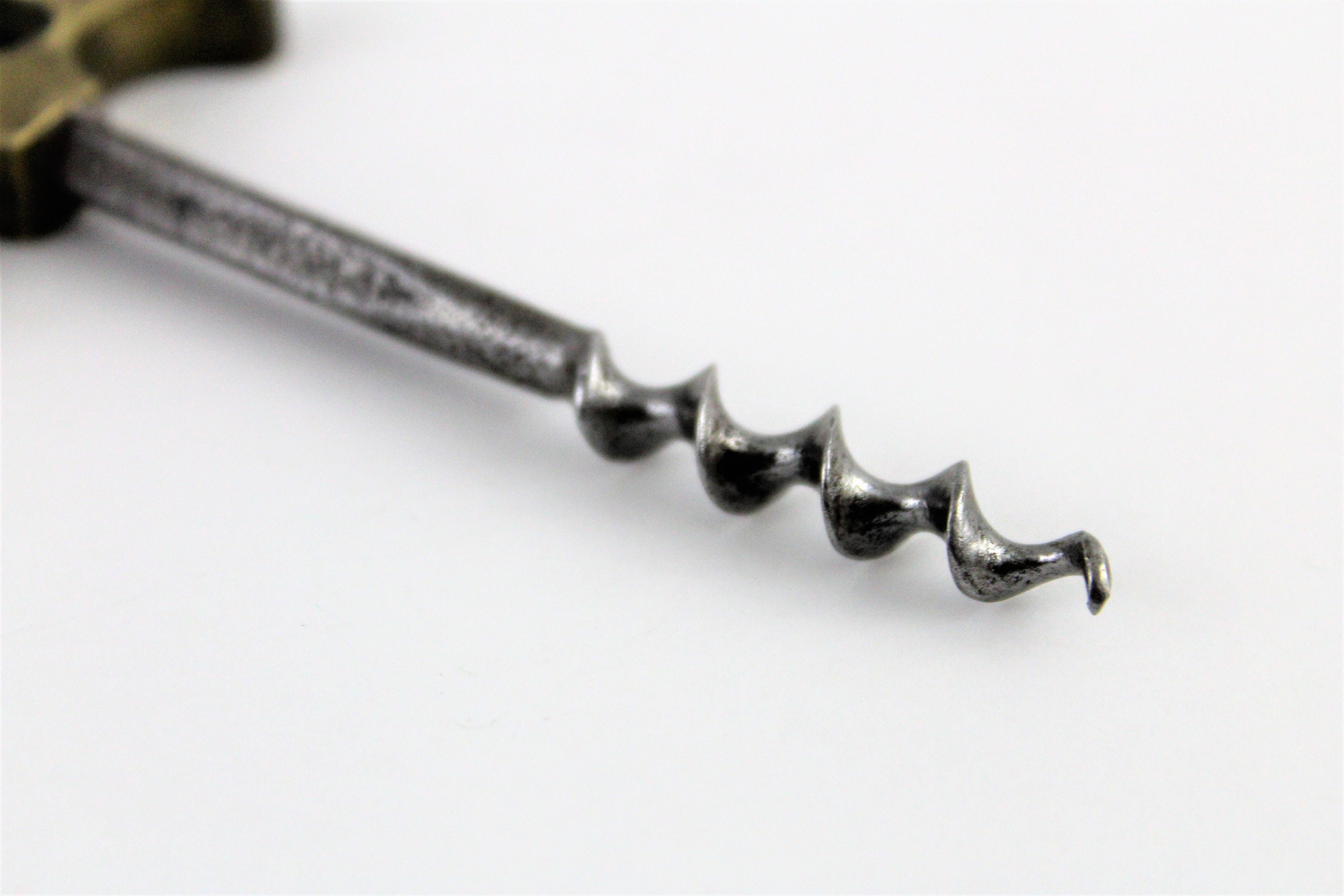 Lovely French late 1800s Corkscrew. This is known as a Mid-Sized corkscrew due to the size. Mid-Size corkscrews measure 3” to 4.5” in length and 2”-3” in width at the handle, usually made for smaller bottles like medicines. These were more common in France in the 1800s.