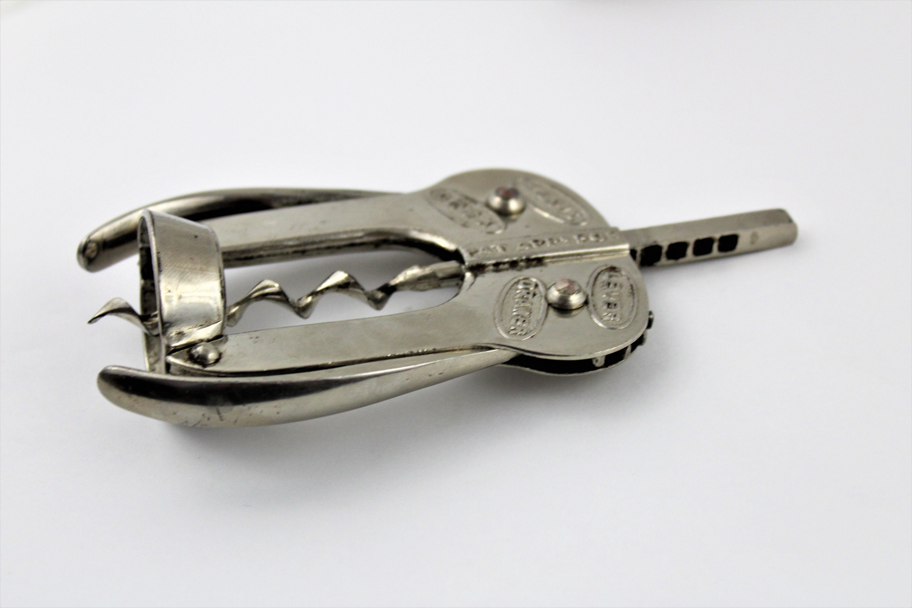 This is a highly collectible corkscrew from the early 1900s it is marked Magic Lever Cork Drawer made in England it is also marked PAT. APPL. FOR meaning the inventor applied for a patent. The Patented was never granted for this design so getting an accurate date for this corkscrew is difficult.