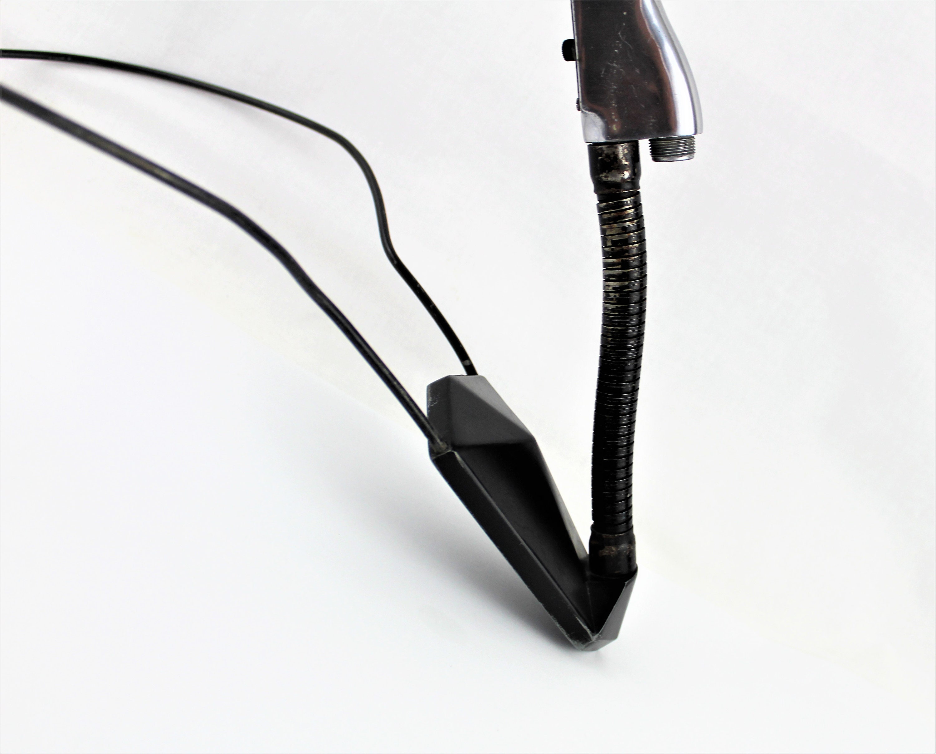 This is an old hands-free microphone holder that you hang around your neck with an Electro Voice Cardax Model 950 Microphone. The microphone is attached to a flexible arm which allows you to adjust the distance.