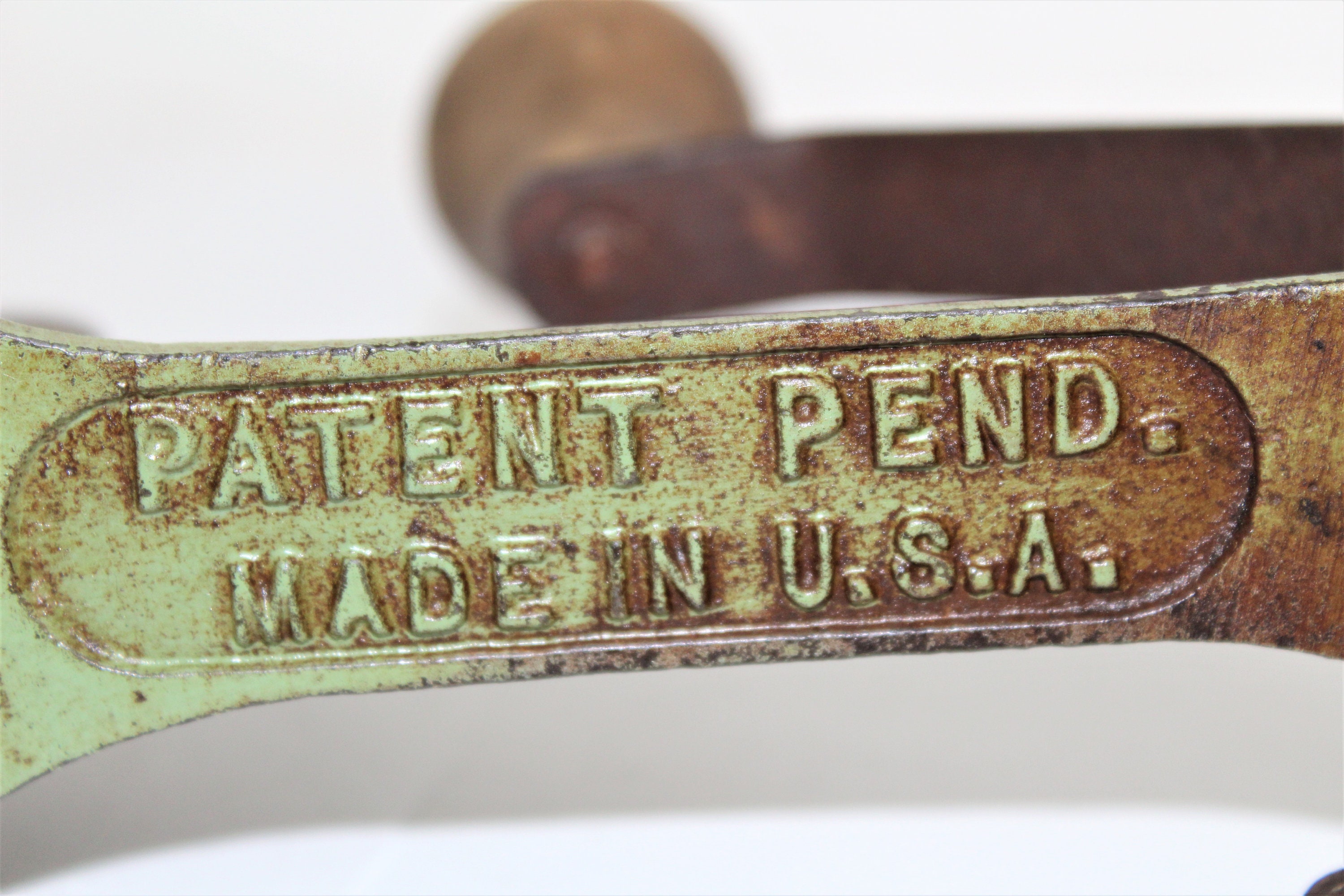 Wonderful and unique small kitchen appliance from the early 1900s. Made by Turner & Seymour of Torrington, Conn. This is a Blue Streak Pea Pod Sheller. It clamps down to you table or countertops edge as you crank the handle clockwise you place a pea pod in the spout end the sheller grabs the pod pulling it through the sheller as it releases the peas from the pod. Made of cast iron with wooden handle. Appears in full working condition.