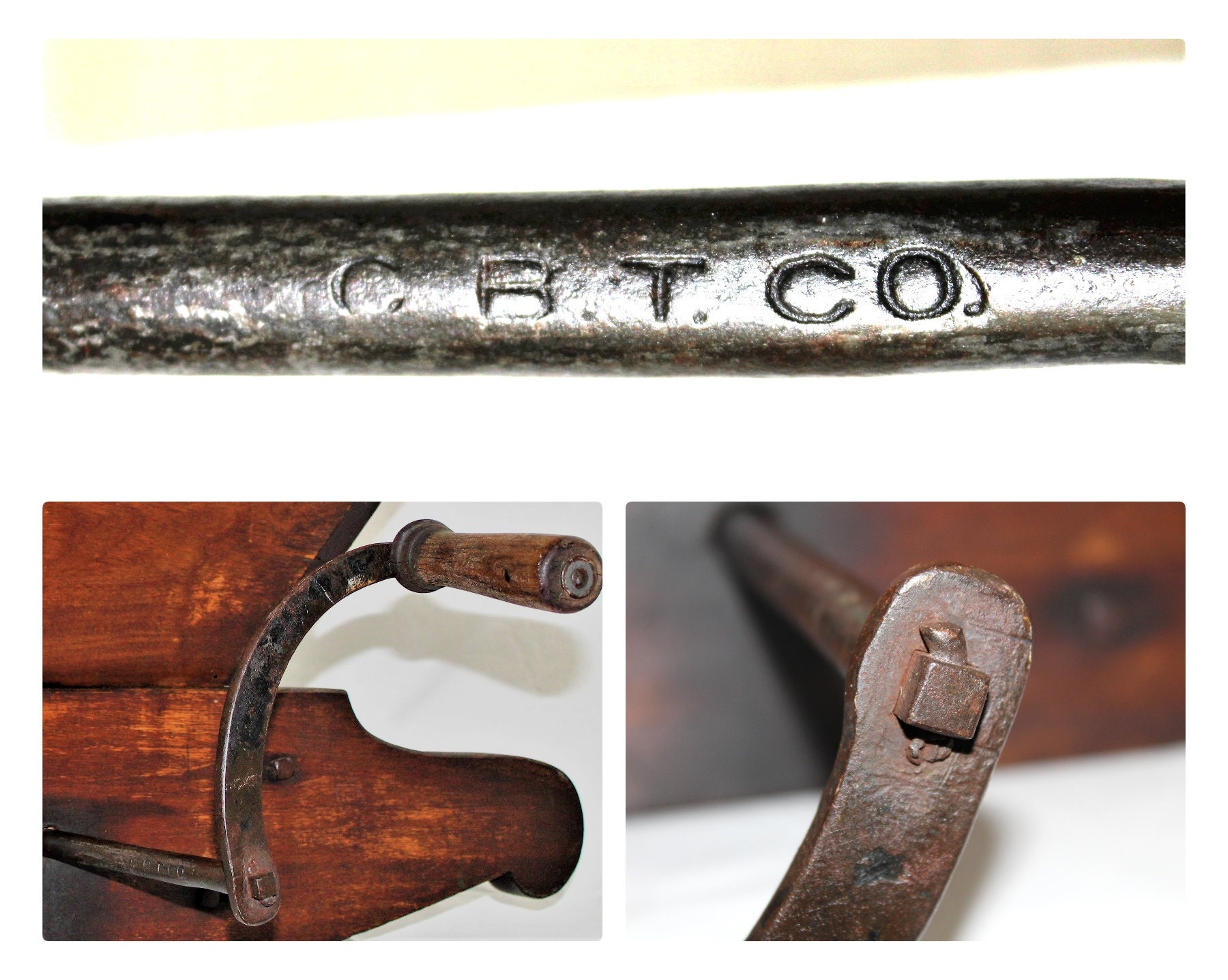 Wonderful antique fruit grinder made by C.B.T. Co. This would have been placed atop a wooden barrel to catch the fresh ground fruit, like apples and grapes.